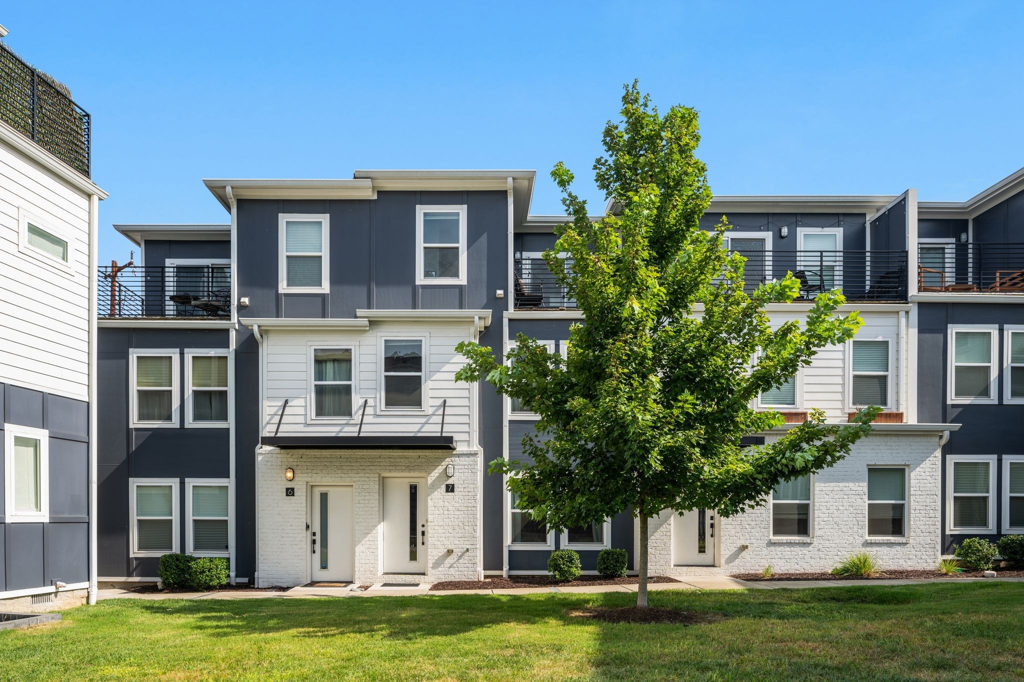 This three-level townhome in a gated community features modern design and open-concept living. The main floor has a contemporary kitchen flowing into the living area, the second floor contains the primary bedroom with oversized walk-in shower and plenty of natural light, and the top level offers a private balcony. With two bedrooms, it suits families, couples, or investors. Located 10 minutes from downtown with East Nashville's vibrant dining and cafes just a short walk away!