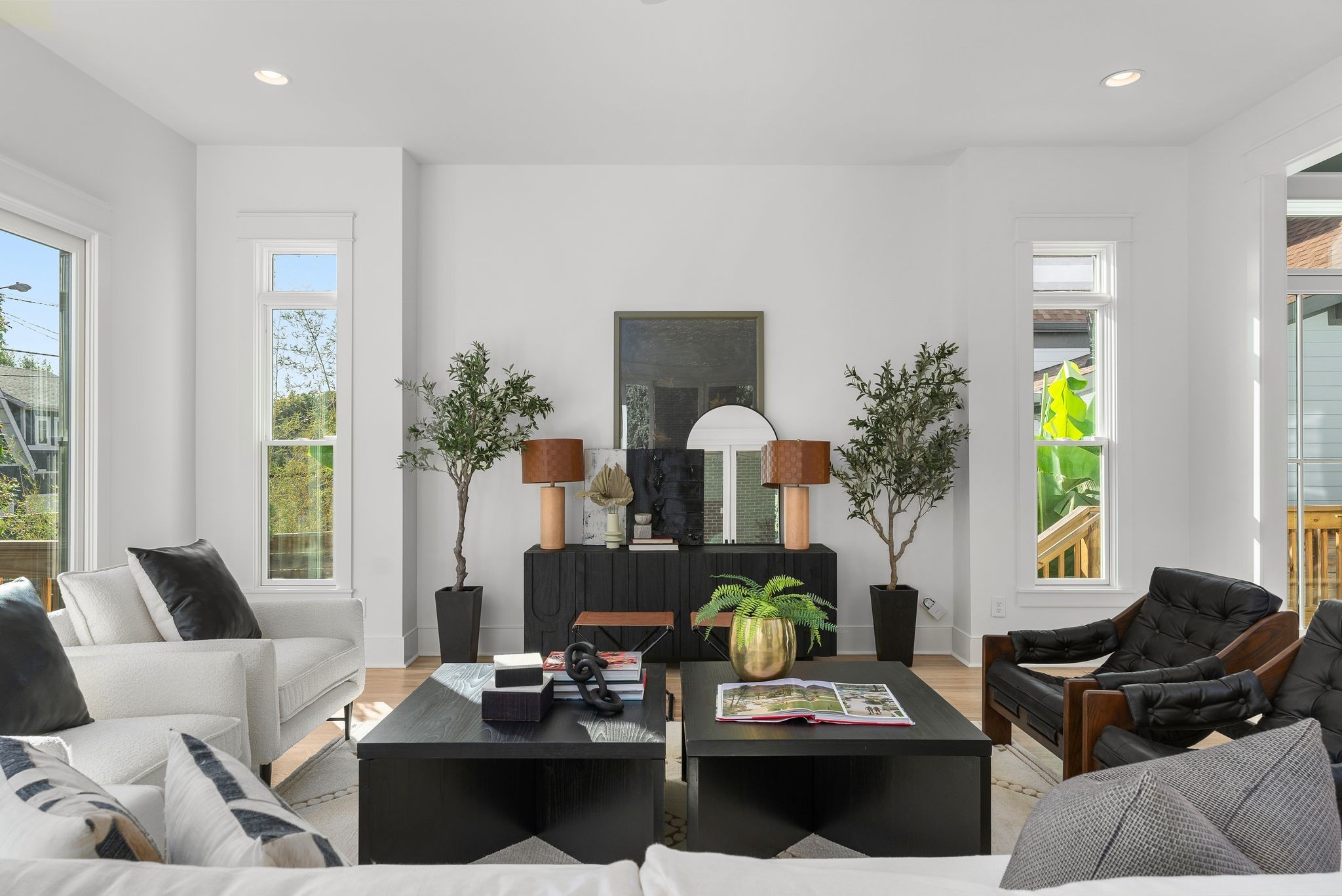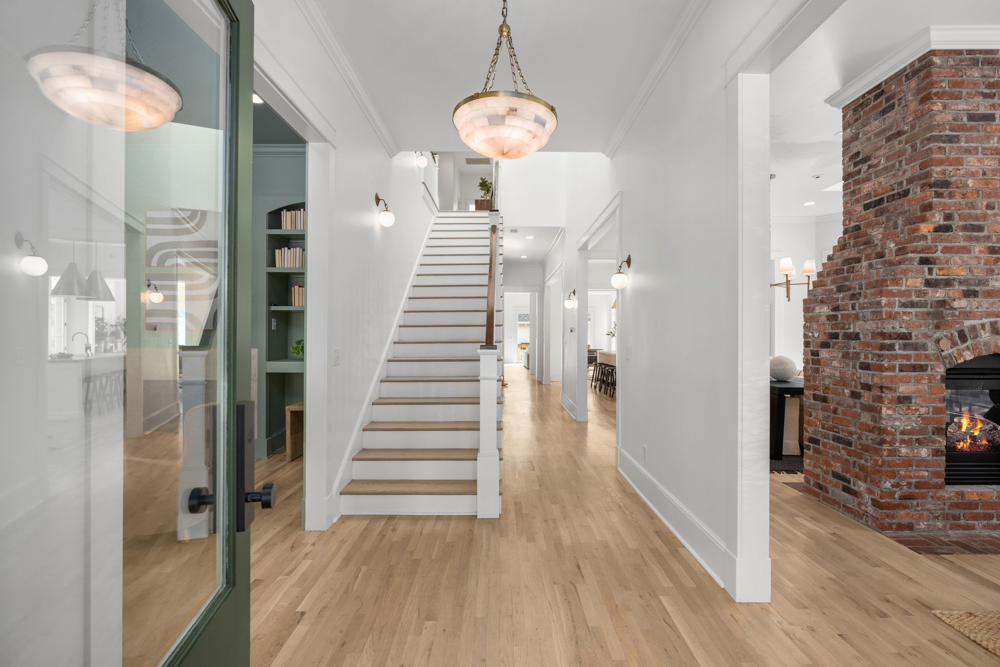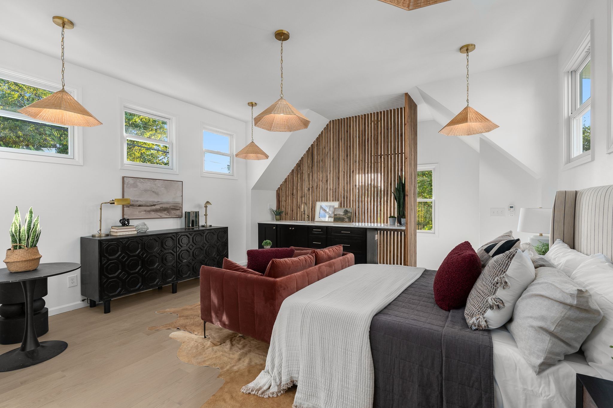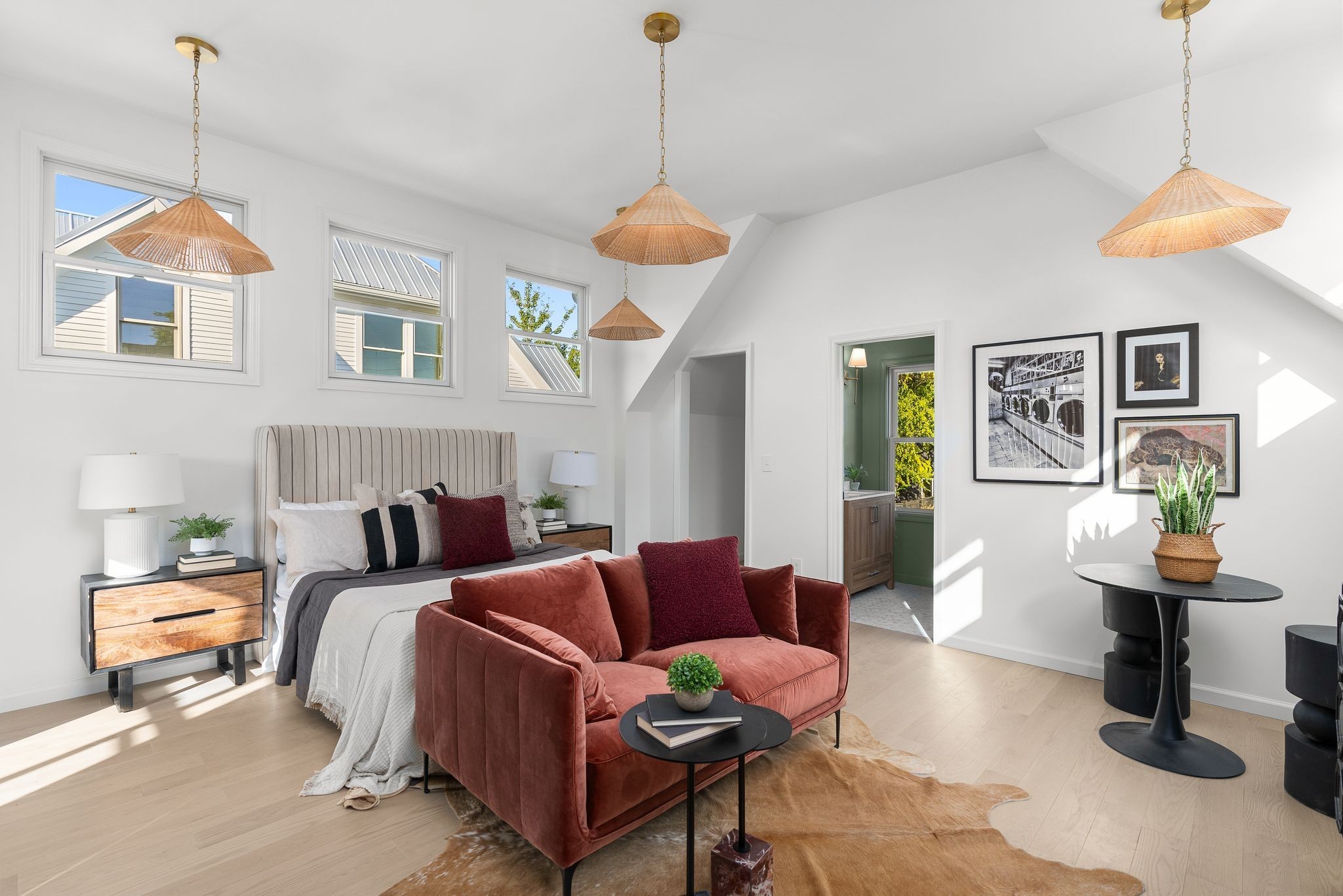 Welcome to your storybook retreat tucked into the heart of 12 South. Perched on a quiet corner lot with a spacious yard and a new DADU, every inch of this property showcases thoughtful design and craftsmanship. The main home features a new living room addition, a fully renovated kitchen with designer appliances, and a covered back porch with a gas fireplace - ideal for entertaining year round. Inside, designer lighting, antique doors, and hardwood floors blend effortlessly to create warmth and sophistication throughout.