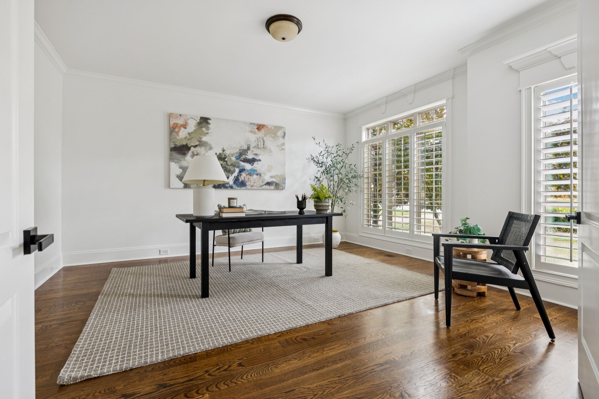 Upstairs, a versatile flex space with wet bar provides the perfect setting for movie nights, game days, or casual entertaining, complemented by private guest suites and a dedicated home office.