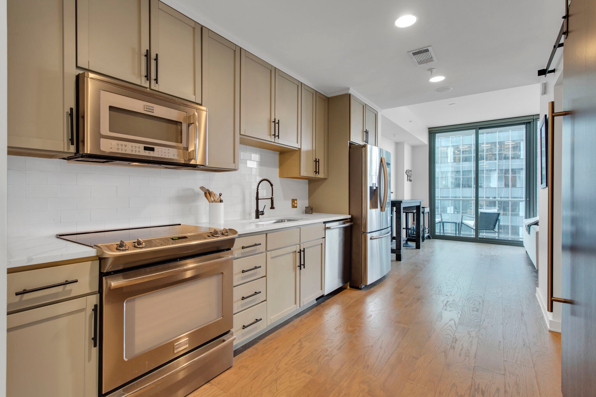Welcome to TwelveTwelve, Nashville's luxury high-rise residence in the heart of the Gulch. This beautiful unit features updated hardwood flooring, sleek quartz countertops, updated hardware, smart appliances + more! Enjoy amazing views of downtown Nashville from the private balcony and bask in the convenience of living with a 24/7 concierge service, resort-style salt water pool, fitness center, and two separate owner's lounges. This unit comes with one assigned parking spot and TWO storage units. Experience a completely turn-key lifestyle is this gorgeous building conveniently located next to many restaurants, bars, coffees shops, + more!