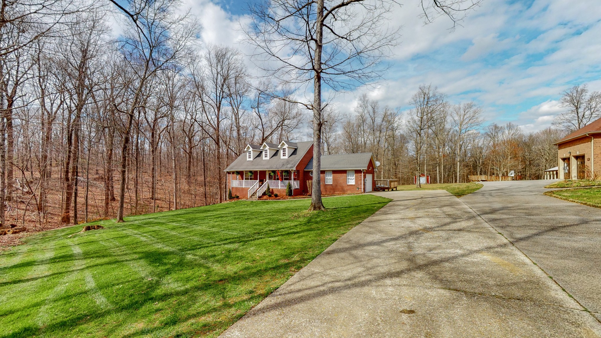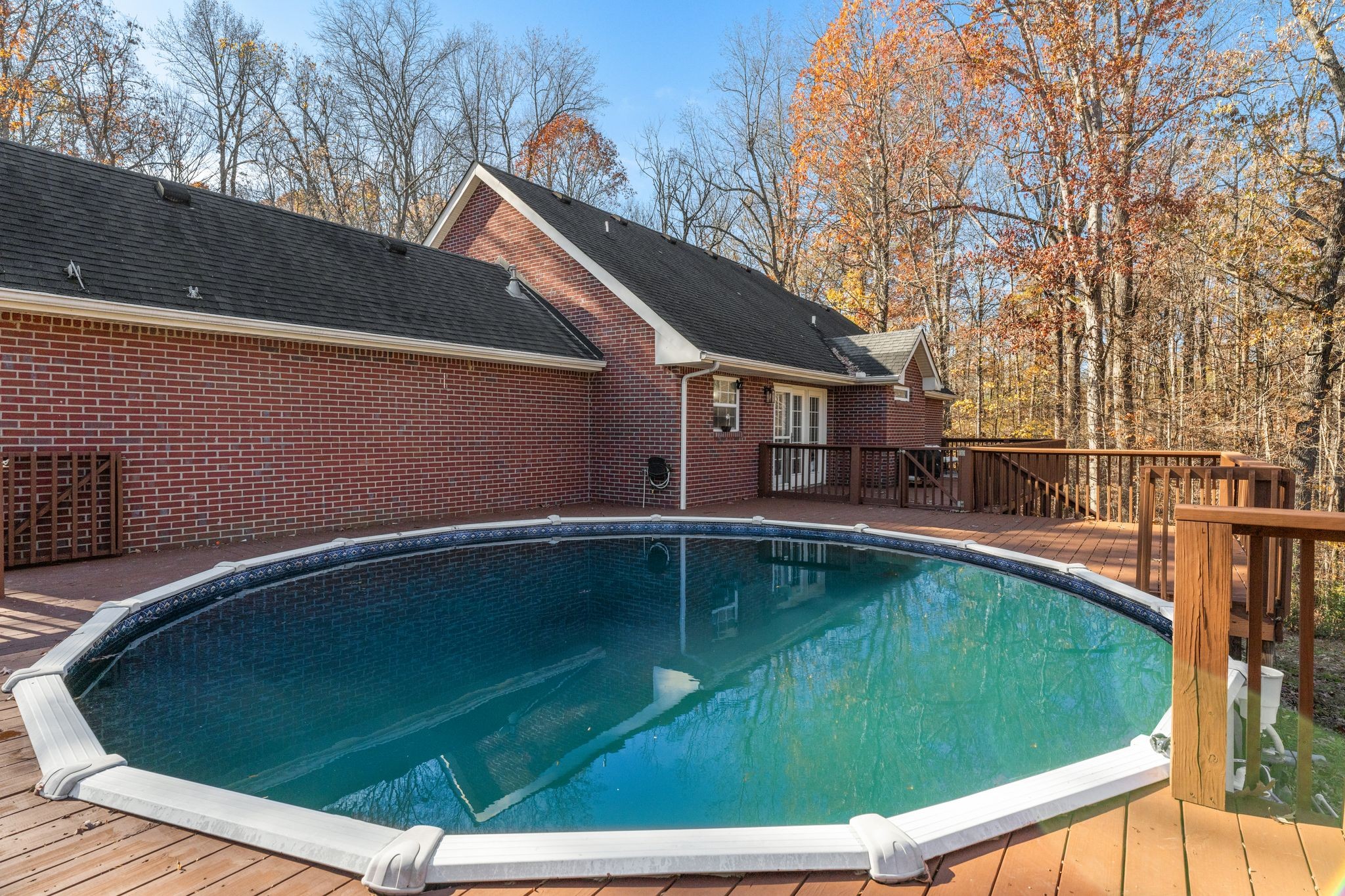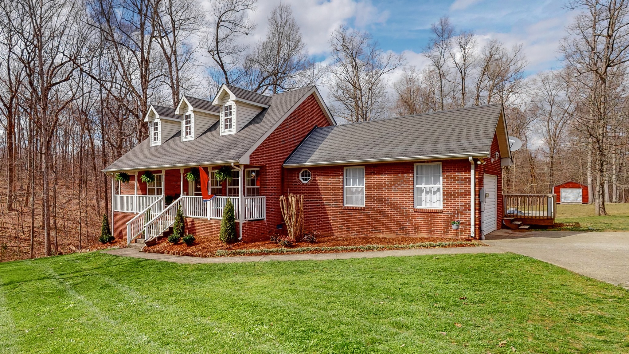 Nestled on just over an acre, this solid brick home on a quiet street is surrounded by woods and conveniently located less than 5 minutes from I-40. Enjoy your morning coffee from your covered porch or spacious newly updated back deck. This level lot is an outdoor entertainers dream complete with an above-ground pool, playground, and backing up to the woods for complete privacy. Main level primary ensuite bathroom features detached separate vanities and access to back deck. Two additional guest bedrooms with a third bedroom that can function as additional flex space/home office. Property features a detached shop/garage providing additional space for storage.
