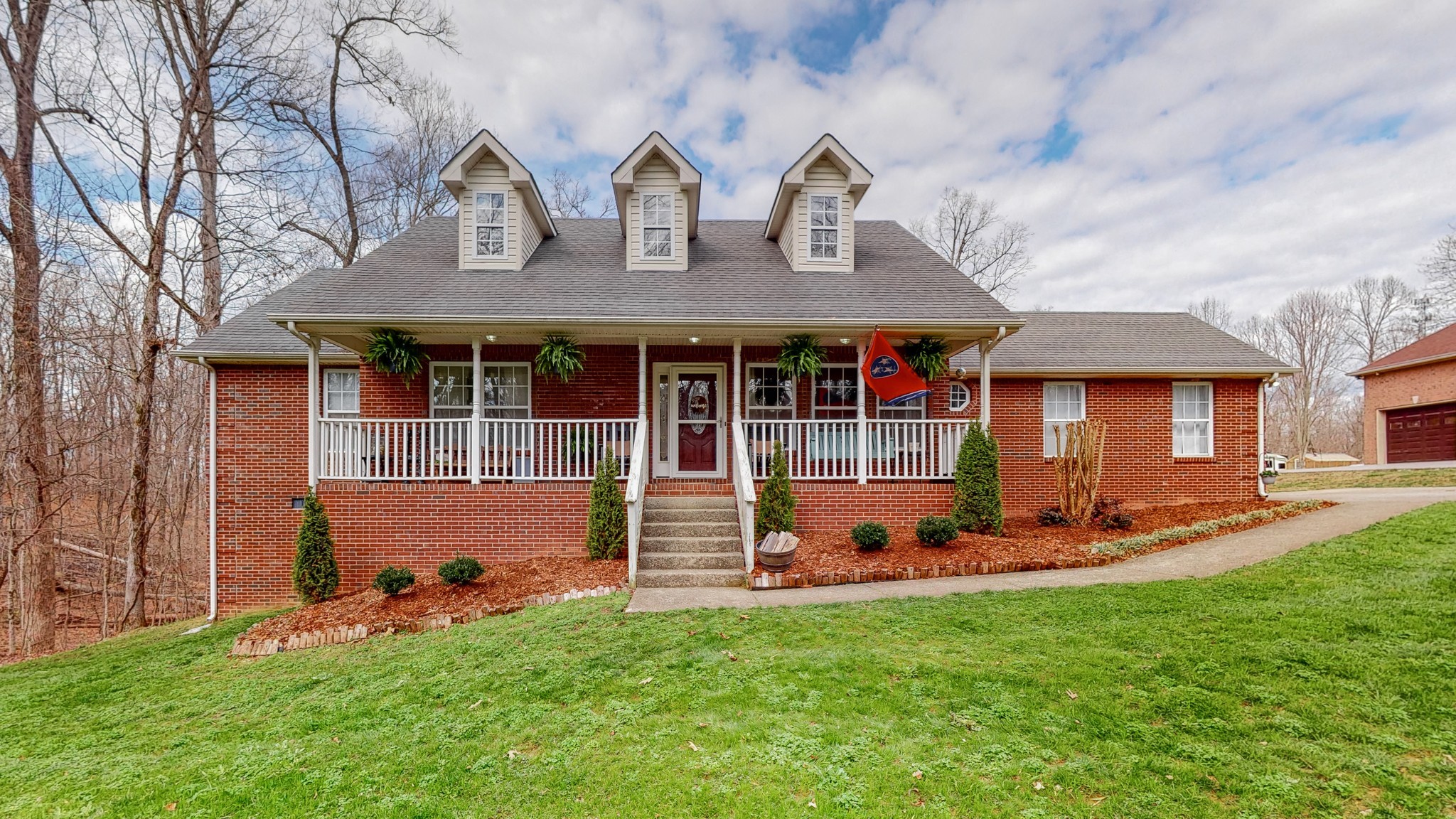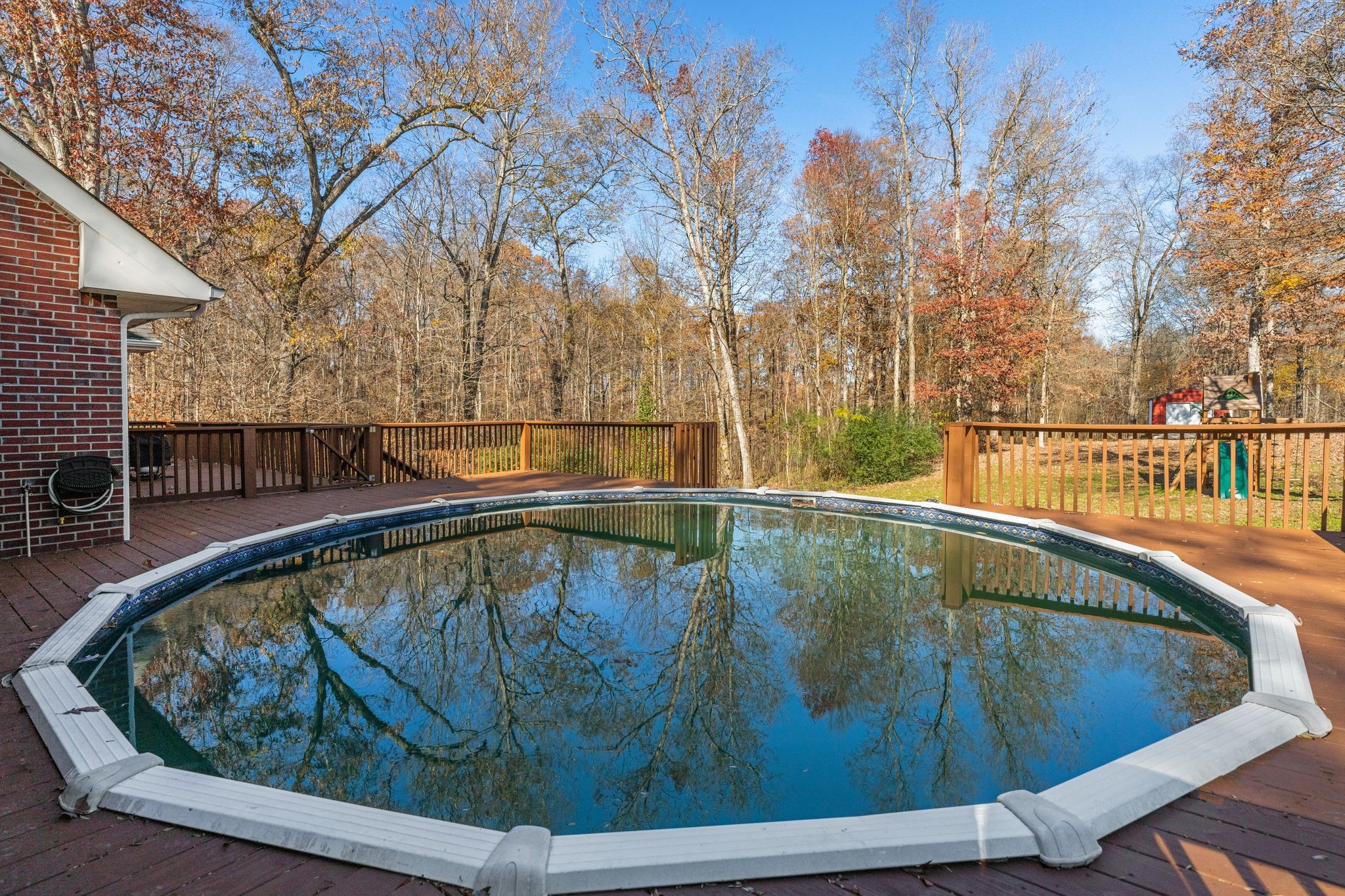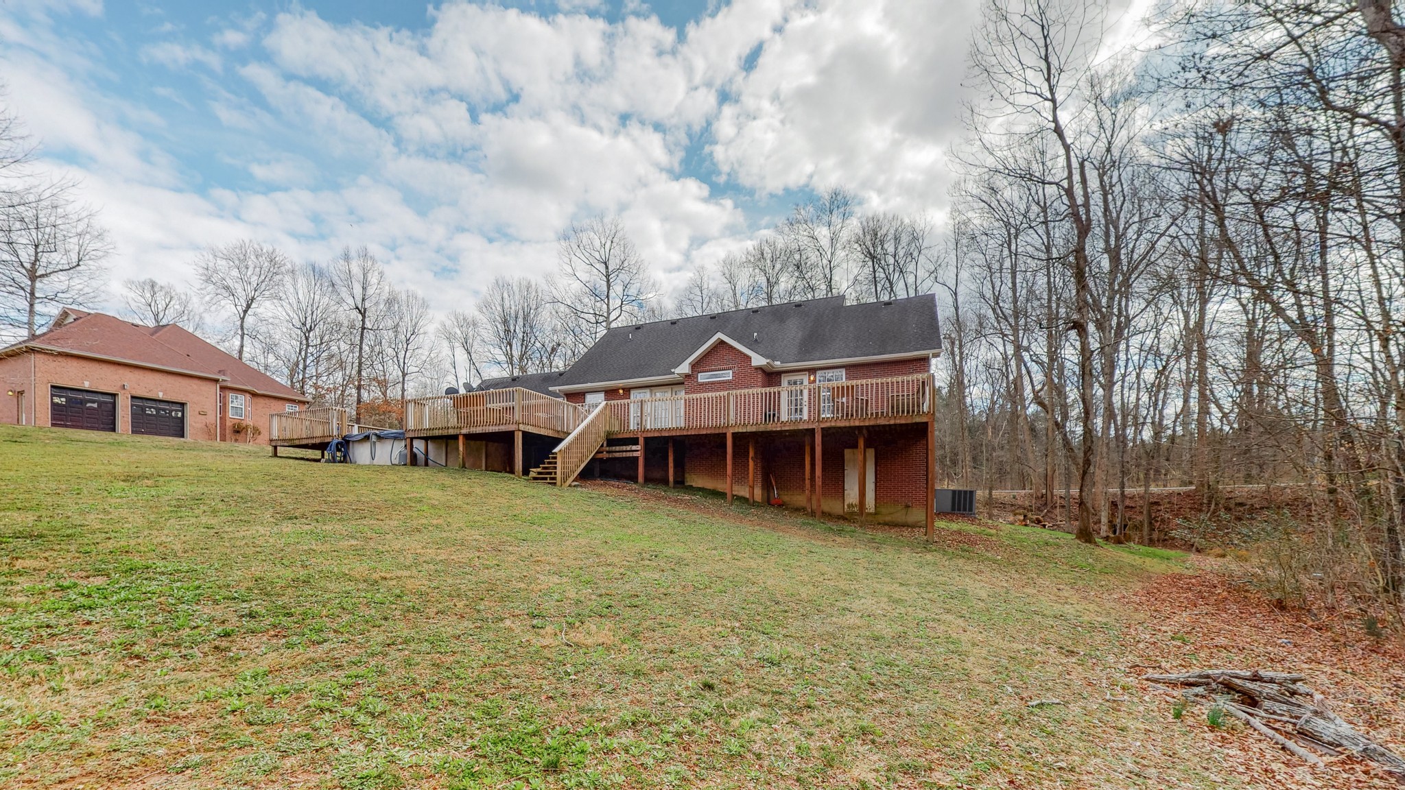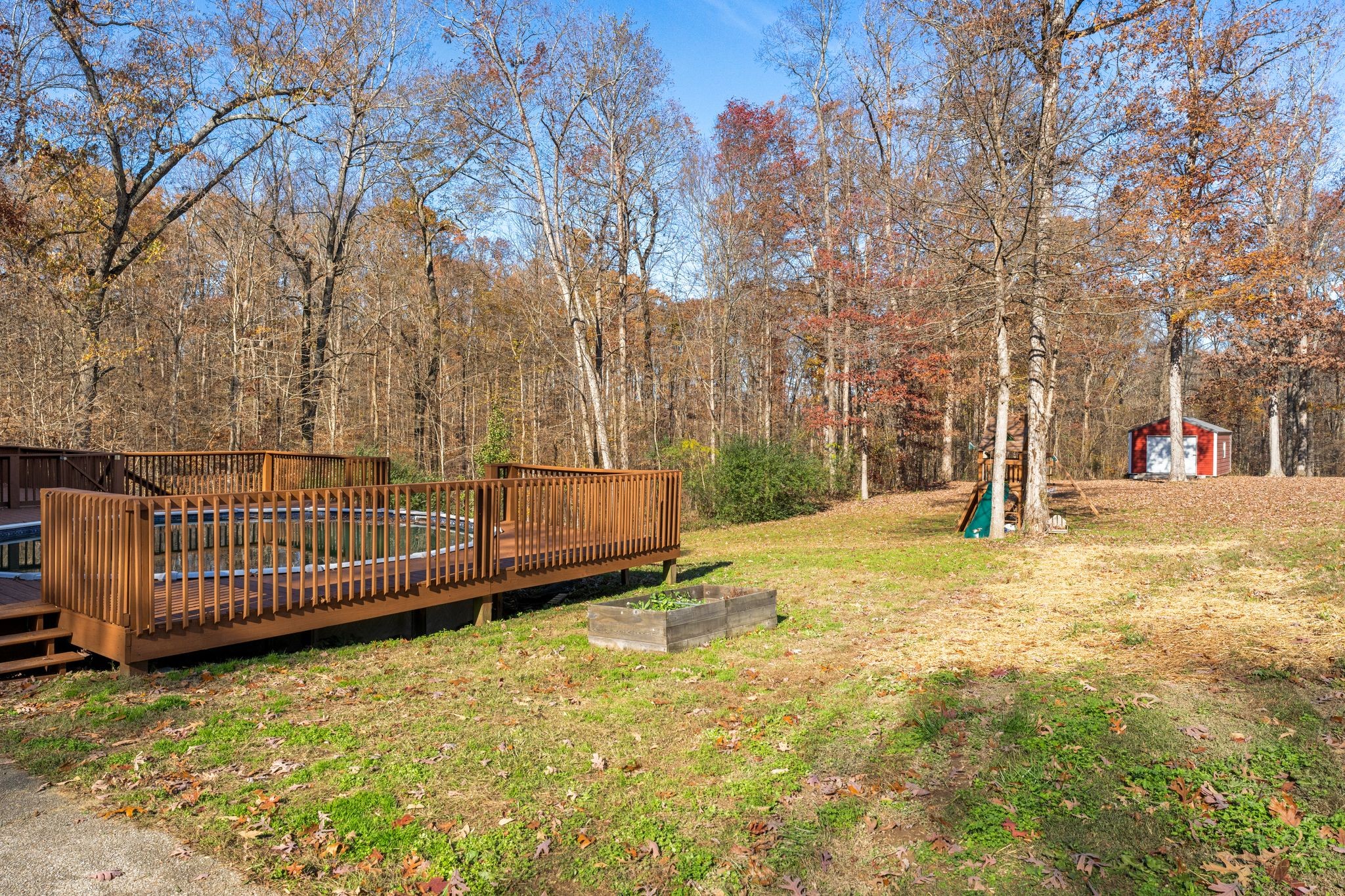 Nestled on just over an acre, this solid brick home on a quiet street is surrounded by woods and conveniently located less than 5 minutes from I-40. Enjoy your morning coffee from your covered porch or spacious newly updated back deck. This level lot is an outdoor entertainers dream complete with an above-ground pool, playground, and backing up to the woods for complete privacy. Main level primary ensuite bathroom features detached separate vanities and access to back deck. Two additional guest bedrooms with a third bedroom that can function as additional flex space/home office. Property features a detached shop/garage providing additional space for storage.