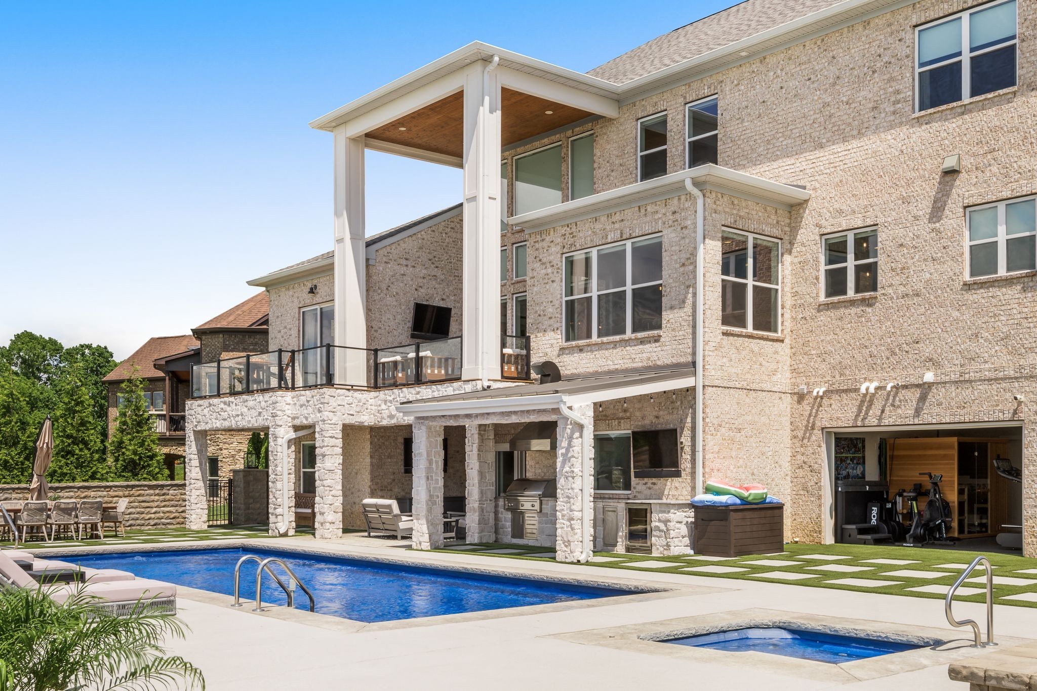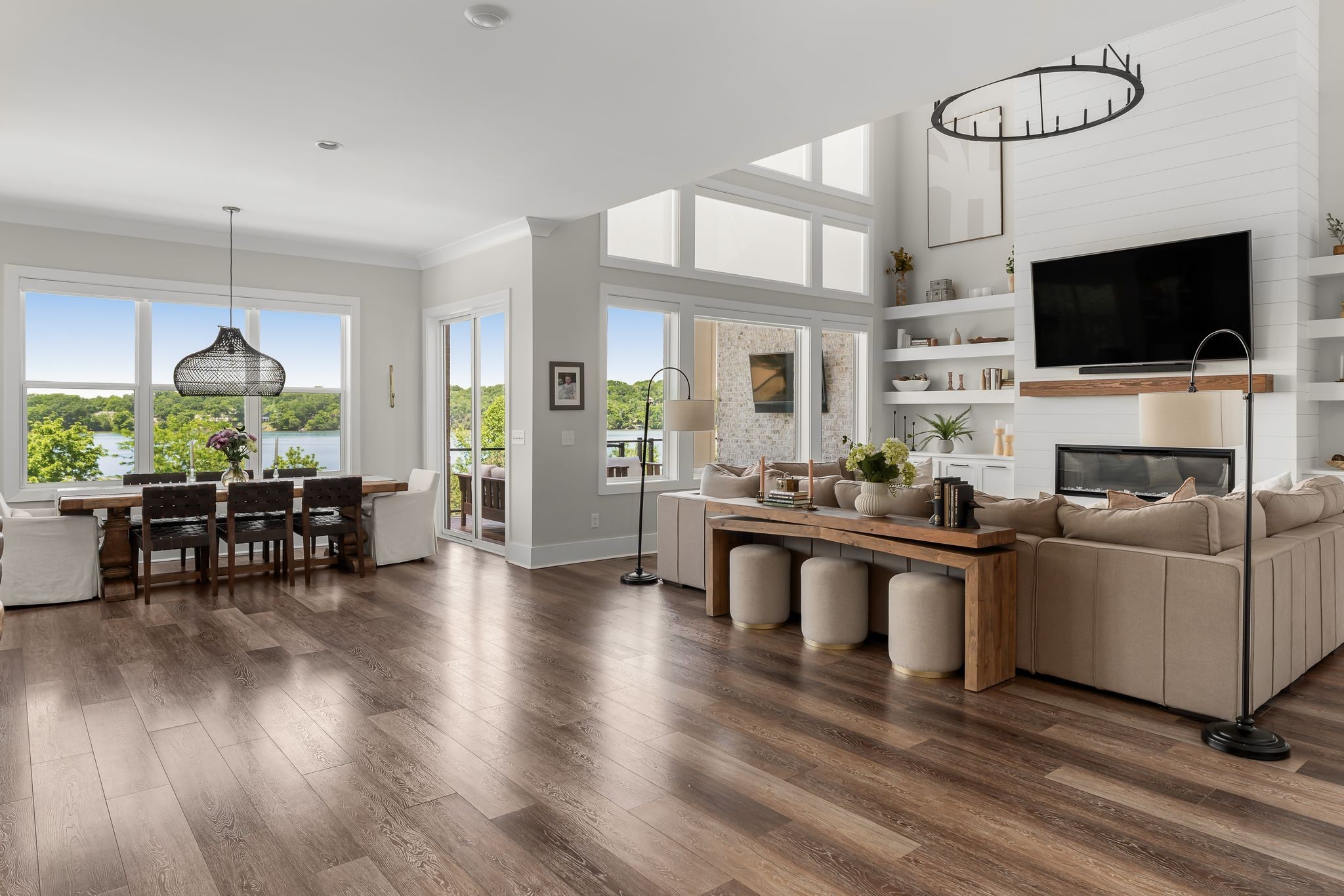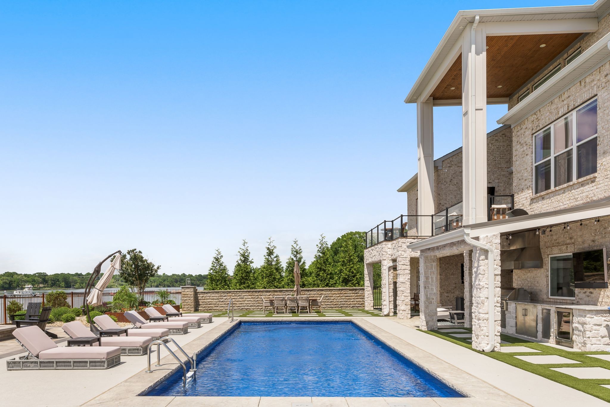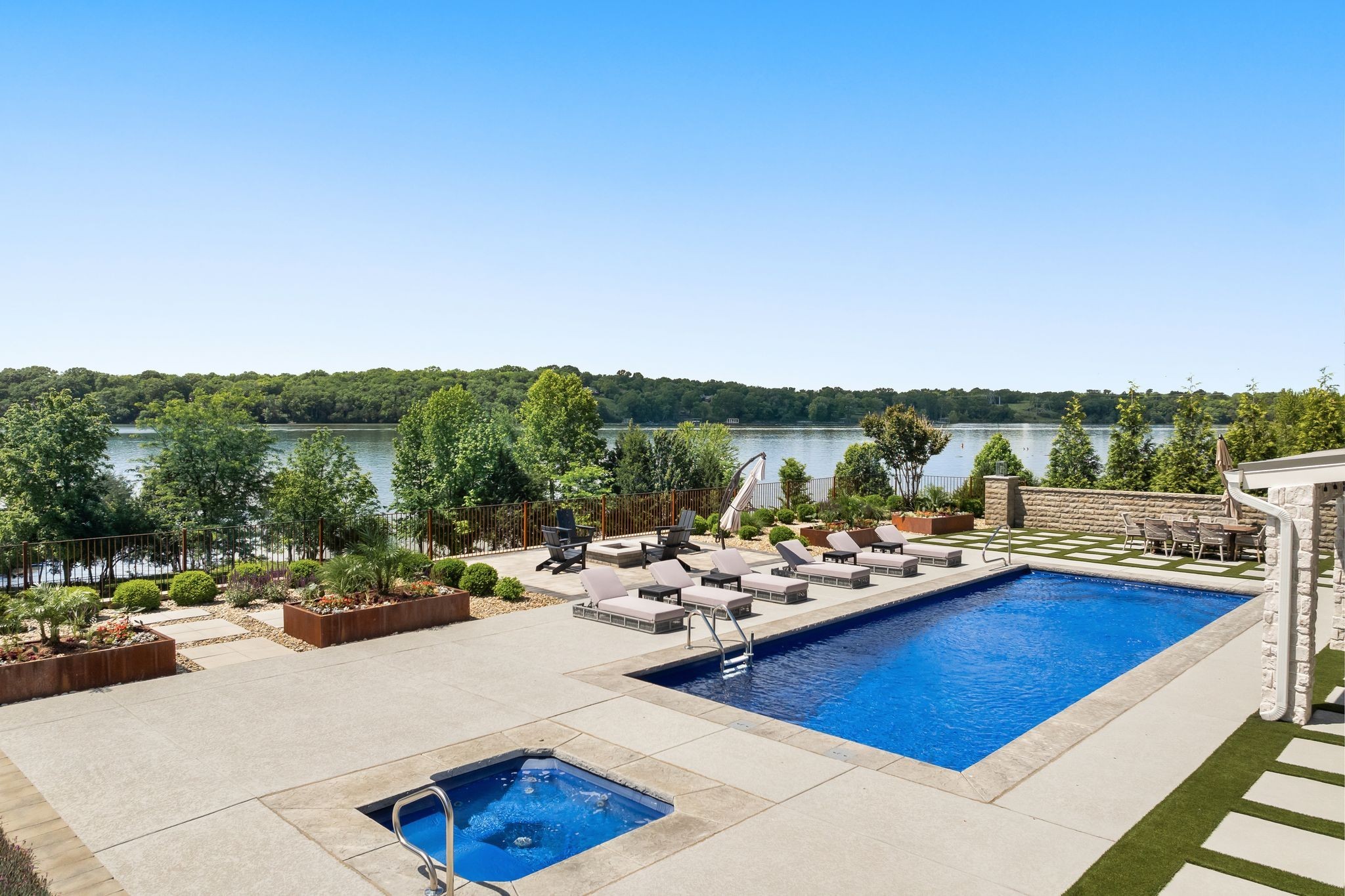 This magnificent estate on over an acre commands a premier position on Old Hickory Lake with breathtaking panoramic water views stretching endlessly in every direction. More than just a lakefront home, this property delivers an unparalleled lifestyle where luxury resort-quality amenities create something truly extraordinary. The spa features a stunning infinity-edge pool and jacuzzi that blend seamlessly with the lake beyond, complemented by a private gym overlooking the water with a sauna set up to function as the ultimate recovery and rejuvenation space. The main floor captures jaw-dropping lake views through floor-to-ceiling windows, while multiple terraces and expansive decks provide endless opportunities for both intimate gatherings and grand entertaining. Below, the fully finished basement transforms into an entertainment paradise with a theater room, kitchenette, direct access to the wellness space, two guest bedrooms, and two bathrooms--essentially a luxury guest wing with every conceivable amenity. The private boat dock puts the entire expanse of Old Hickory Lake at your disposal--whether for sunrise fishing, sunset cruises, or hosting memorable gatherings on the water where every day offers a complete retreat- you and your guests may never want to leave.