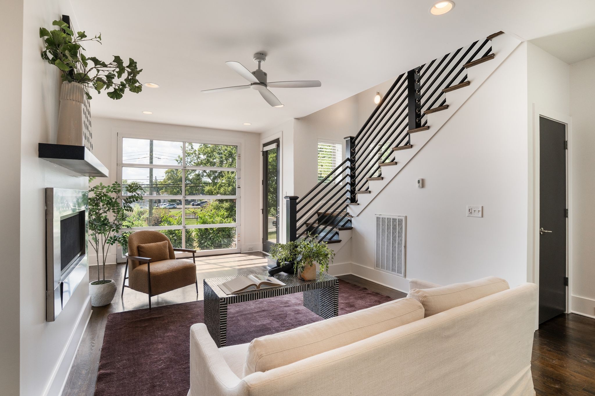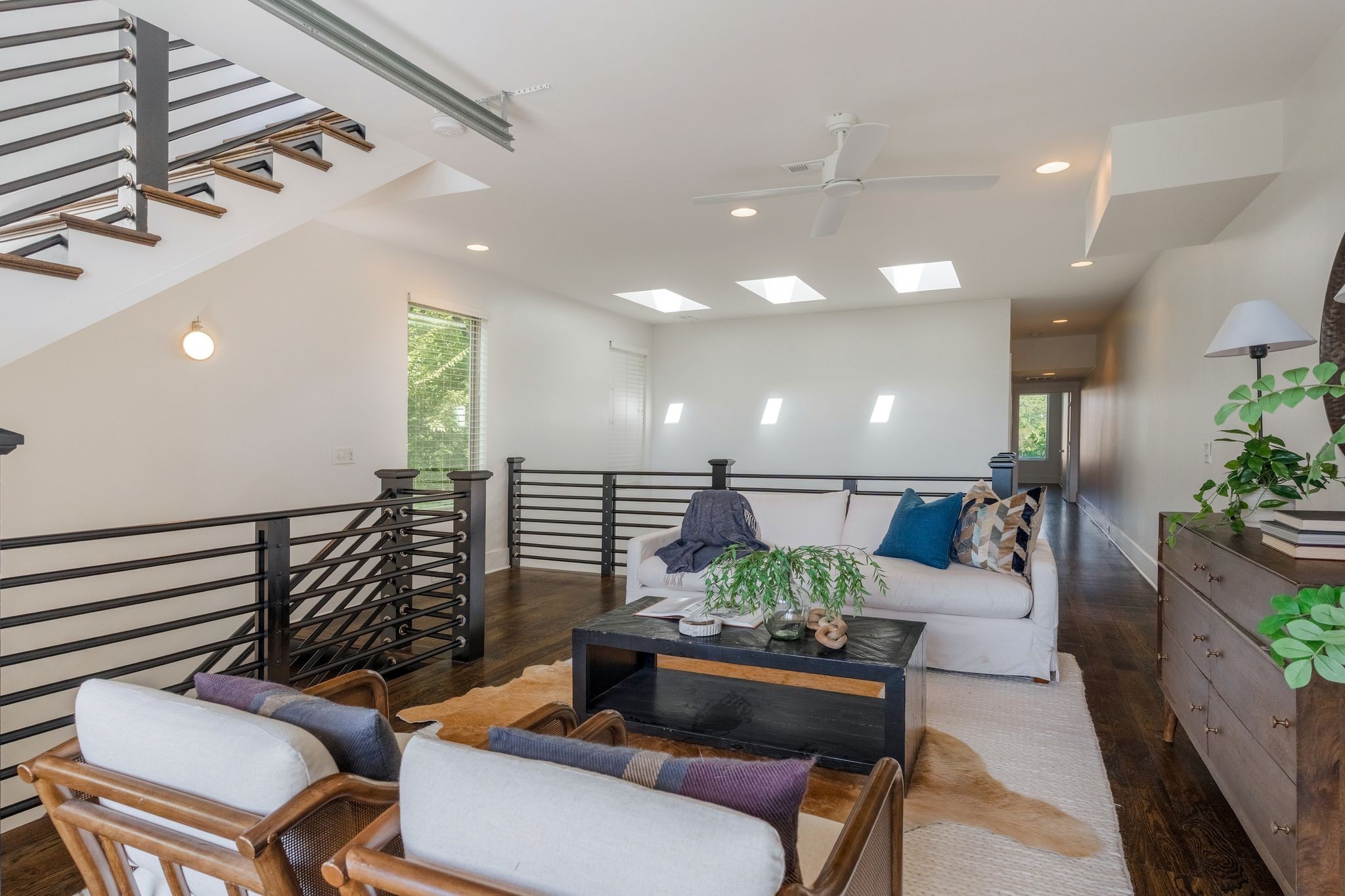 Own a piece of the hottest neighborhood in Nashville! Wedgewood Houston is growing like crazy and is one of Nashville's most exciting, creative, and rapidly growing neighborhoods! 154 Rains Ave is just 10 minutes from downtown and surrounded by world-class amenities that will give you endless opportunities to socialize, play, and explore all that Nashville has to offer. This stunning 3-bedroom, 2.1-bath home offers 2,387 sq ft of stylish, modern living in the heart of WeHo, where developers are investing hundreds of millions into shaping the future of our wonderful city. Soaring ceilings, dramatic walls of windows, and skylights flood this open-concept interior with natural sunlight. The spacious kitchen and cozy gas fireplace create the perfect flow for entertaining, while the upstairs bonus area (with a sleek glass garage door that opens to a private balcony) makes an ideal home office, gym, or creative space. The rooftop deck is amazing, offering sweeping views and incredible proximity to GEODIS soccer stadium. You can see it from your rooftop deck! 154 Rains is also located near some of Nashville's hottest restaurants (Pastis, Bastion, Iggy's), shopping (Hermes is scheduled to open later this year), and the vibrant culture of Soho House and the Fairgrounds, this home delivers walkability, convenience, and city energy without sacrificing comfort and convenience. Additional perks include fresh interior paint, newly stained decks, refinished hardwoods upstairs, and a new extra-large sliding door to the large balcony. Set across from a peaceful elementary school and only two minutes to I-65 for ultra-easy access to the international airport, Brentwood, Cool Springs, Franklin, and more. Whether you're a solo homeowner, co-living professionals, or an investor, this turnkey modern retreat is ready to start your next chapter.