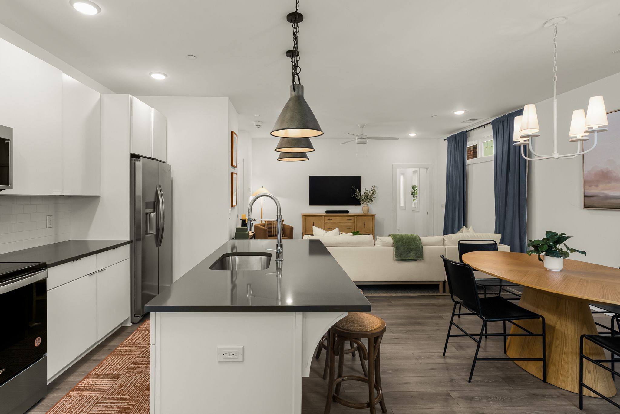 Welcome to this rare top-floor 1-bedroom condo in the heart of Wedgewood-Houston! Built in 2022, this spacious and modern unit offers one of the largest floor plans in the community, featuring an open-concept layout, sleek finishes, stainless steel appliances, and abundant natural light. The condo includes a large walk-in closet, a dedicated laundry room, and two private outdoor spaces, including a balcony and access to a rooftop deck with city views. This unit also comes with free additional storage and offers flexible lease terms starting at just six months. The tenant is responsible for utilities and must carry renters insurance. Smoking is not permitted inside the home. The property is dog-friendly and offers free community parking directly outside the building's front door, with select furnishings available upon discussion. The location is within walking distance to Faigrounds Park, Geodis Park, Fort Negley, and neighborhood favorites Soho House, Mercado, Iggy's, and Dos Santos. It is also just minutes from Downtown and The Gulch with convenient access to I-65.