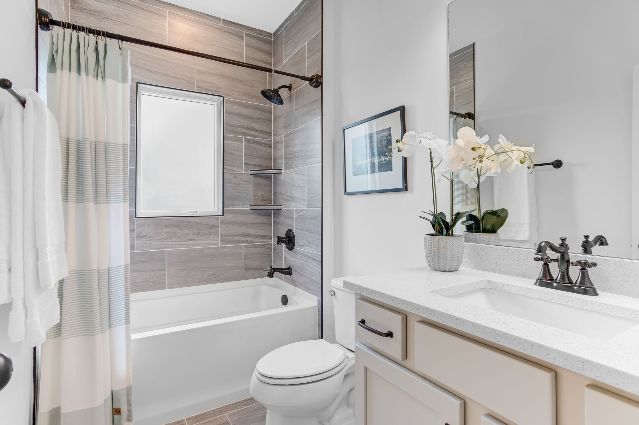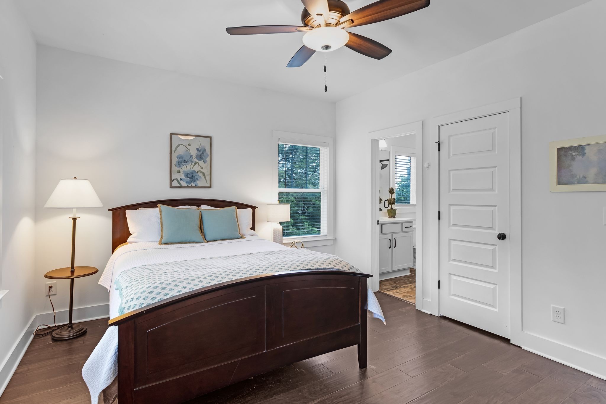 Upstairs, you'll find two generous bedrooms, including a primary suite with en suite bath and a second bedroom adjacent to a well-appointed hall bath--ideal for guests, roommates, or family.