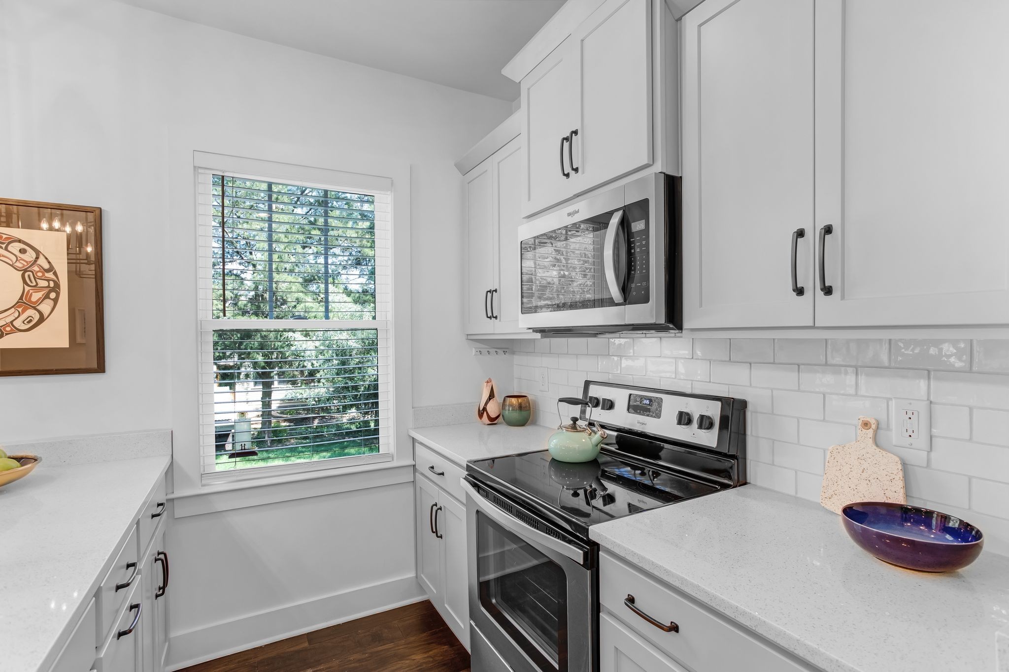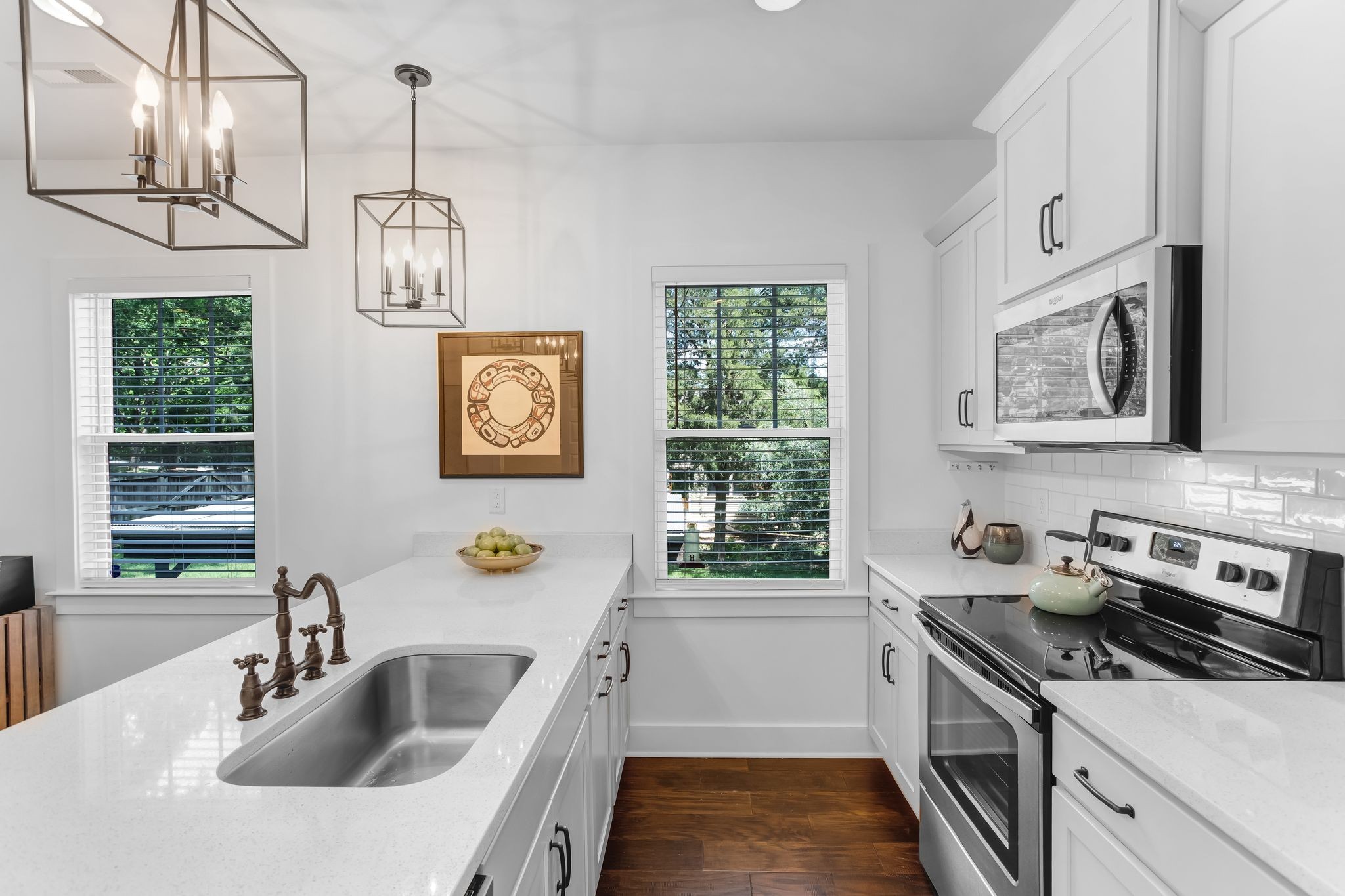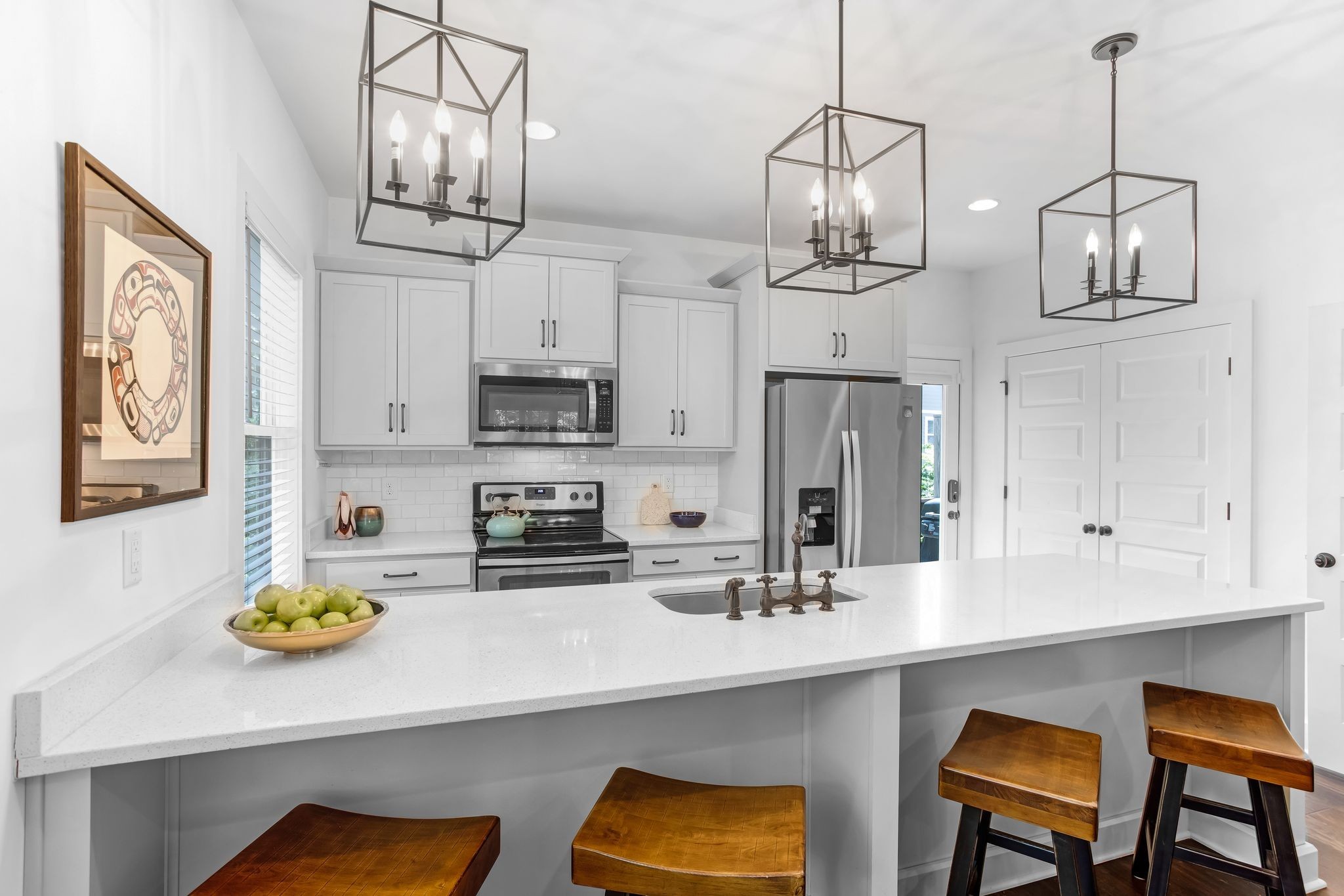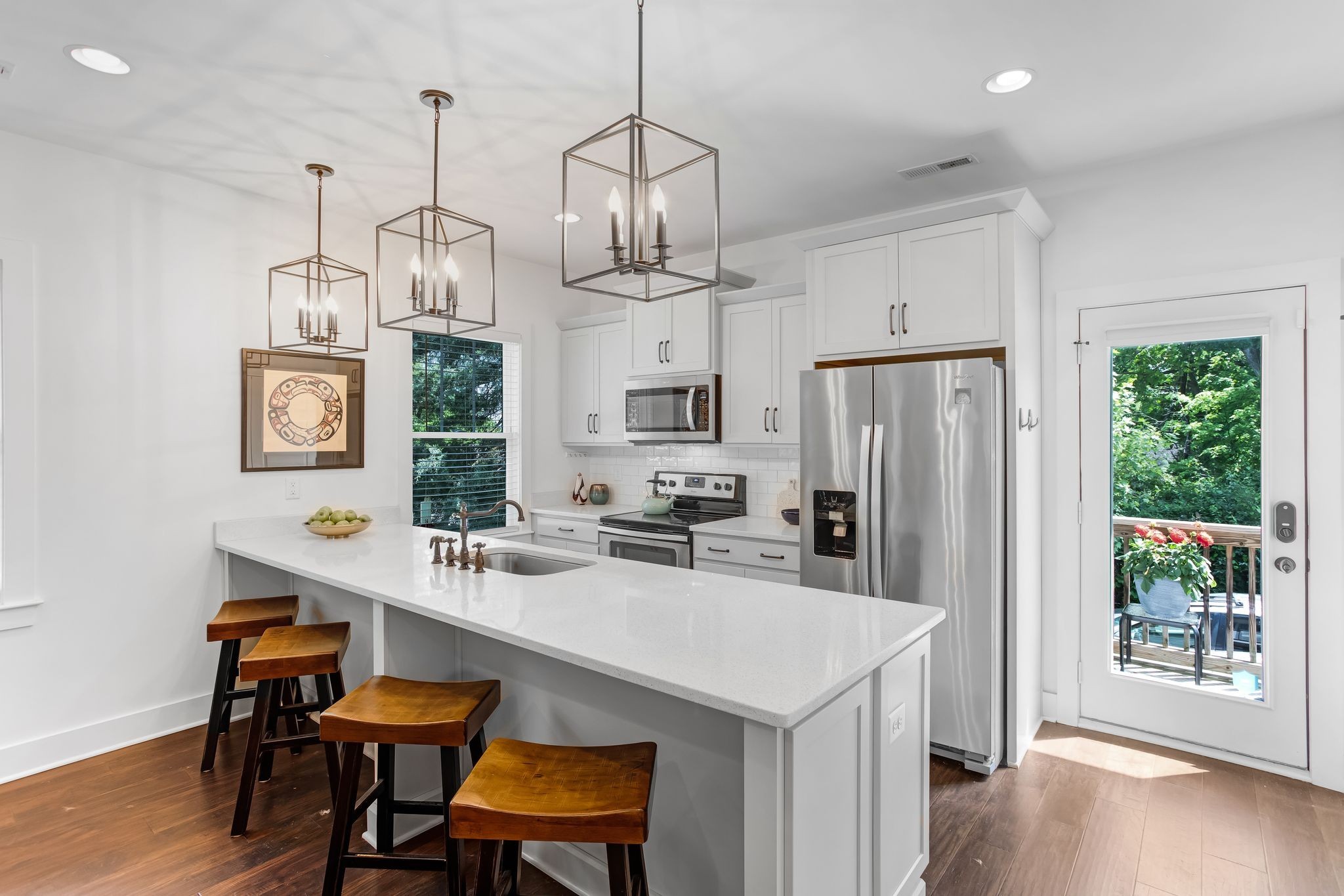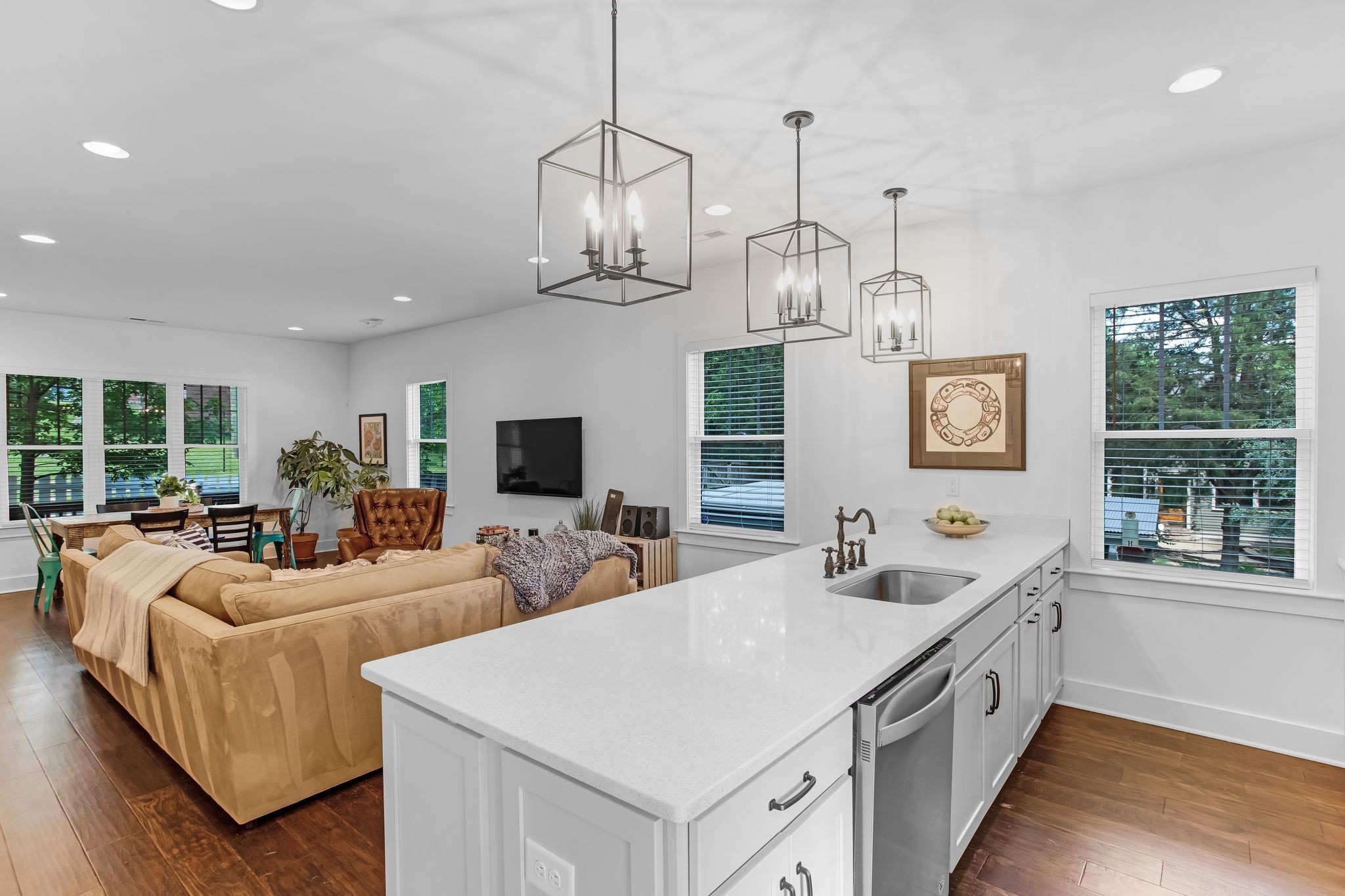 Step into a spacious kitchen featuring a large island, solid surface countertops, and hardwood floors that flow throughout the main living areas. With its 2018 construction, this home provides all the benefits of newer construction--turnkey condition, low maintenance, and up-to-date style.