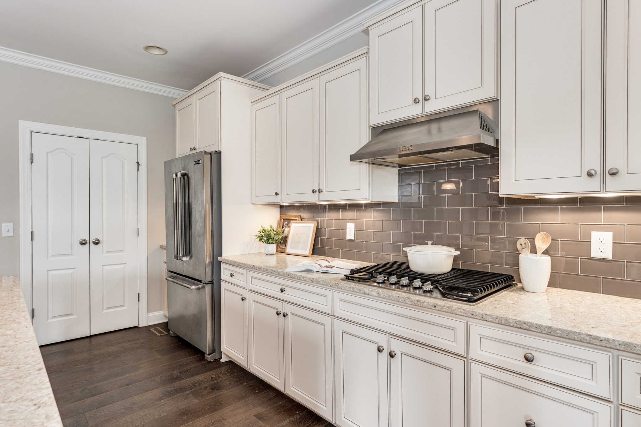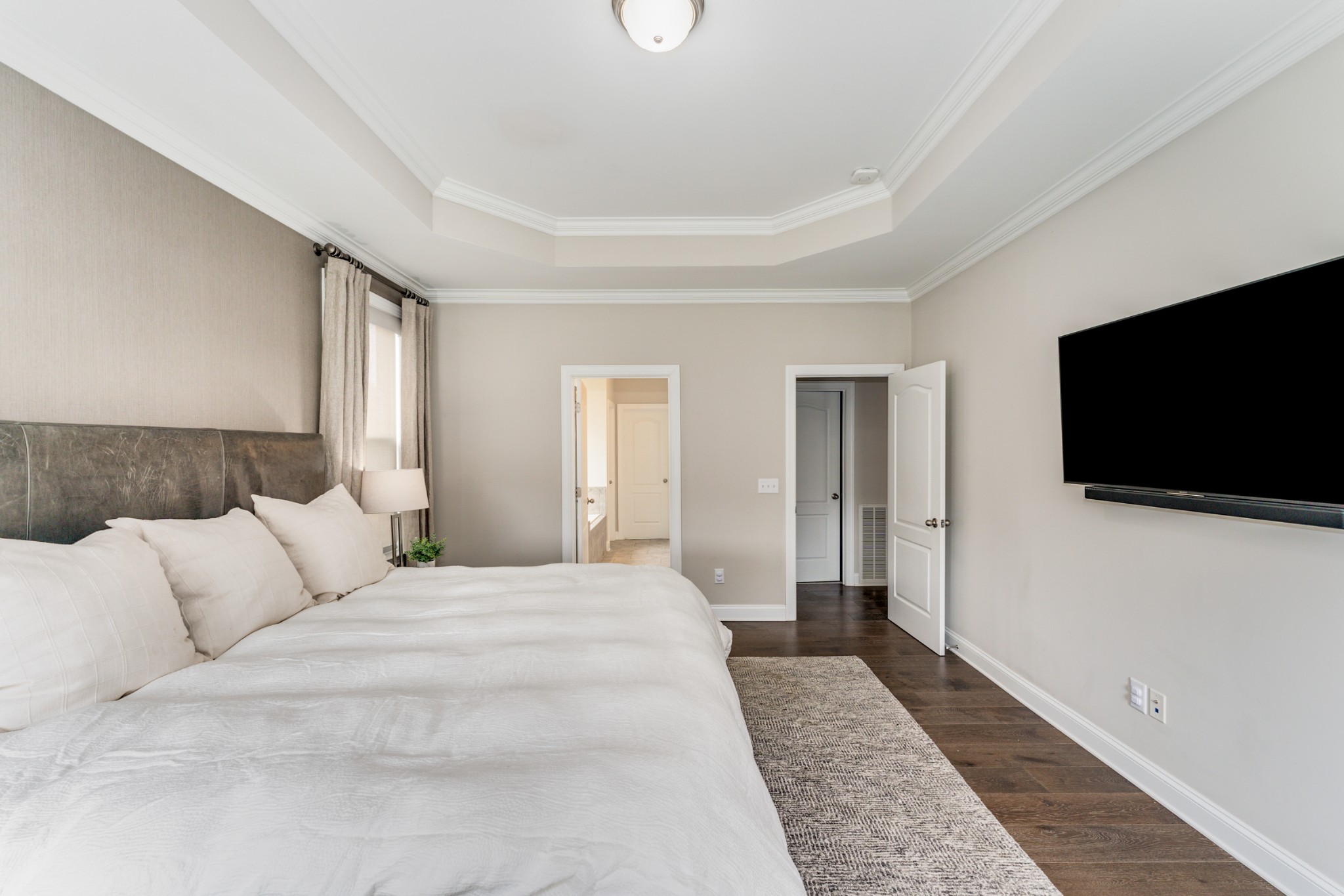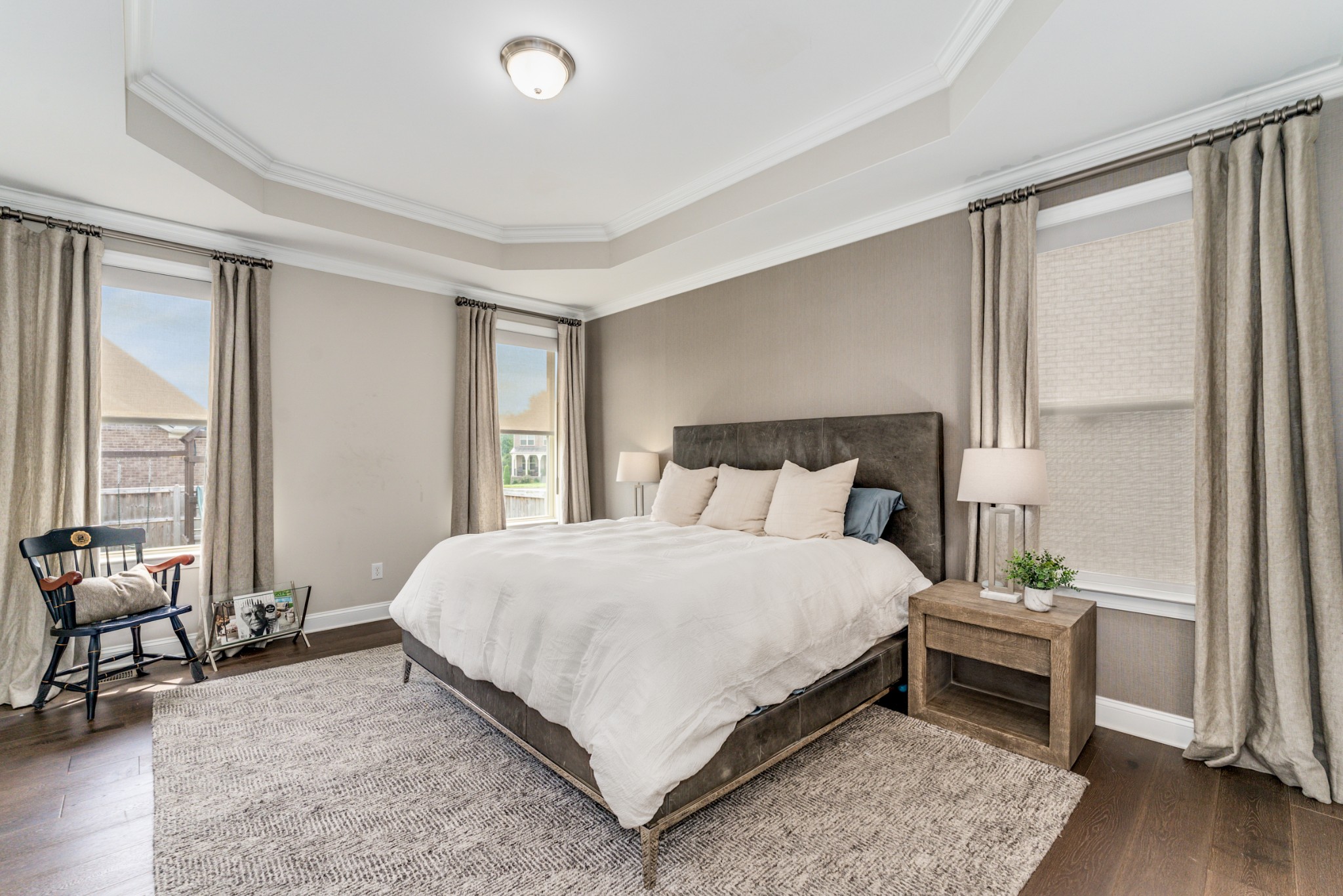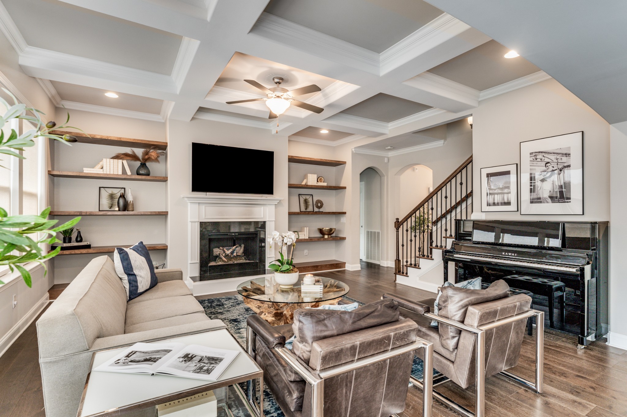 Welcome to 245 Sydney Drive. This lovely 4-bedroom, 3.5-bathroom home is found in Copper Creek, one of the most desirable neighborhoods. Nestled on a tranquil street lined with sidewalks this home boasts hardwoods throughout, an open floor plan, coffered ceilings, and a gas fireplace in the living room. Expansive chef's kitchen with natural light and premium appliances. The main-floor primary bedroom includes a double vanity and a walk-in closet. The other three bedrooms and bonus room, situated above the ground floor for privacy, are designed with plenty of storage and ready for your decorative touch. The large fenced in back yard provides plenty of room includes a freshly painted back deck. This home is truly an entertainers dream! Automatic shades and google home system throughout.