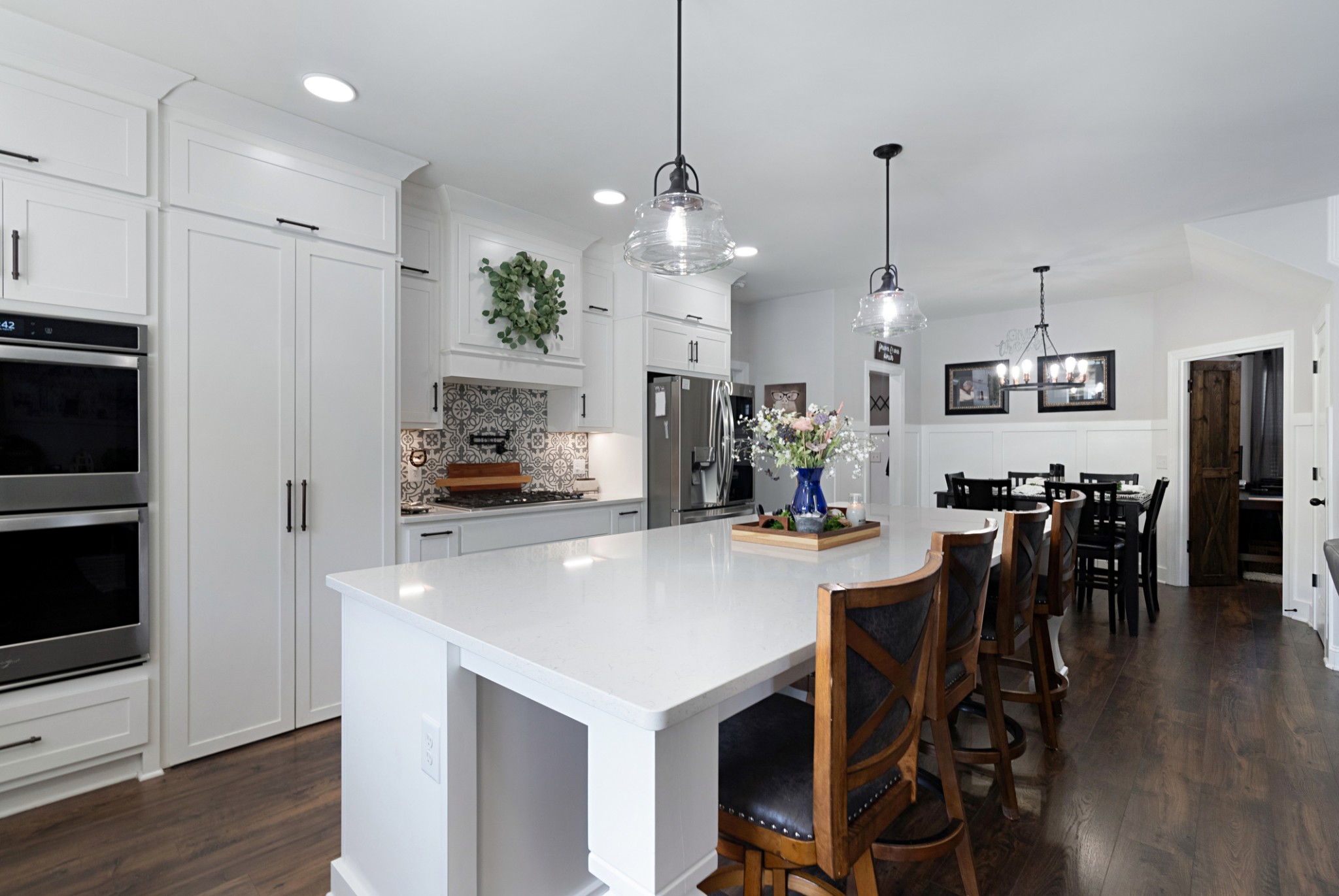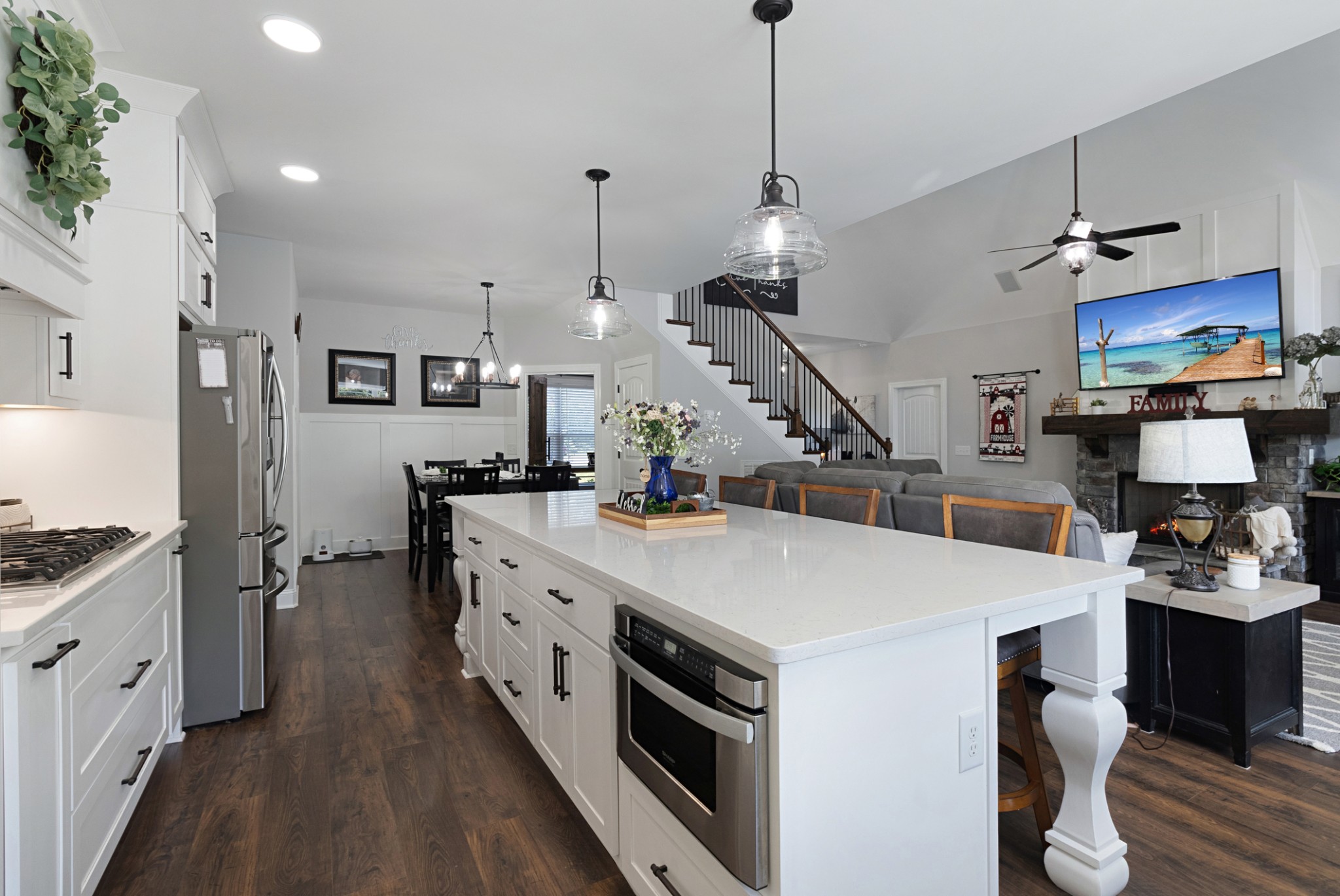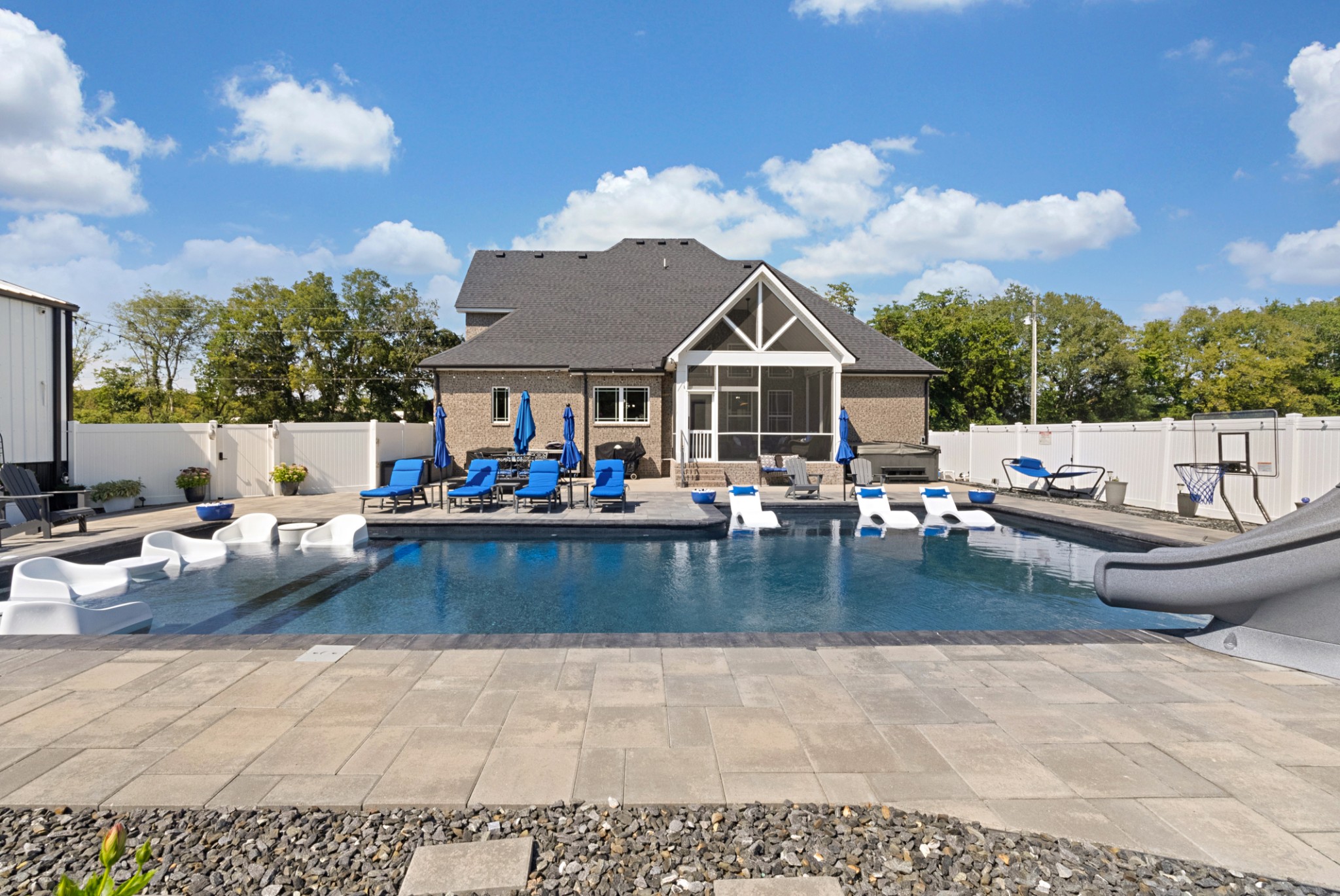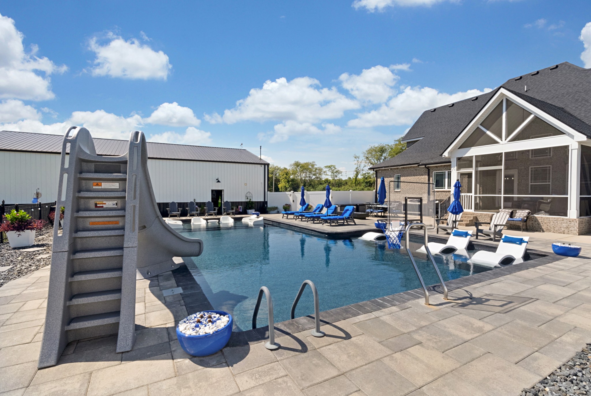 A rare find!!! Nestled on 3.49 acres of serene landscape, this 4 bed, 4 ba, 3076 sqft home is loaded with tons of upgrades and built for the family that loves to entertain. Waterproof LVP flooring throughout the main living area. Each closet has built-in storage solutions. The home features a RainSoft whole-house water filtration system with a reverse osmosis triple filter for drinking water. The kitchen is a chef's dream: Viking gas cooktop, double convection oven, pot filler, 10' island, opens up to the great room with gas fireplace and surround sound speakers. The hidden butler's pantry offers additional storage and a kitchen sink, enhancing the home's functionality. The covered, screened patio overlooks the expansive 18 x 44 saltwater pool and hot tub. The home is smart-ready and features tech shield roofing, gas heat, and energy-efficient LED lighting throughout. The property also includes a 40 x 60 shop with a full bathroom and a 16-foot lean-to.
