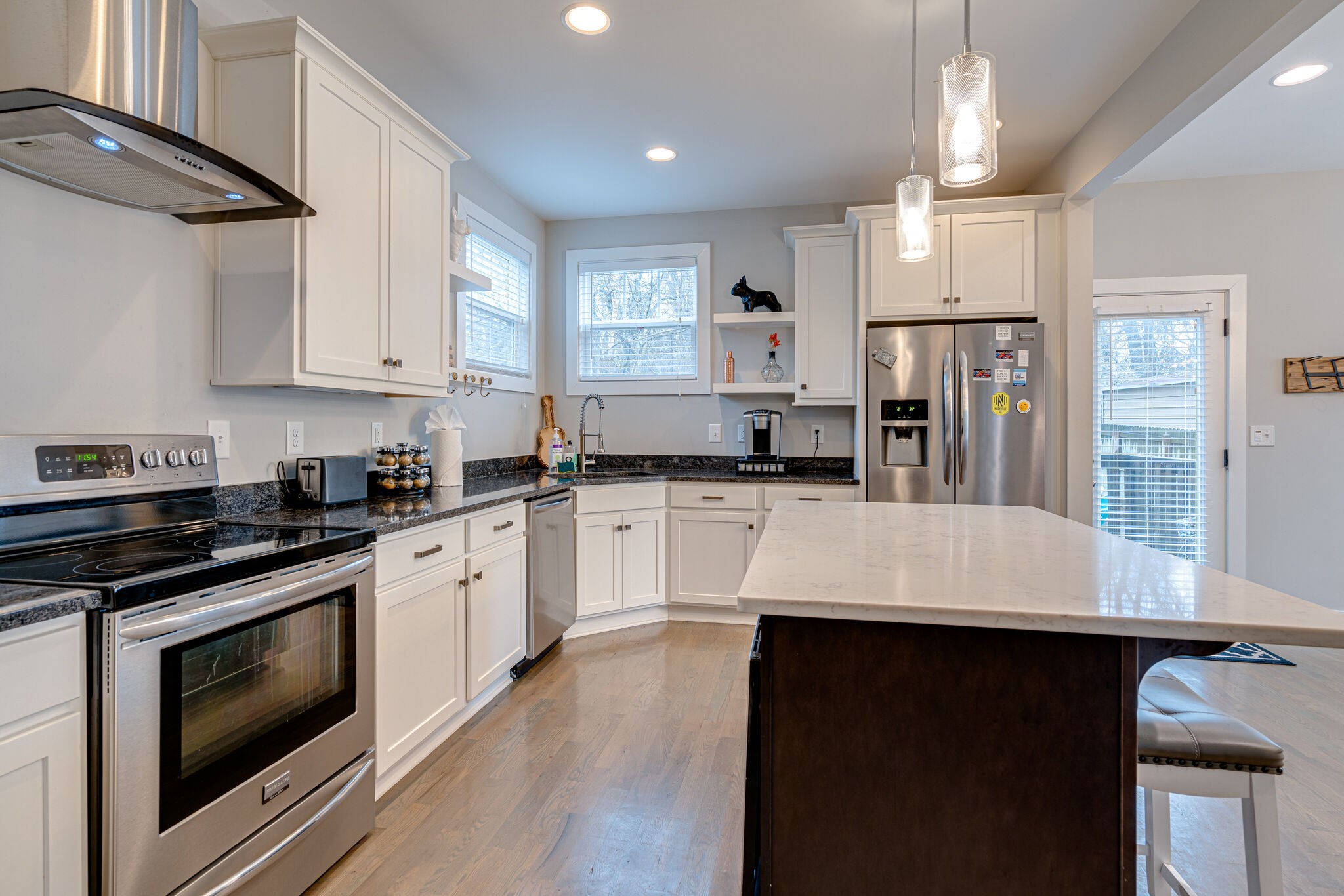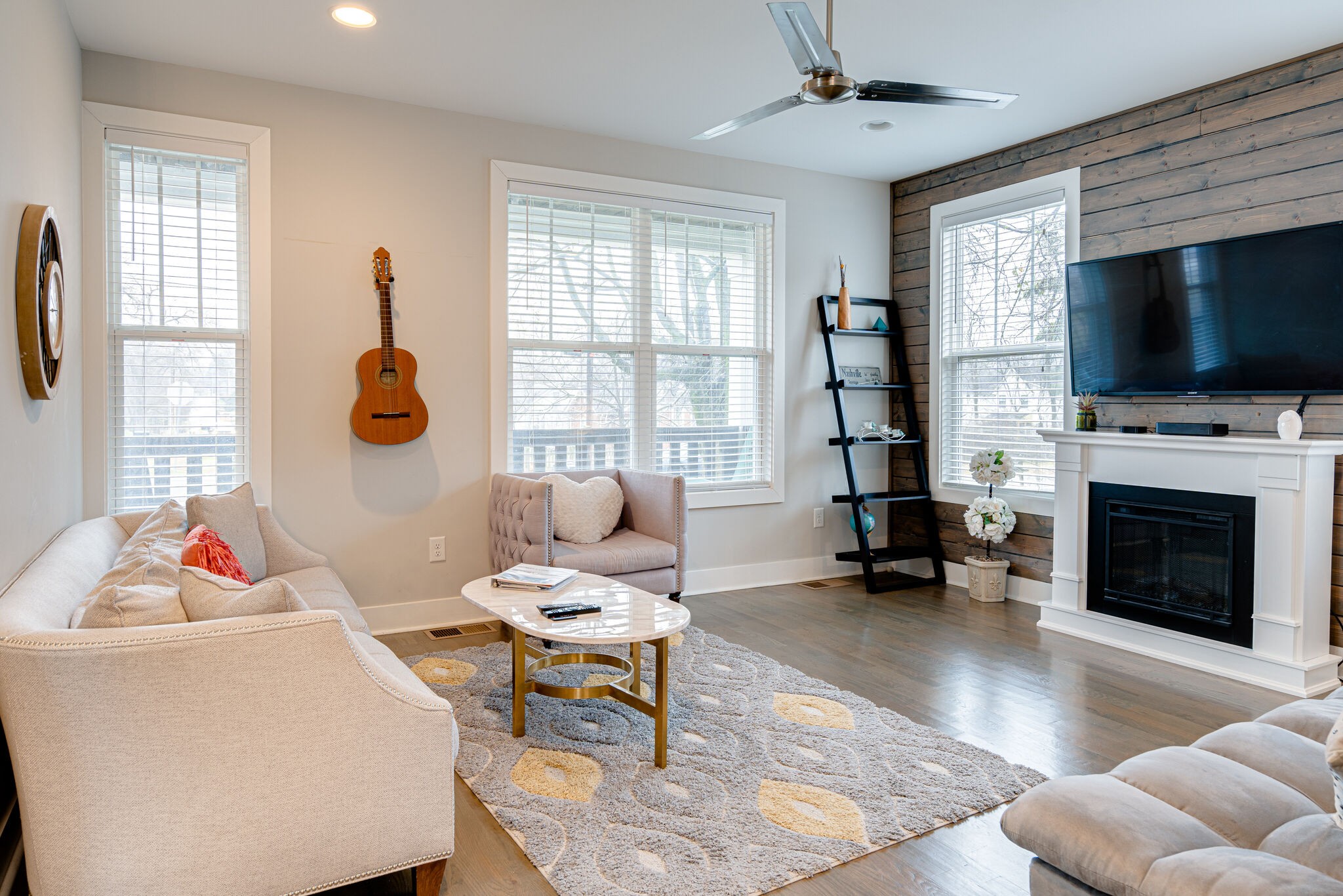 Perfect location in the heart of East Nashville - Walkable to The Wash, Tower Deli, Be-Hive Market, The Cobra and Once Upon a Time in France! Just a hop and skip away from 5 Points and Eastland Ave restaurants and bars! Gorgeous cottage on full single lot with functional open floorplan, unique designer finishes, hardwood floors, wooden accent walls, large dining area, quartz countertops & island in kitchen with stainless steel appliances. Covered porch & deck with fully fenced in back/side yard, large parking pad.