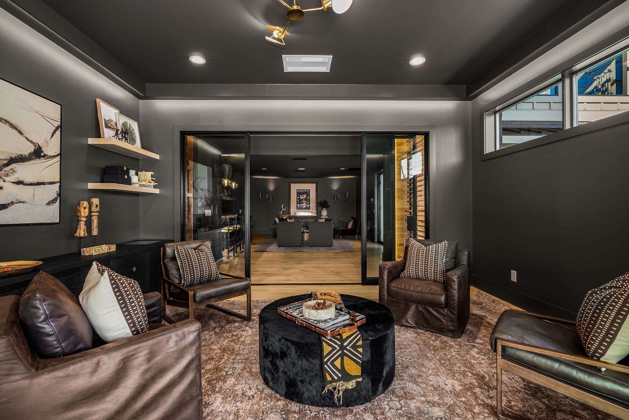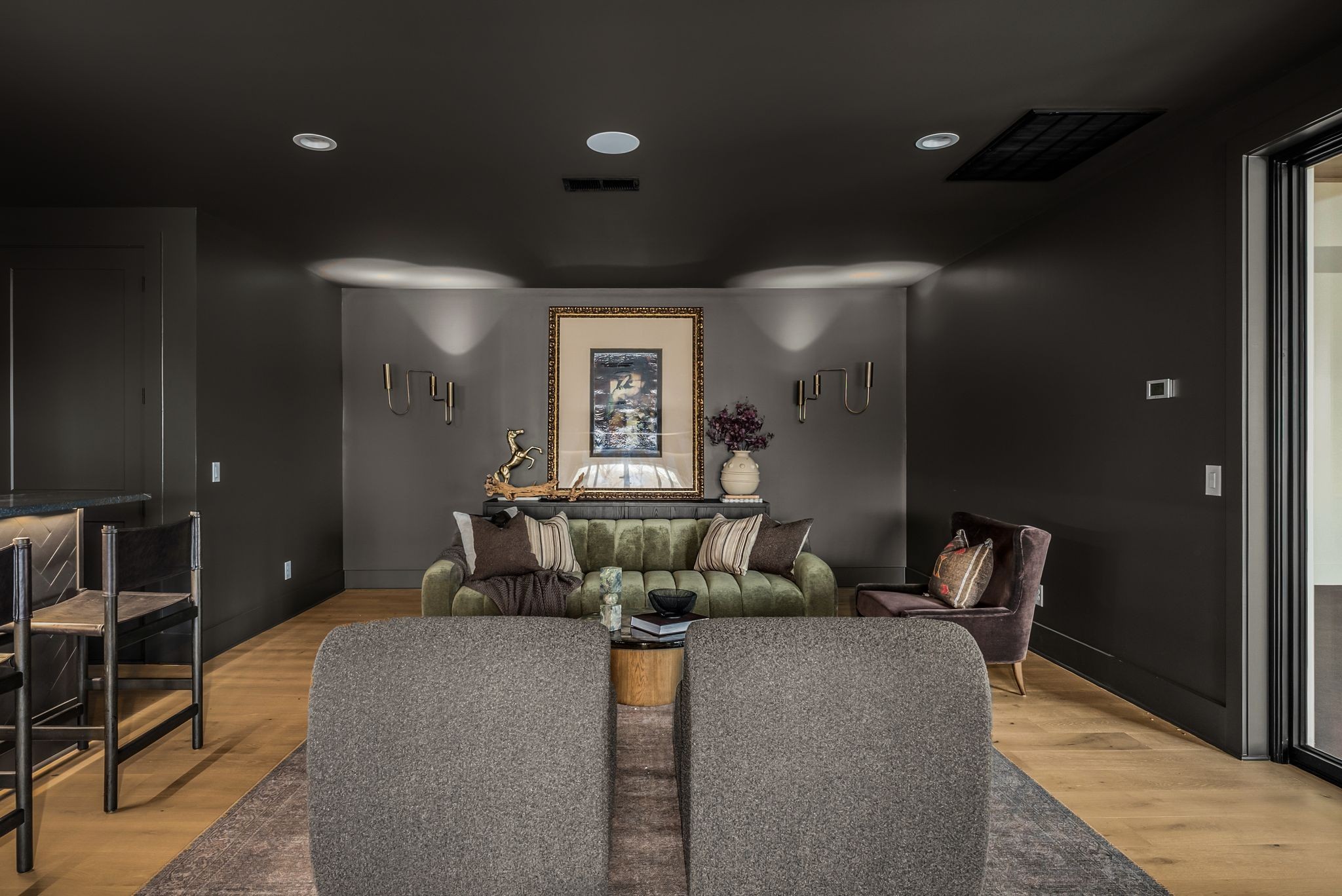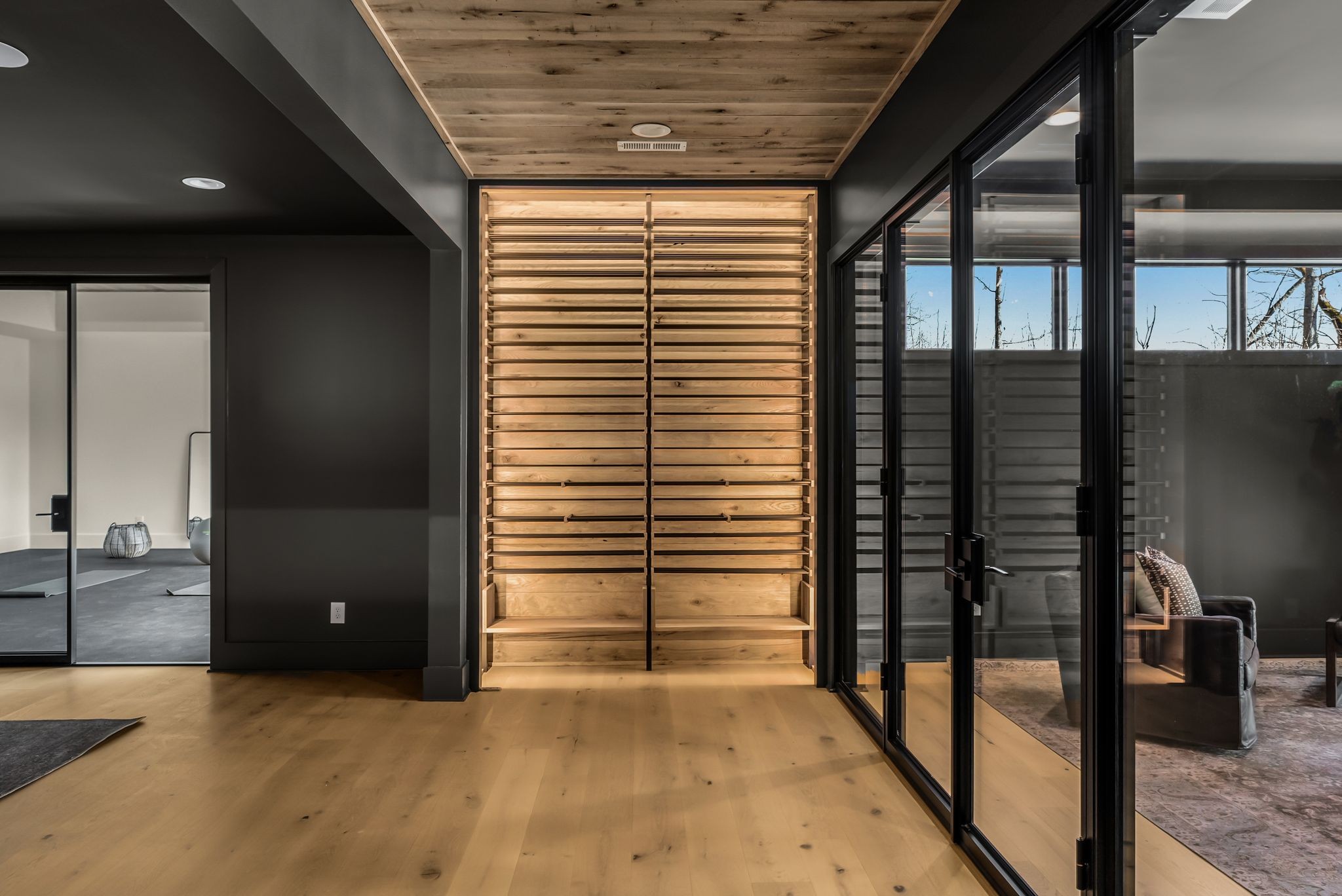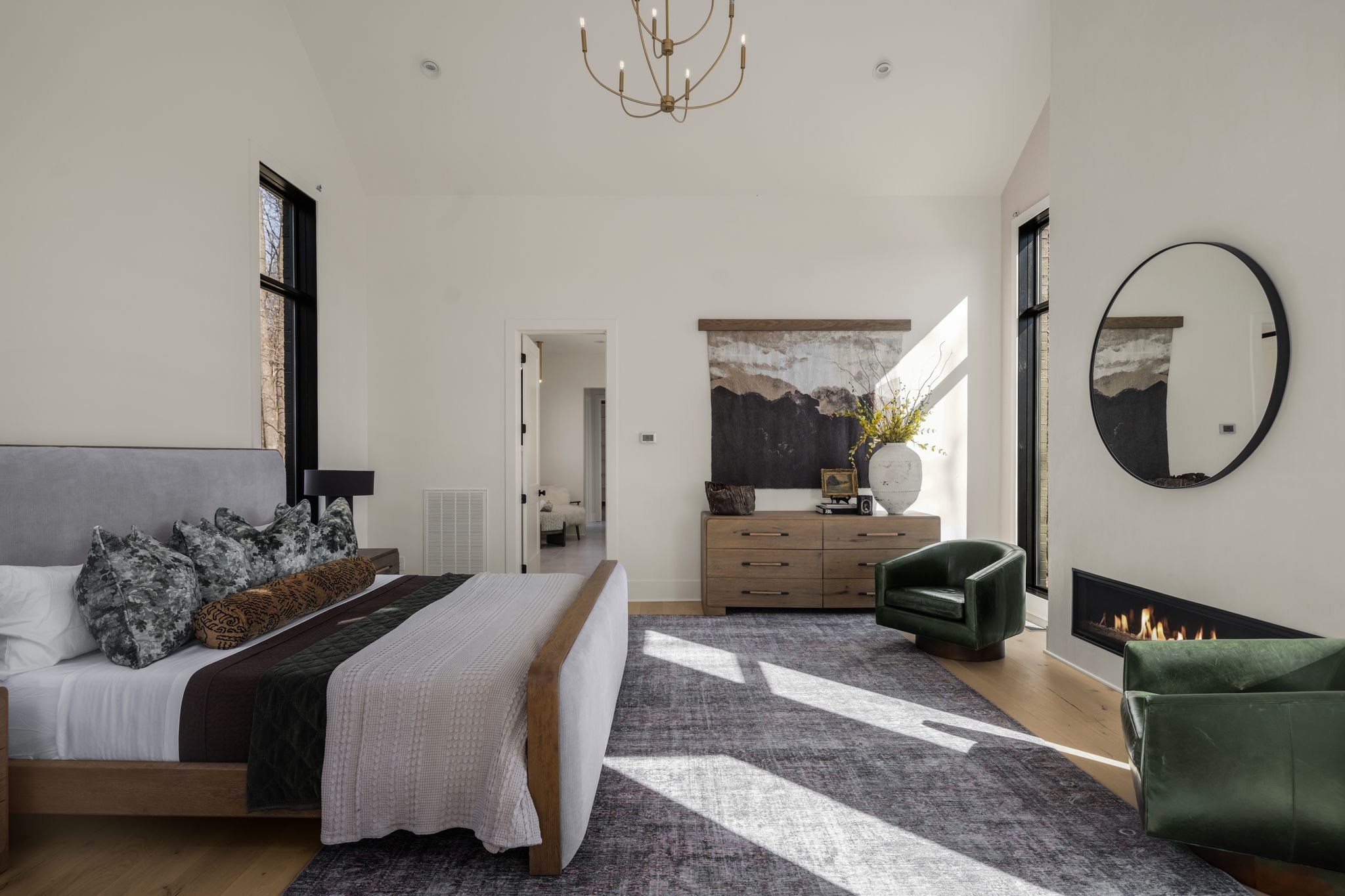 This exceptional residence is in a league of its own. Showcasing vaulted ceilings, floor-to-ceiling windows, and luxury design and finishes throughout. The primary suite serves as a true retreat with gas fireplace, heated floors, California His and Hers closets, and a spa-inspired bath featuring a built-in sauna. The finished basement includes a golf simulator/home theater, cigar lounge, gym, and wet bar. Outdoors is an entertainers dream, complete with a saltwater pool and spa accented by fire features, tanning deck, outdoor kitchen, and multiple entertaining areas including three fire pits. Completing the home is a 1,200 SF ADU with studio, kitchenette, and full bath- offering seamless flexibility for guests, in-laws, or extended living. This estate is truly one of one. Total square footage and bedroom/bathroom count include the ADU.