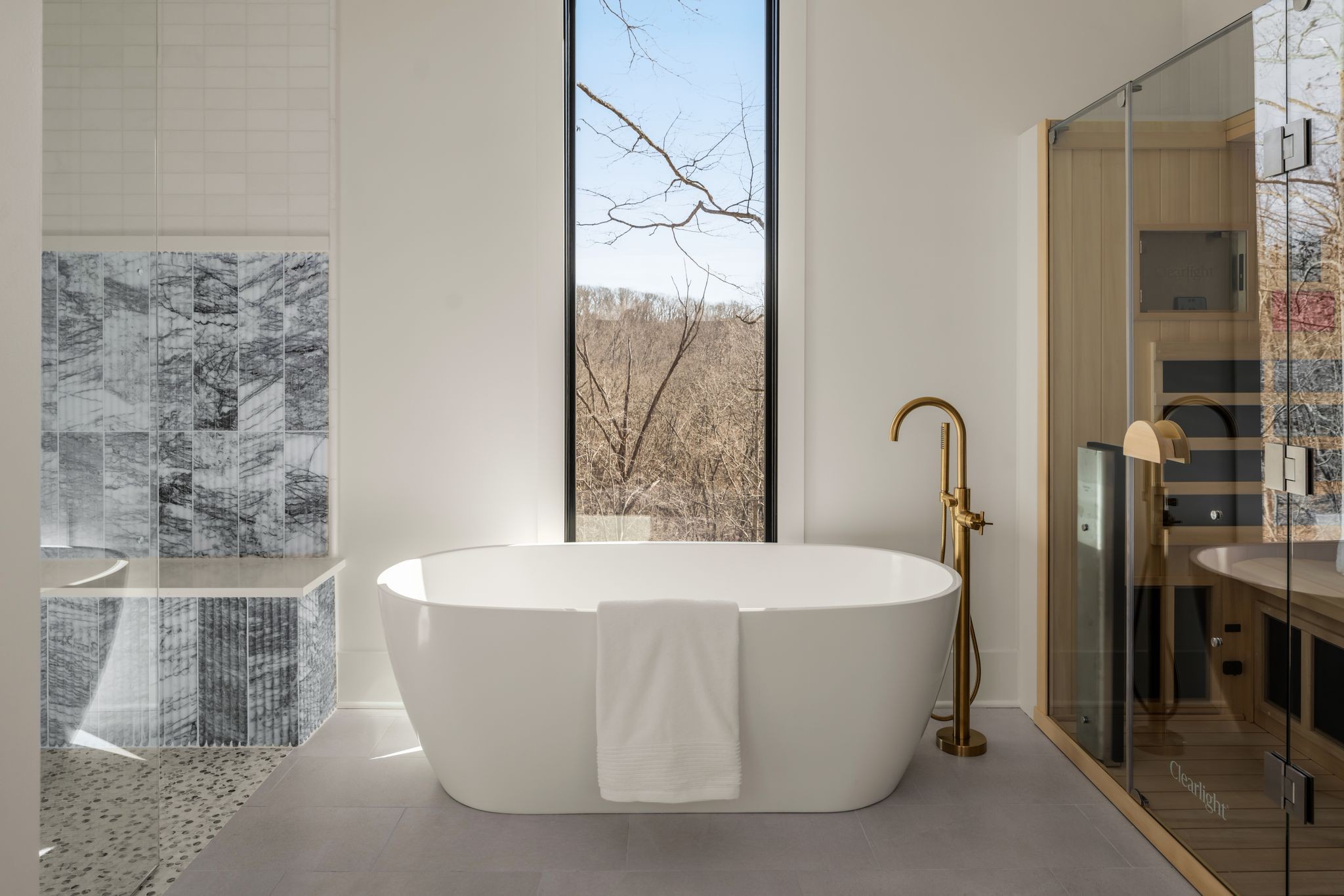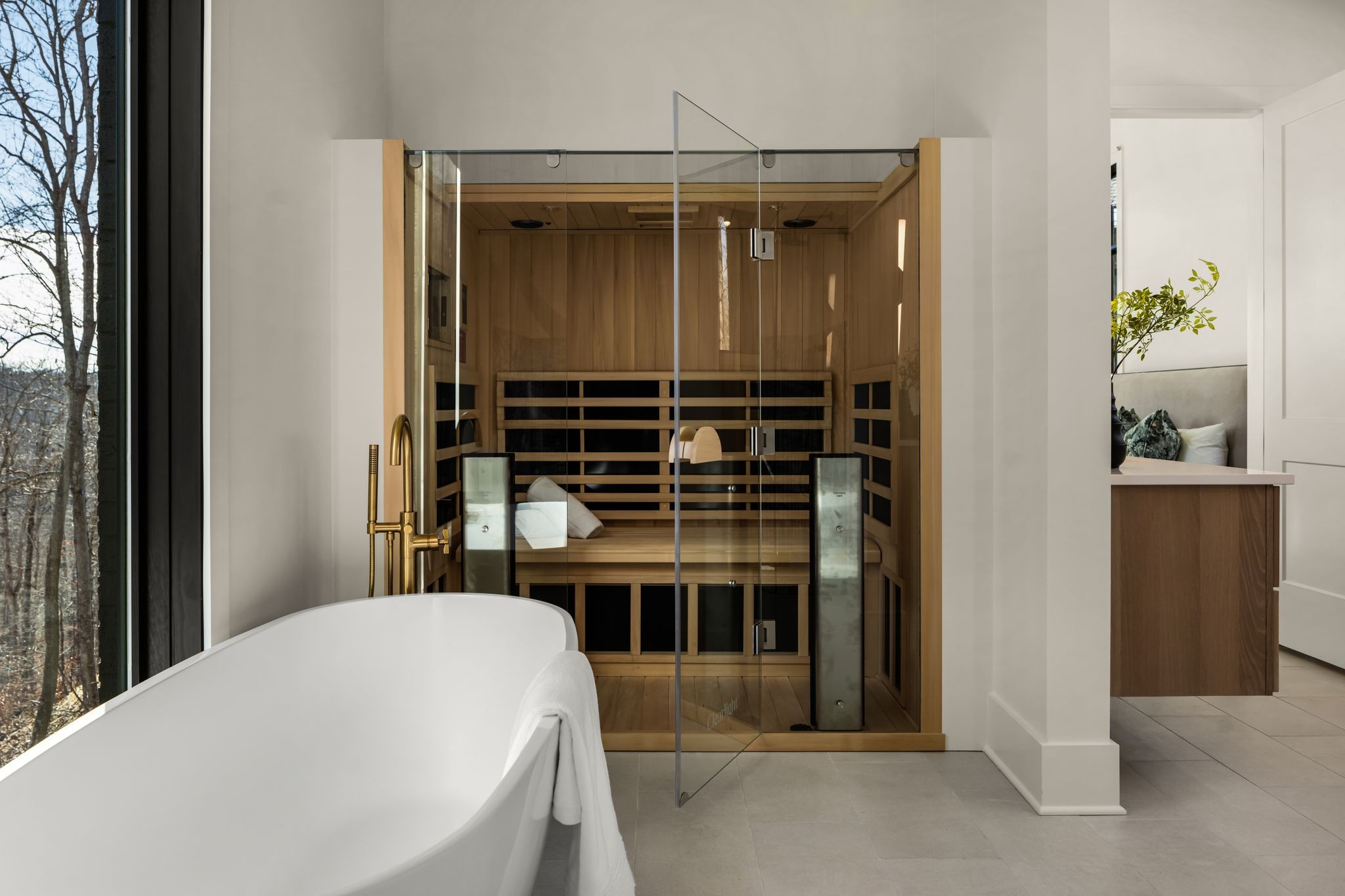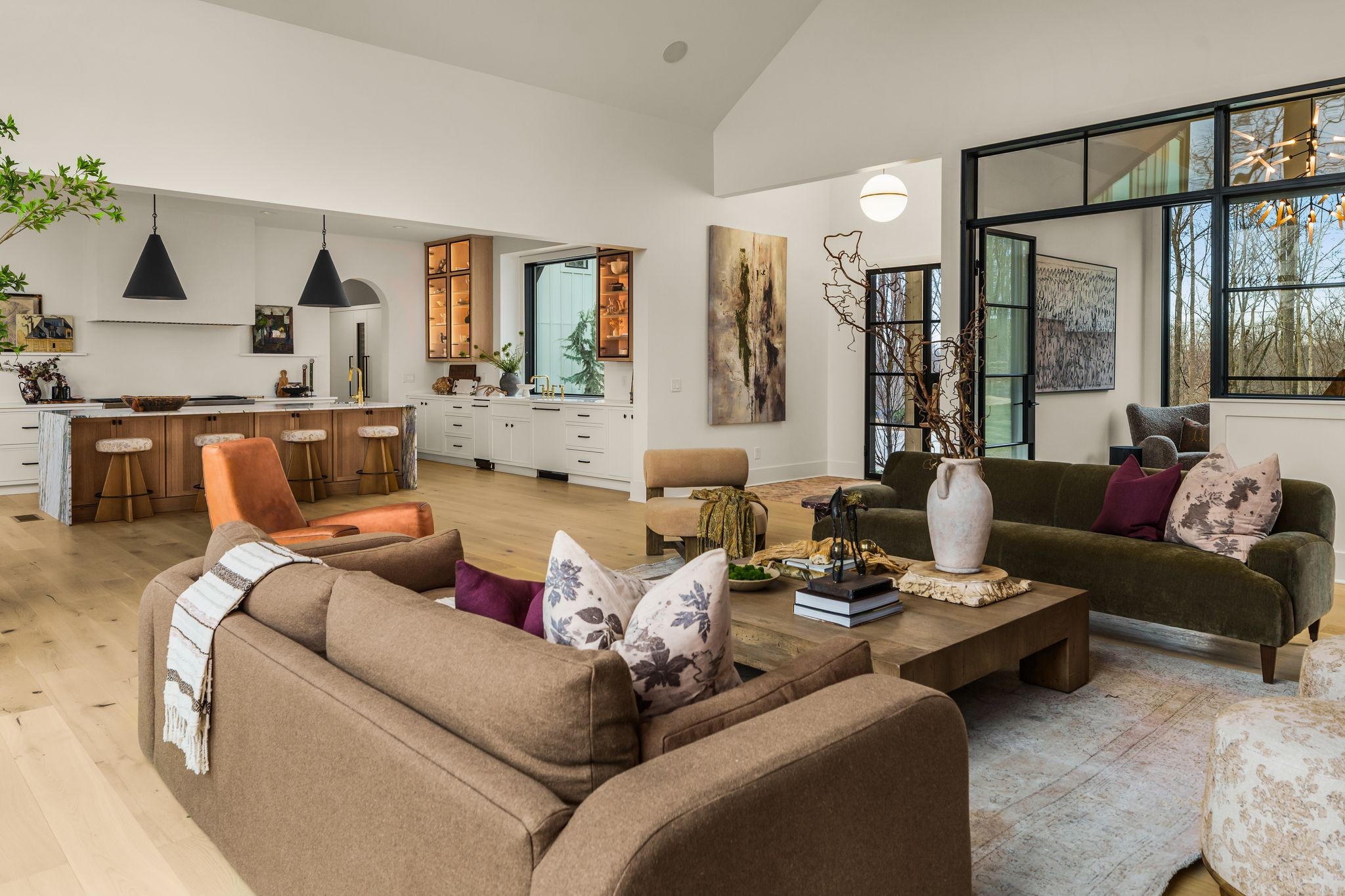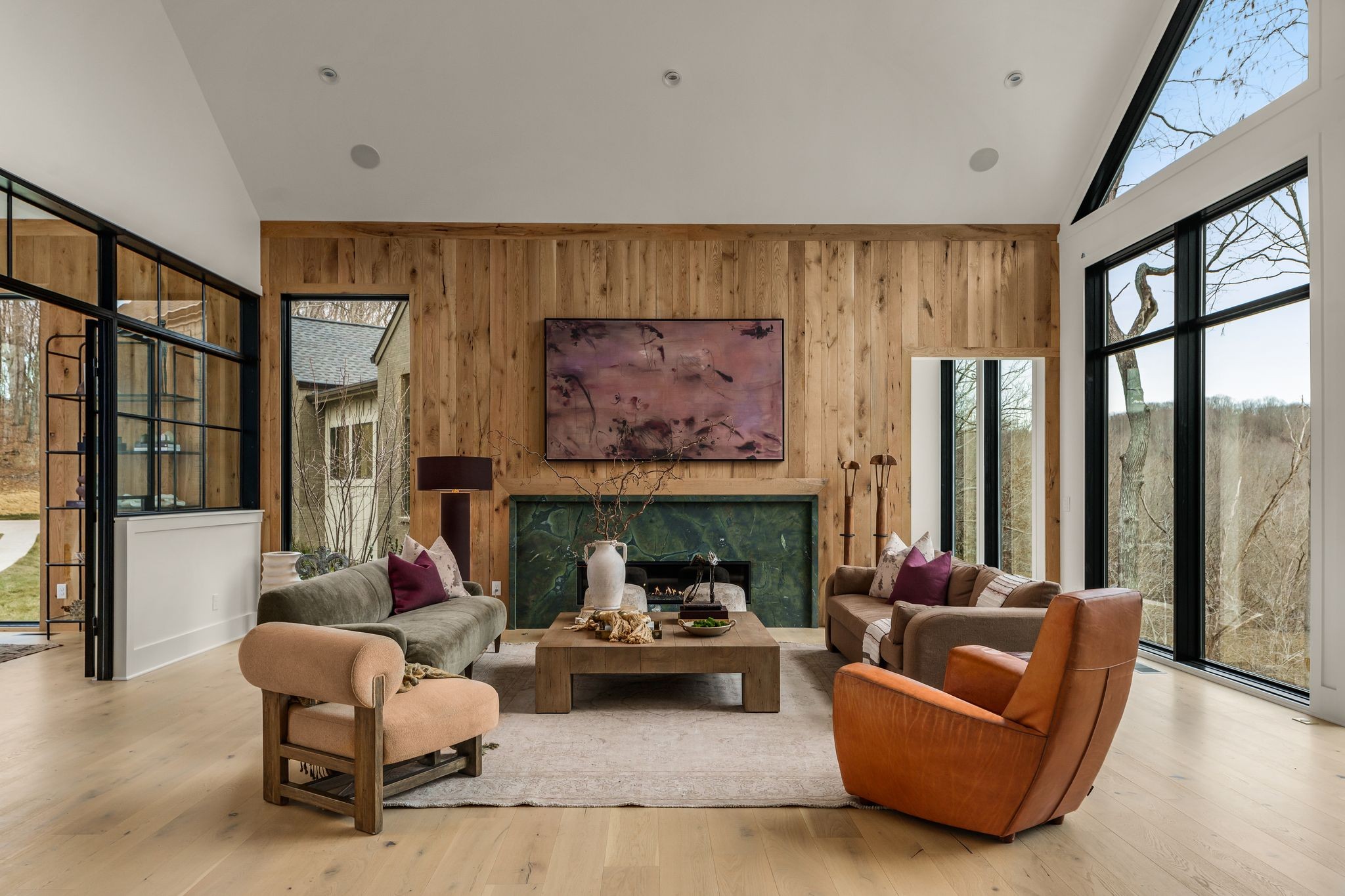 This exceptional residence is in a league of its own. Showcasing vaulted ceilings, floor-to-ceiling windows, and luxury design and finishes throughout. The primary suite serves as a true retreat with gas fireplace, heated floors, California His and Hers closets, and a spa-inspired bath featuring a built-in sauna. The finished basement includes a golf simulator/home theater, cigar lounge, gym, and wet bar. Outdoors is an entertainers dream, complete with a saltwater pool and spa accented by fire features, tanning deck, outdoor kitchen, and multiple entertaining areas including three fire pits. Completing the home is a 1,200 SF ADU with studio, kitchenette, and full bath- offering seamless flexibility for guests, in-laws, or extended living. This estate is truly one of one. Total square footage and bedroom/bathroom count include the ADU.