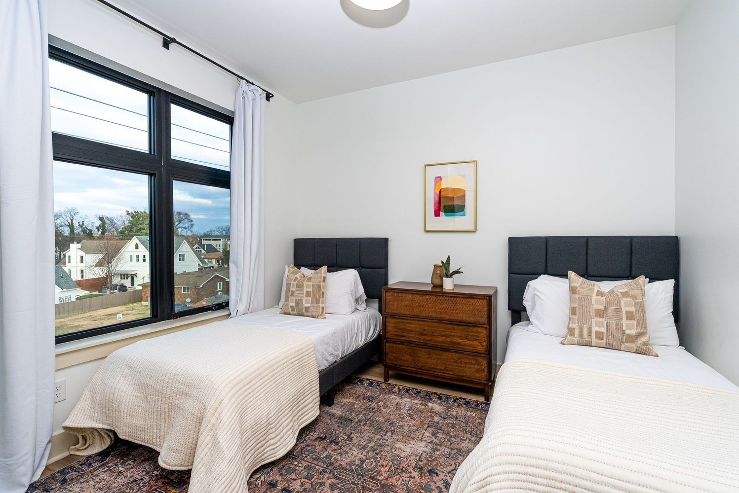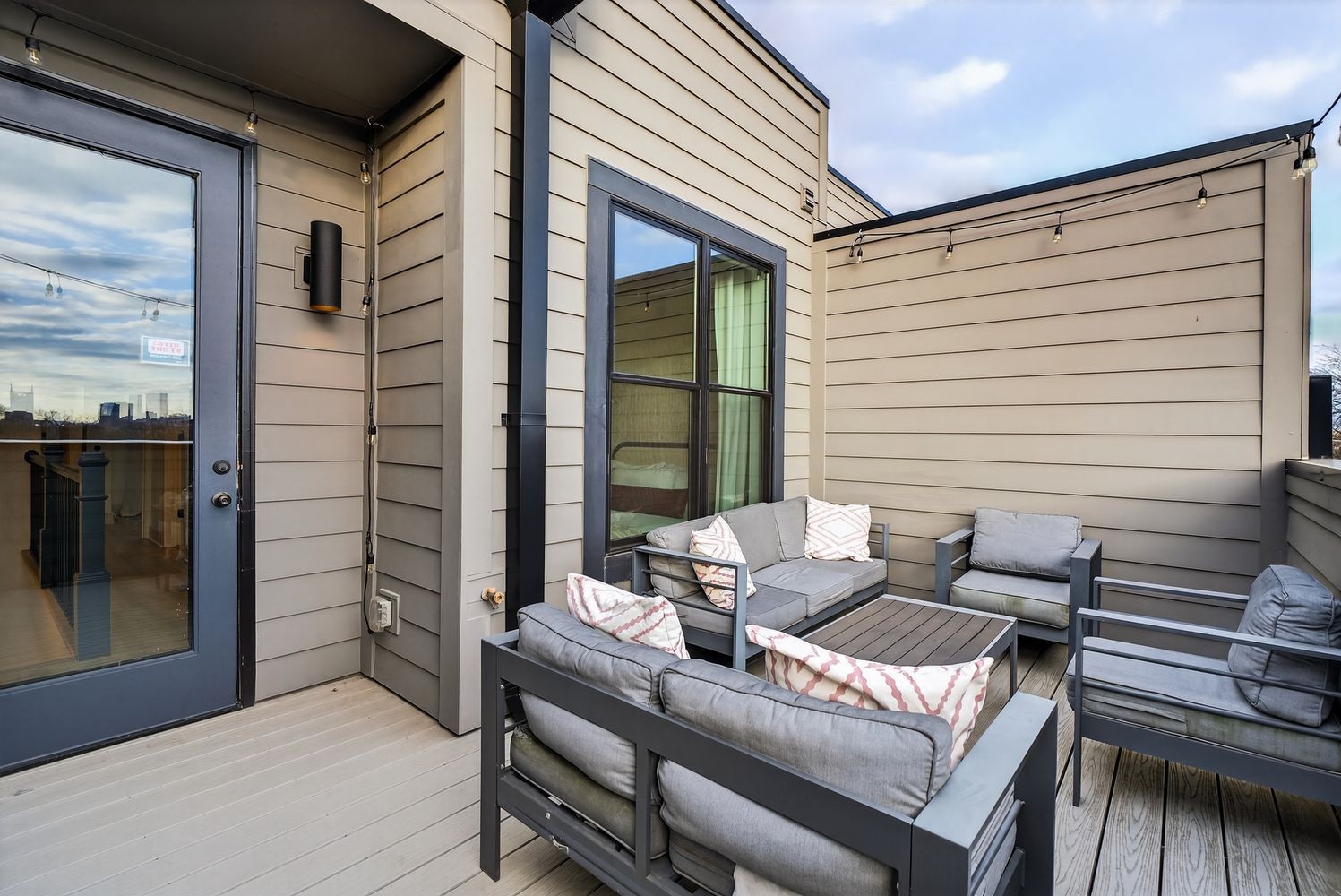 Upstairs, a private rooftop deck delivers sweeping city views -- an easy spot to unwind or host friends, and one of those features that elevates the entire experience of the home.
