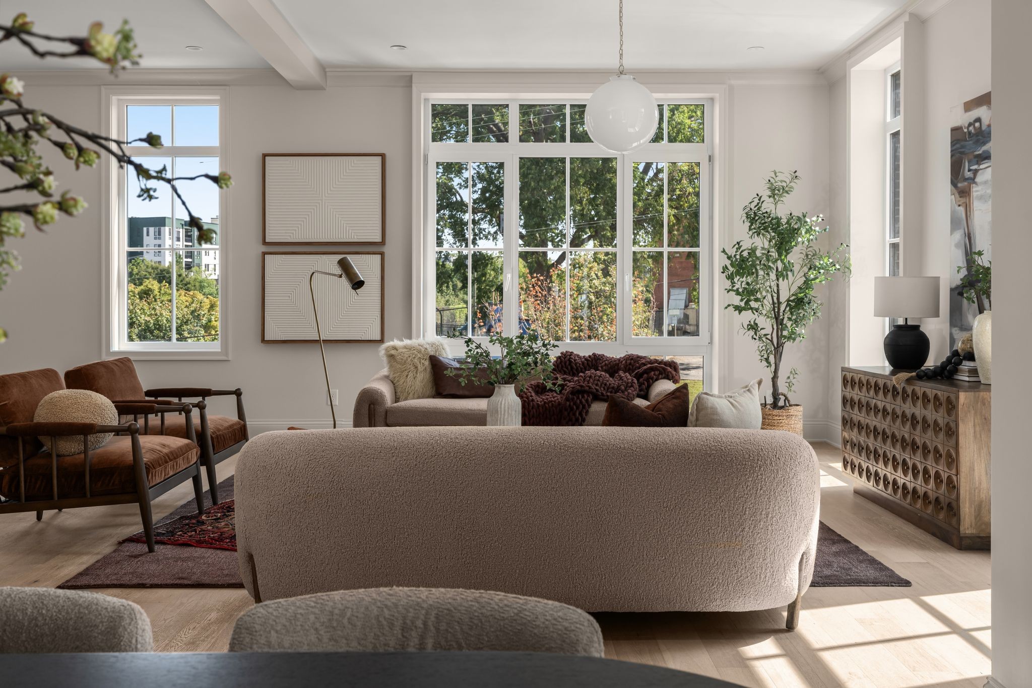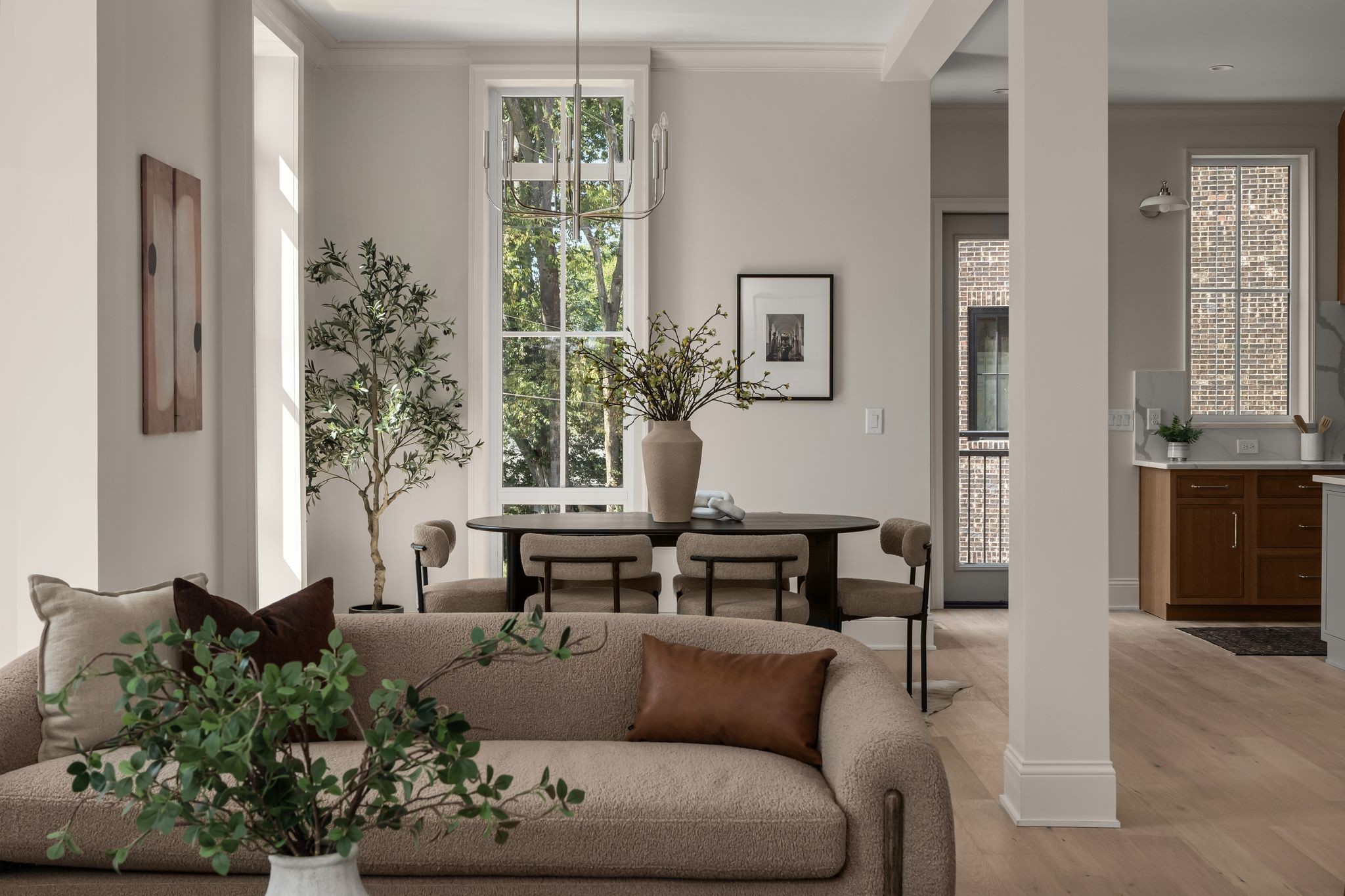 Welcome to Tennyson! This rare corner residence is flooded with natural light and offers an airy, elevated living experience. The kitchen features curated finishes and top-of-the-line Fisher & Paykel appliances paired with a Wolf range, creating the perfect space for cooking and entertaining. Neutral tones and soaring ceilings enhance the sense of openness, while generous rooms provide an ideal canvas for Nashville's dynamic lifestyle.