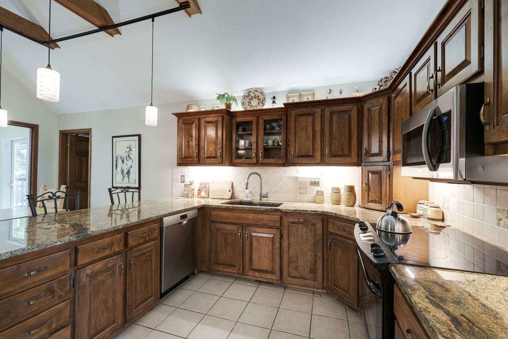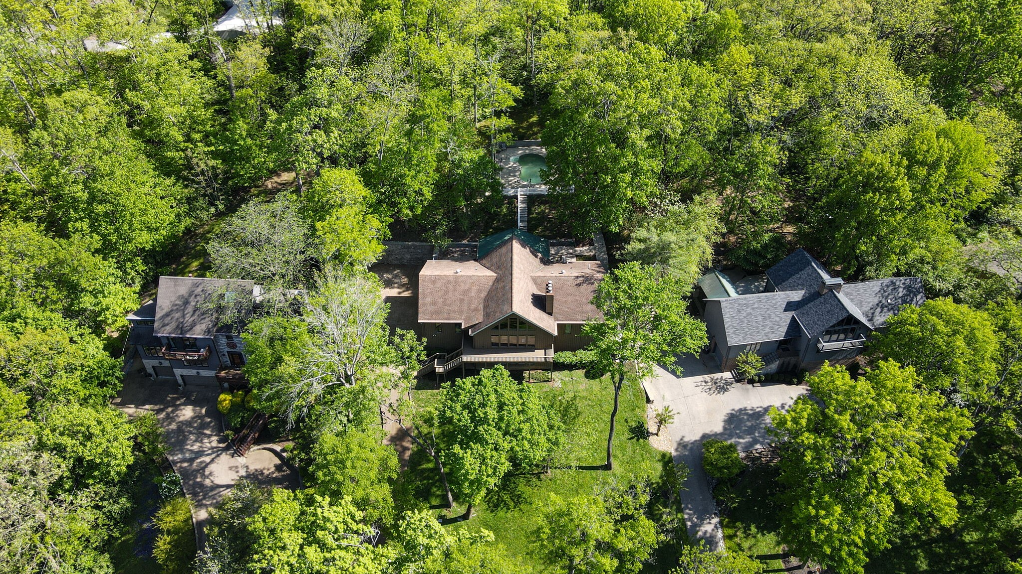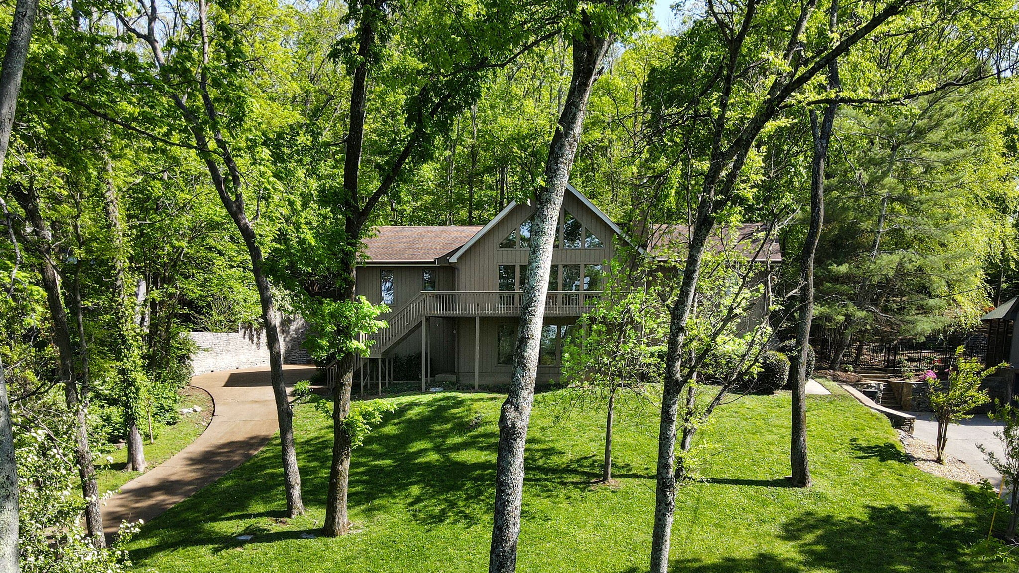 Gorgeous home with stunning views, one story with a lower level basement, 3 bedrooms, 2 full baths on main floor. Sun room and patio lead to heated pool with pool house and shed. Large deck along the front of home, nestled in the trees. Basement level has living room/den, office, fireplace and 1 bedroom and 1 full bath. Additionally, ample storage in basement with 3 car garage.