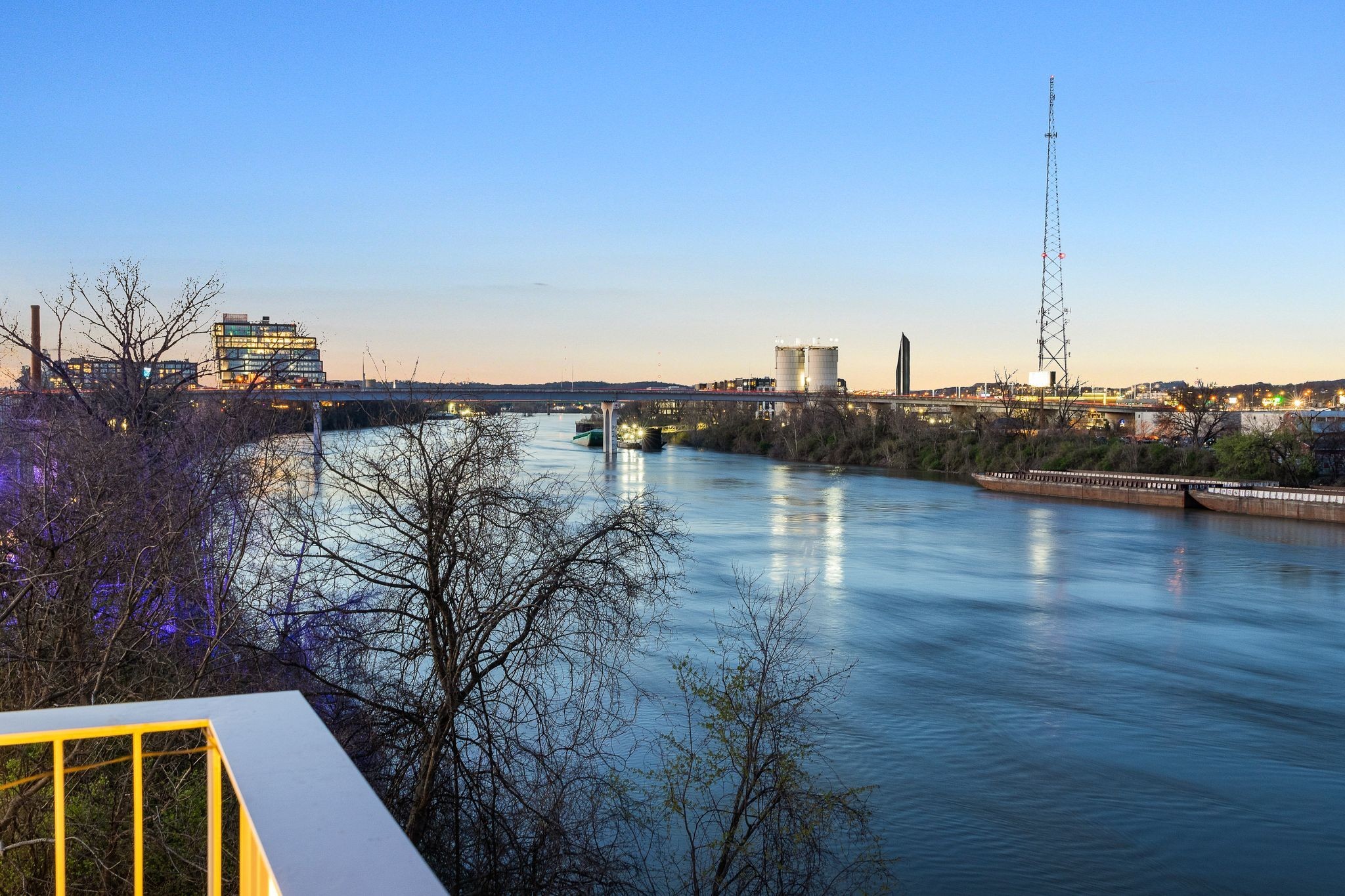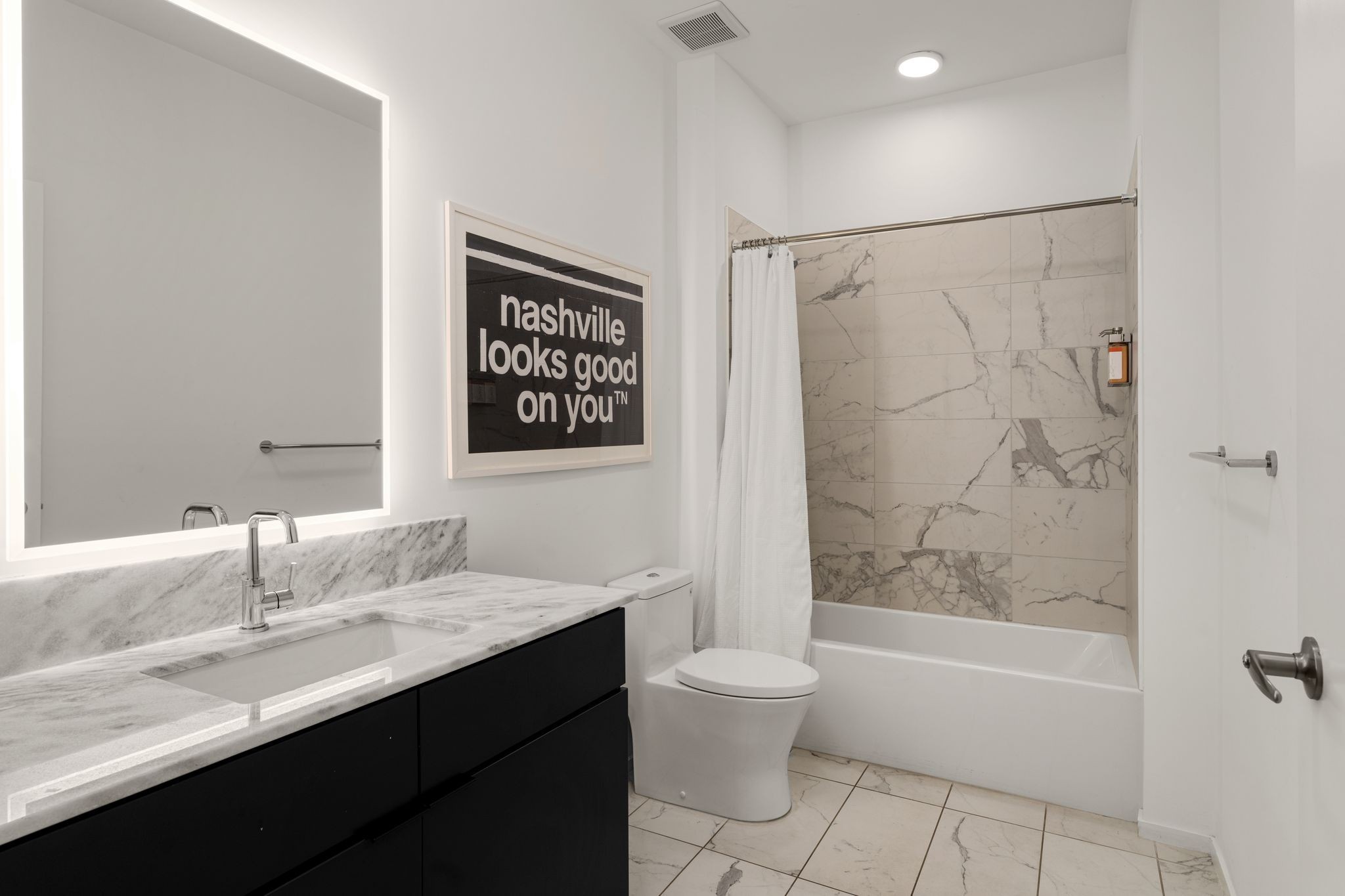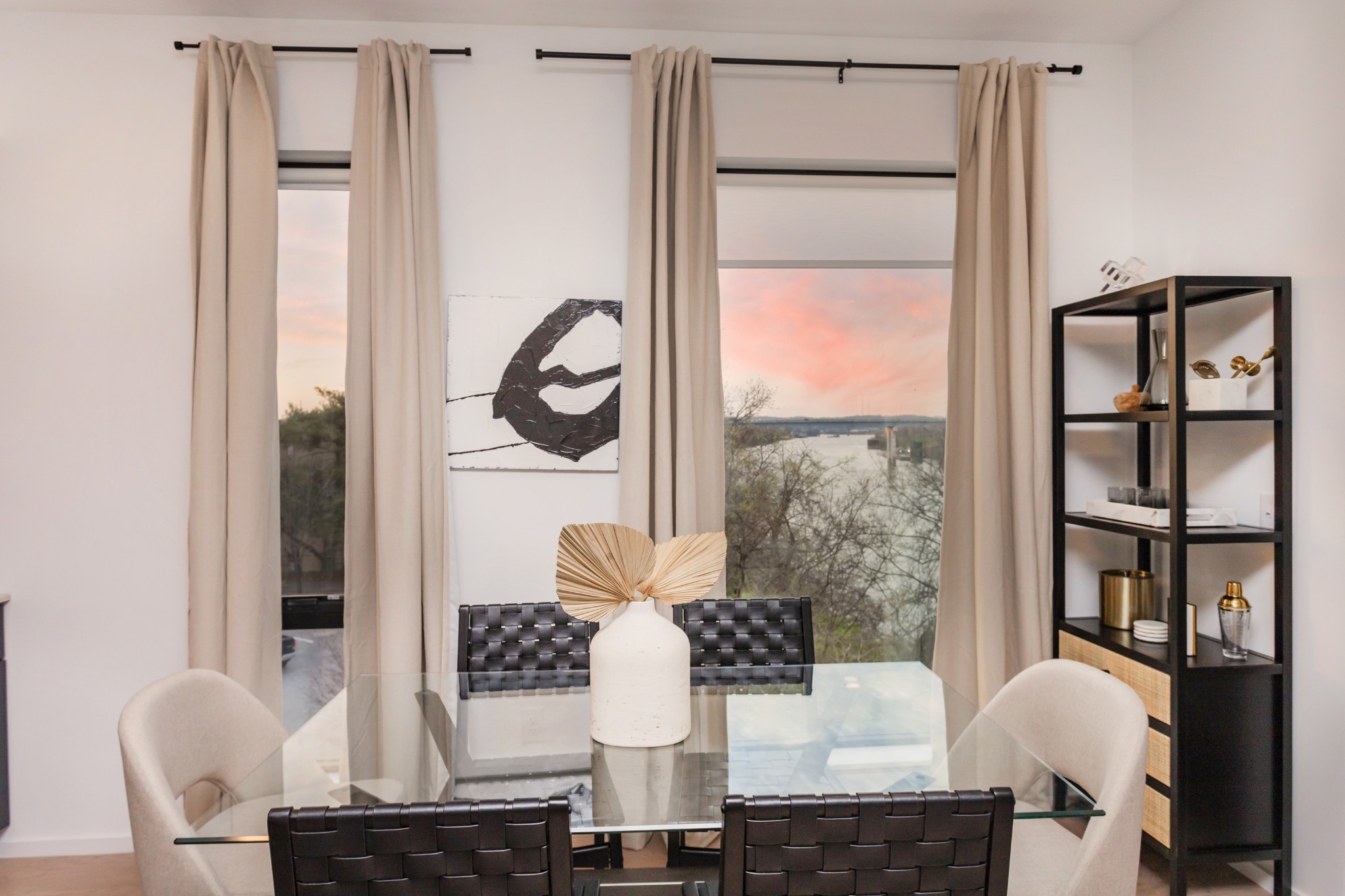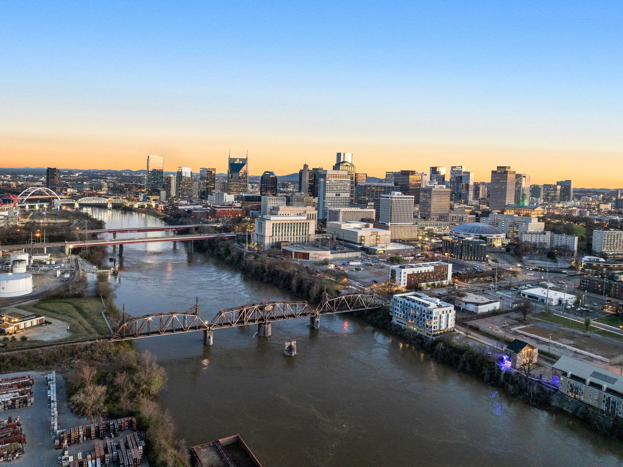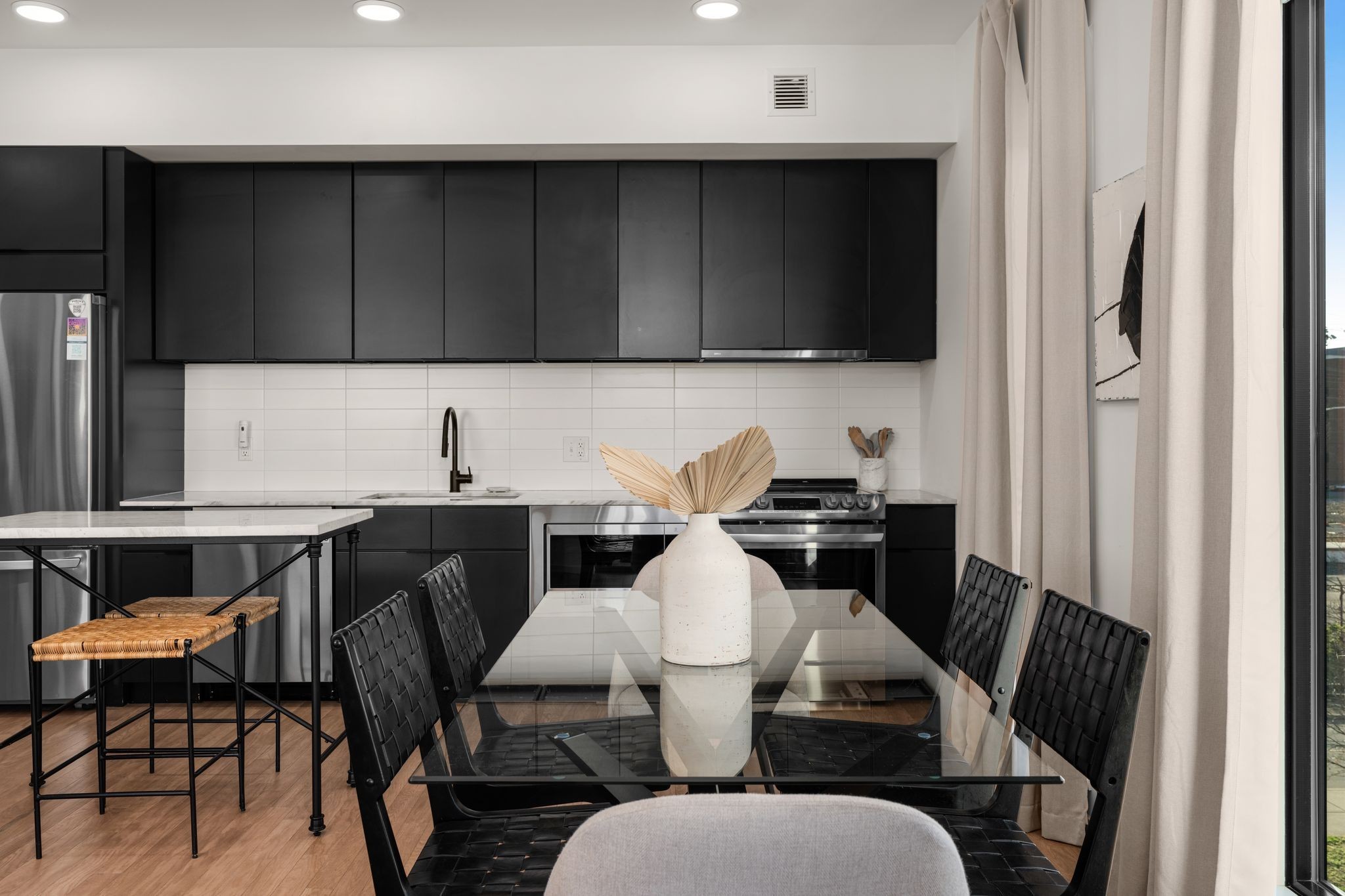 Premier unit at The Eve- one of the most coveted floor plans in the building, offering 3 bedrooms with spacious closets, powder room, and two private balconies with panoramic riverfront and downtown views. One of just 28 exclusive homes in this boutique development, this unit places you directly on the Cumberland River and sits across from the emerging Oracle campus. The interior showcases thoughtful design with extra-tall ceilings that enhance the natural light flowing throughout the space. Custom wallpaper adds character with premium finished wood flooring. The kitchen features a complete package of stainless steel appliances, perfect for both everyday cooking and entertaining. Primary suite opens to the second level private balcony, allowing you to start each day with unobstructed river and skyline views. Strategically located near both Downtown and Germantown, you'll enjoy proximity to acclaimed restaurants, coffee shops, and boutiques. A brief walk connects you to Broadway's entertainment district when you're ready to experience Nashville's vibrant nightlife. The residence offers complete flexibility with short-term rental eligibility--whether you choose to live here full-time, rent long-term, or utilize as a short-term rental investment. Professionally designed by Boots Up Design & Wallpaper Co.