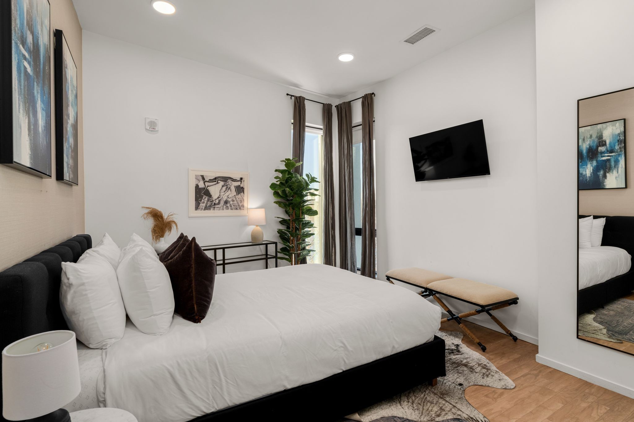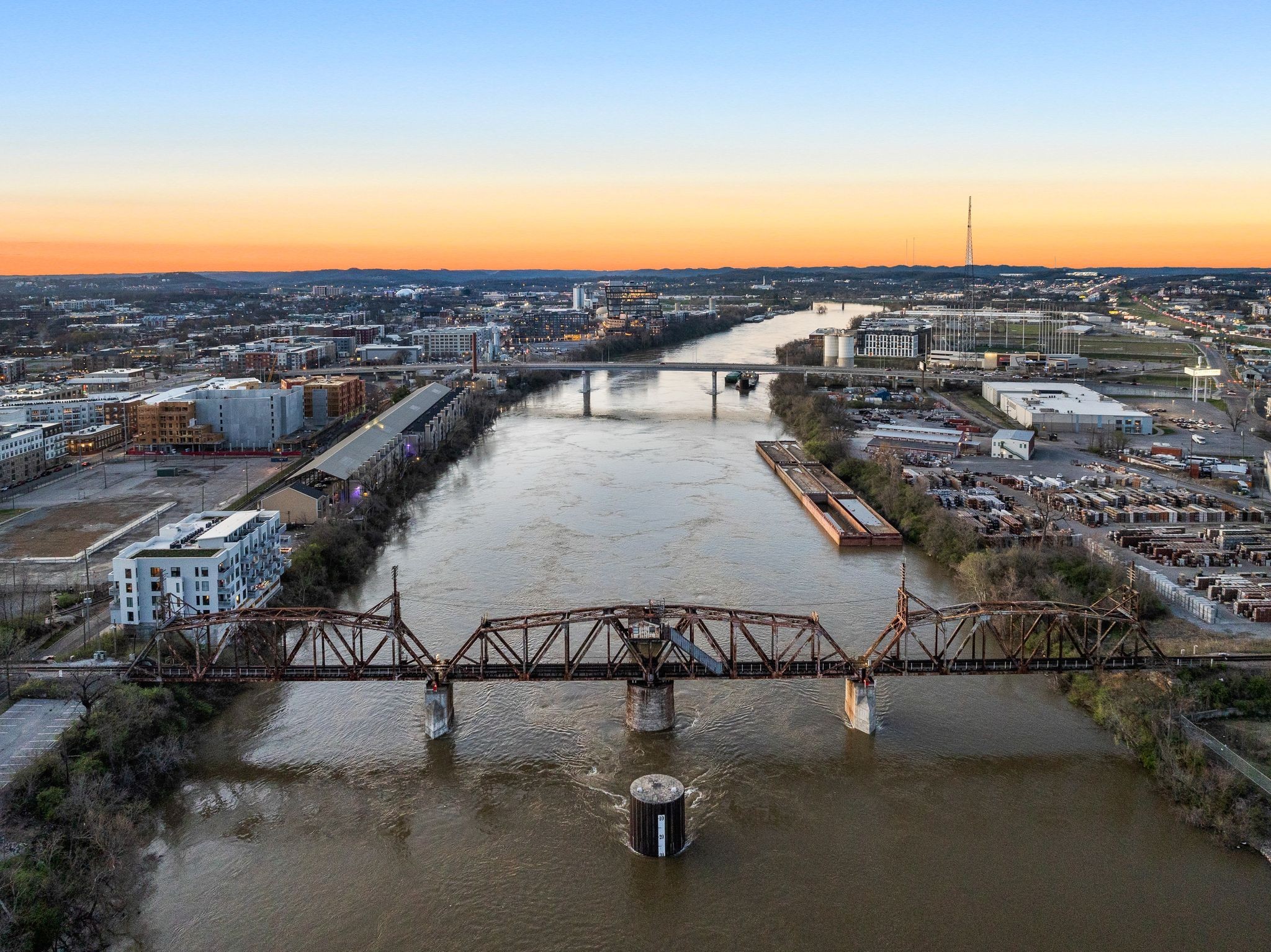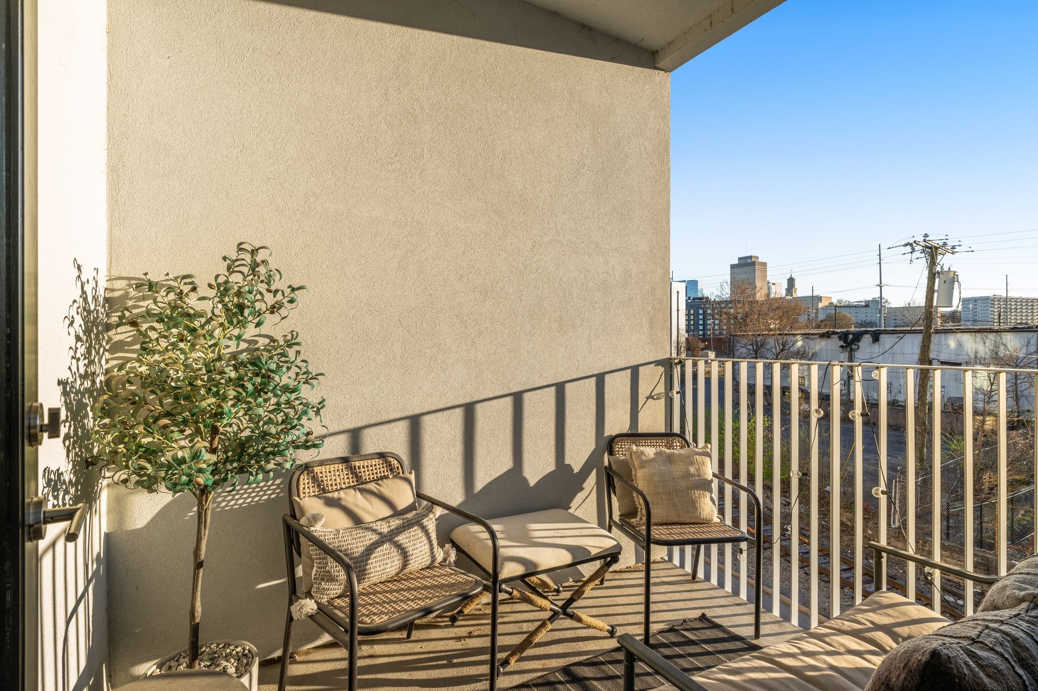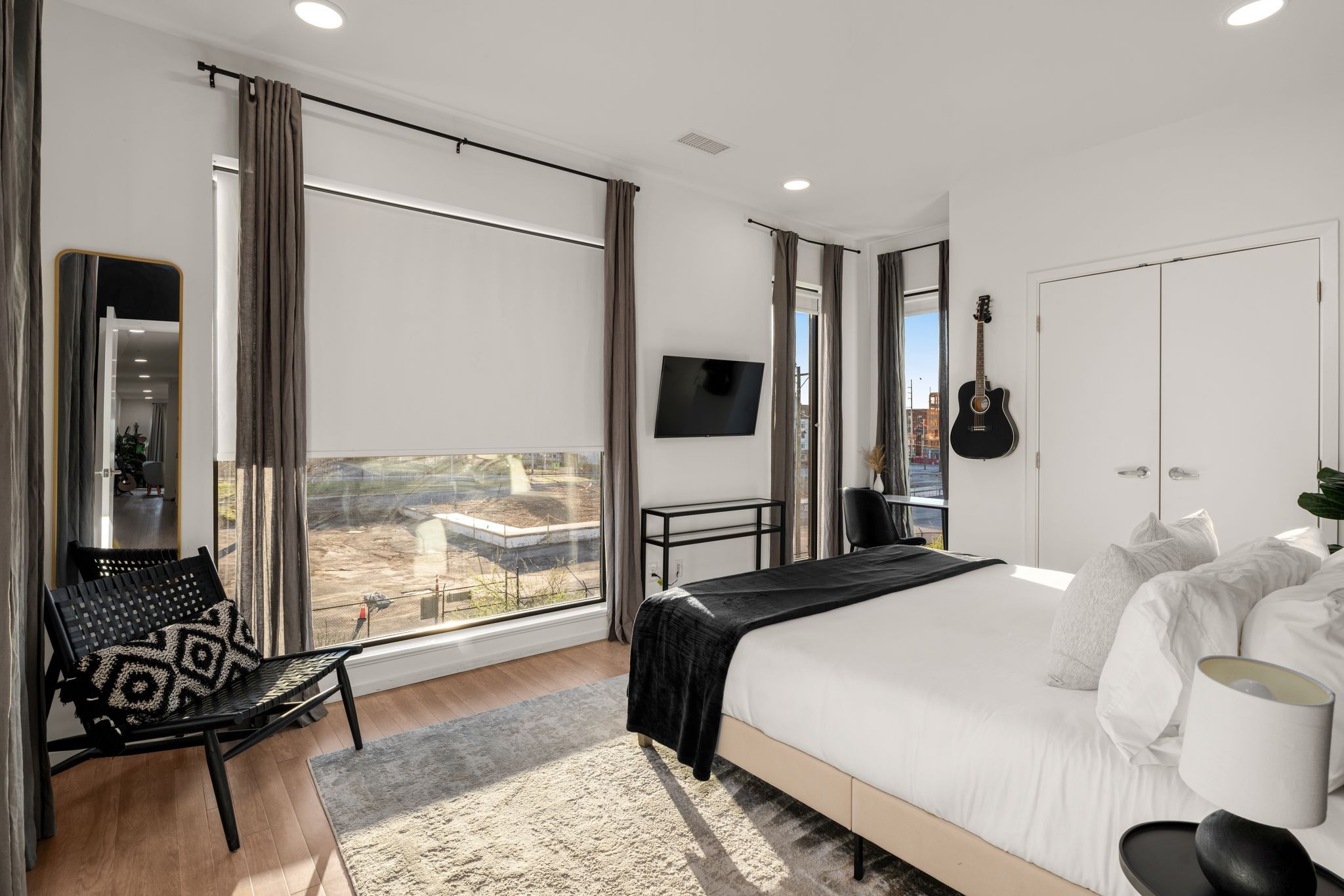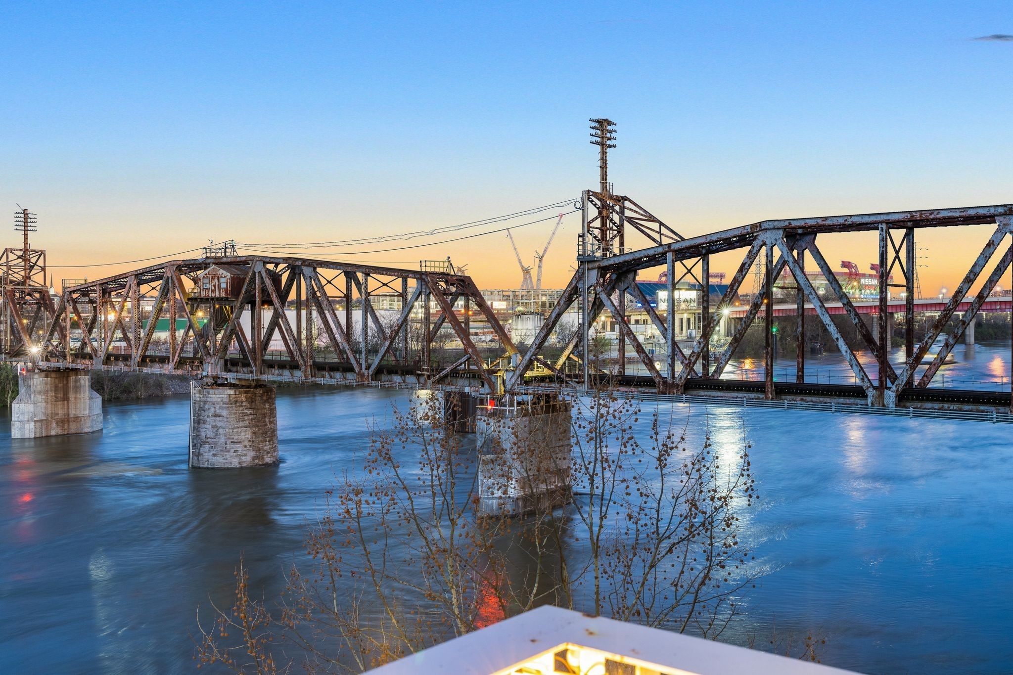 Premier unit at The Eve- one of the most coveted floor plans in the building, offering 3 bedrooms with spacious closets, powder room, and two private balconies with panoramic riverfront and downtown views. One of just 28 exclusive homes in this boutique development, this unit places you directly on the Cumberland River and sits across from the emerging Oracle campus. The interior showcases thoughtful design with extra-tall ceilings that enhance the natural light flowing throughout the space. Custom wallpaper adds character with premium finished wood flooring. The kitchen features a complete package of stainless steel appliances, perfect for both everyday cooking and entertaining. Primary suite opens to the second level private balcony, allowing you to start each day with unobstructed river and skyline views. Strategically located near both Downtown and Germantown, you'll enjoy proximity to acclaimed restaurants, coffee shops, and boutiques. A brief walk connects you to Broadway's entertainment district when you're ready to experience Nashville's vibrant nightlife. The residence offers complete flexibility with short-term rental eligibility--whether you choose to live here full-time, rent long-term, or utilize as a short-term rental investment. Professionally designed by Boots Up Design & Wallpaper Co.