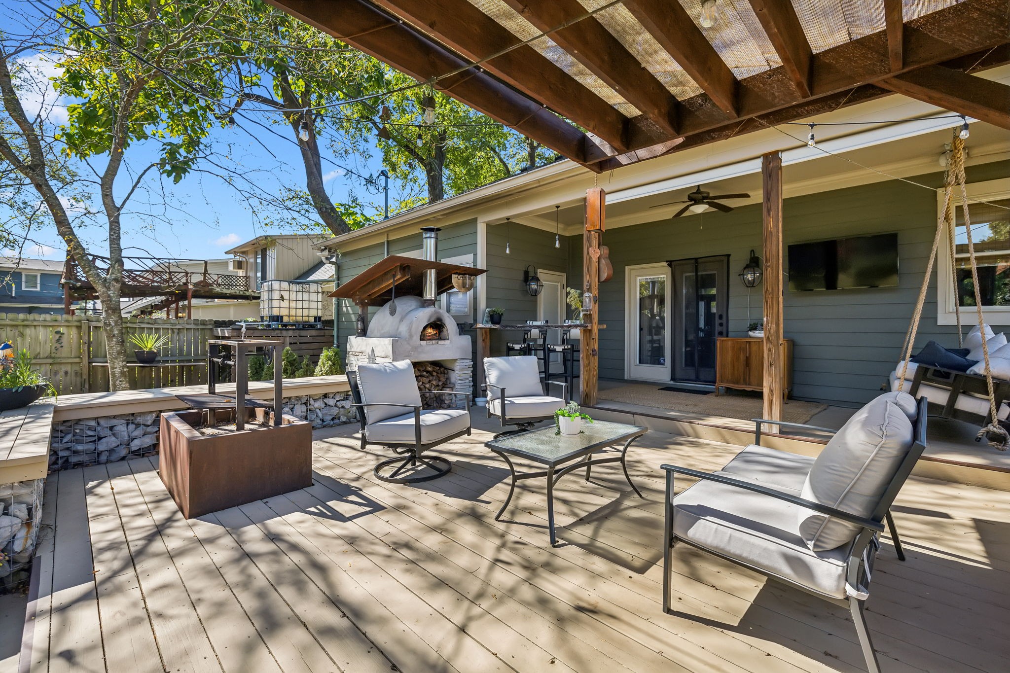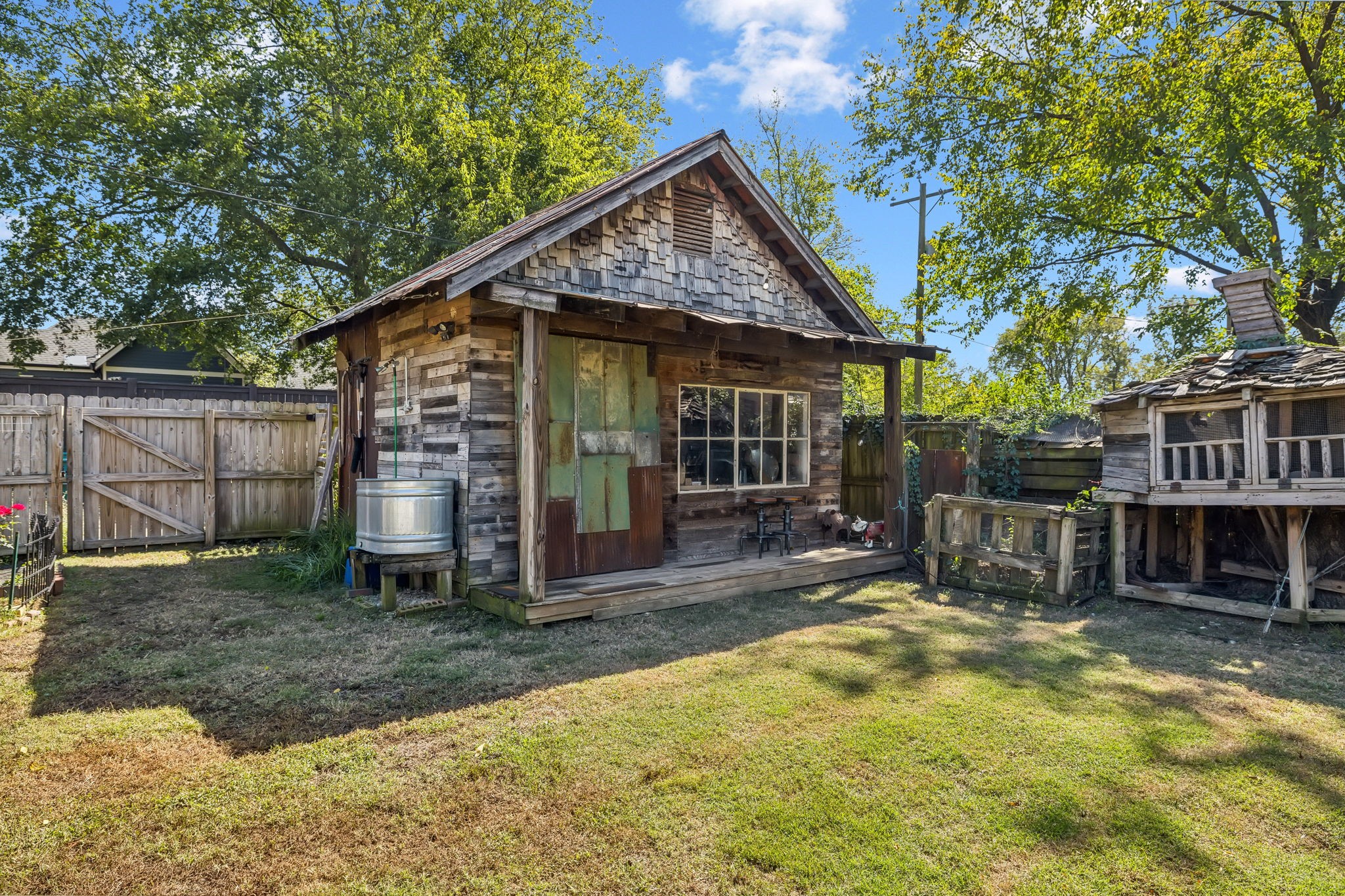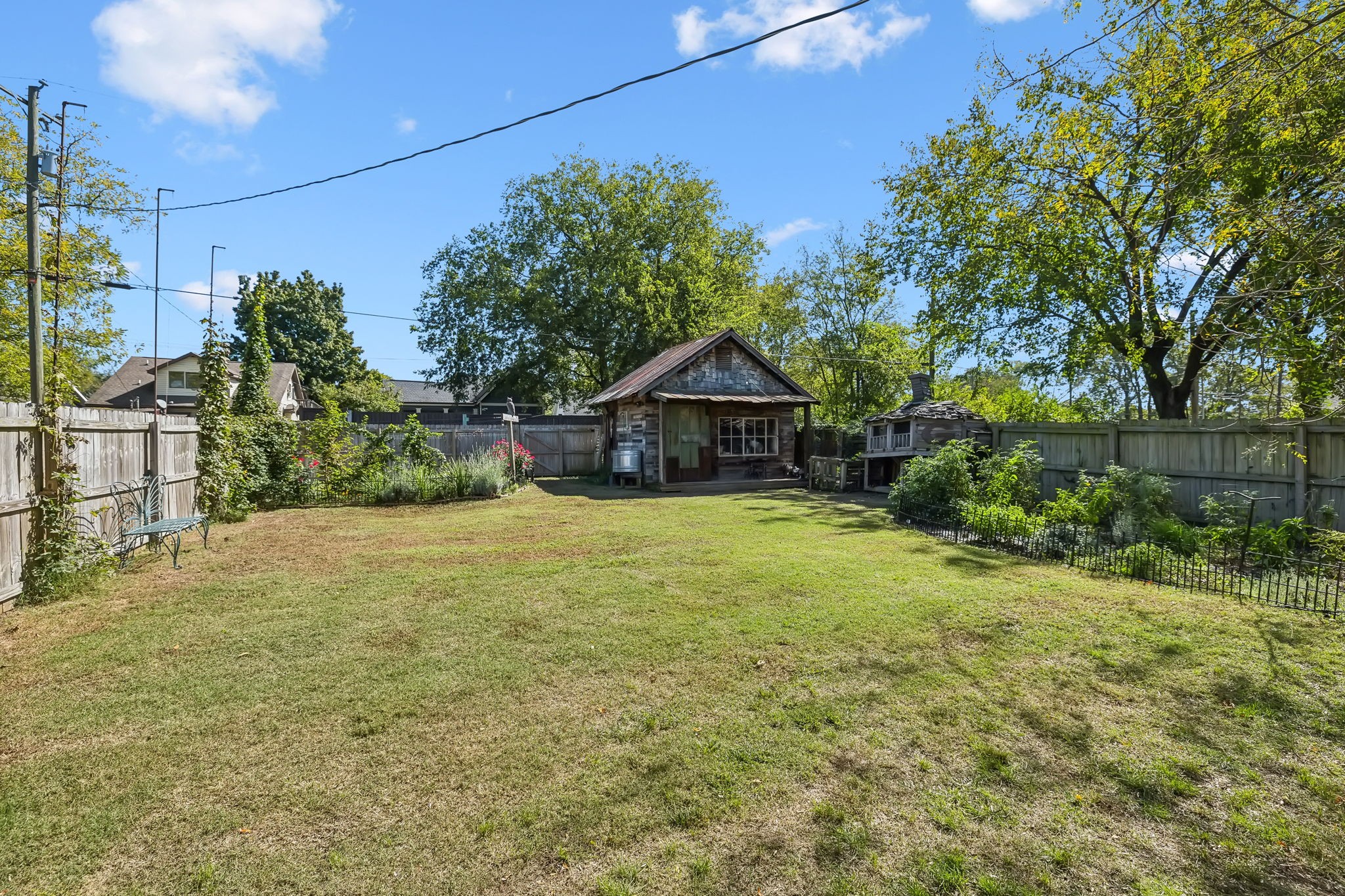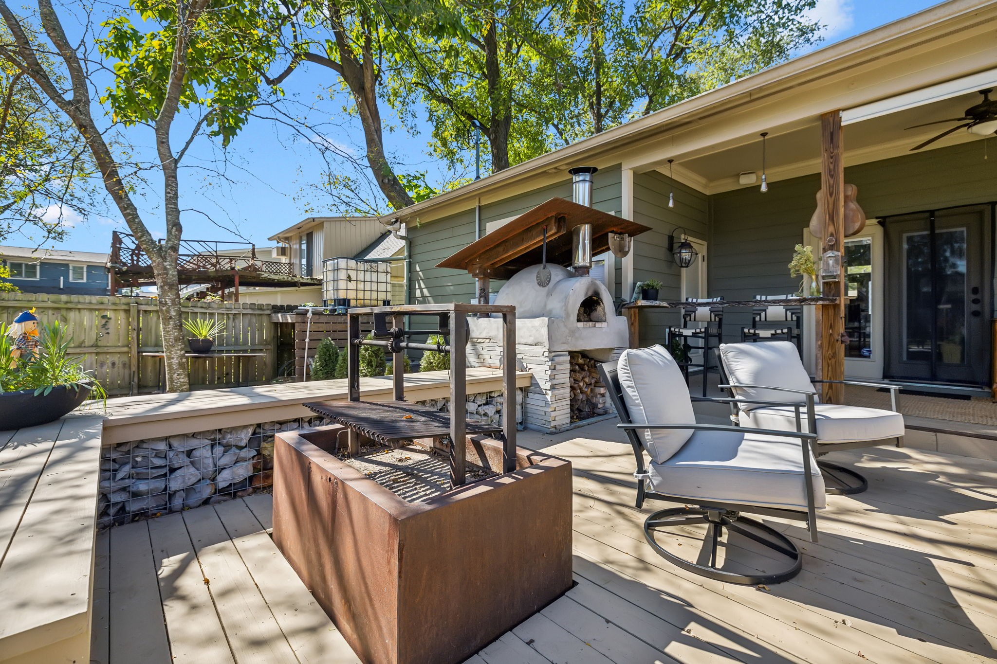 In the heart of East Nashville, this one-level Craftsman-style home offers the perfect blend of modern luxury & sustainable living. Convenience with charm, walk to top dining destinations like The Pharmacy, Mas Tacos & more!. The bright, open interior features wide plank hardwood floors & abundant natural light flows through large windows. The heart of the home, the updated chef's kitchen, boasts high-end appliances, sleek countertops, & custom cabinetry; Perfect for entertaining! The open layout connects the kitchen to the dining & living areas, where a cozy fireplace & custom built-ins create a warm, inviting atmosphere. The primary suite is a true retreat with a backyard picturesque view! The backyard is an outdoor oasis, complete with a covered porch, a pergola-topped deck, & over 700 square feet of garden space. Enjoy the Argentinean grill, wood-fired oven, fire pit, water harvester, a treehouse chicken coop & a climate-controlled storage shed. This is urban living at its finest!