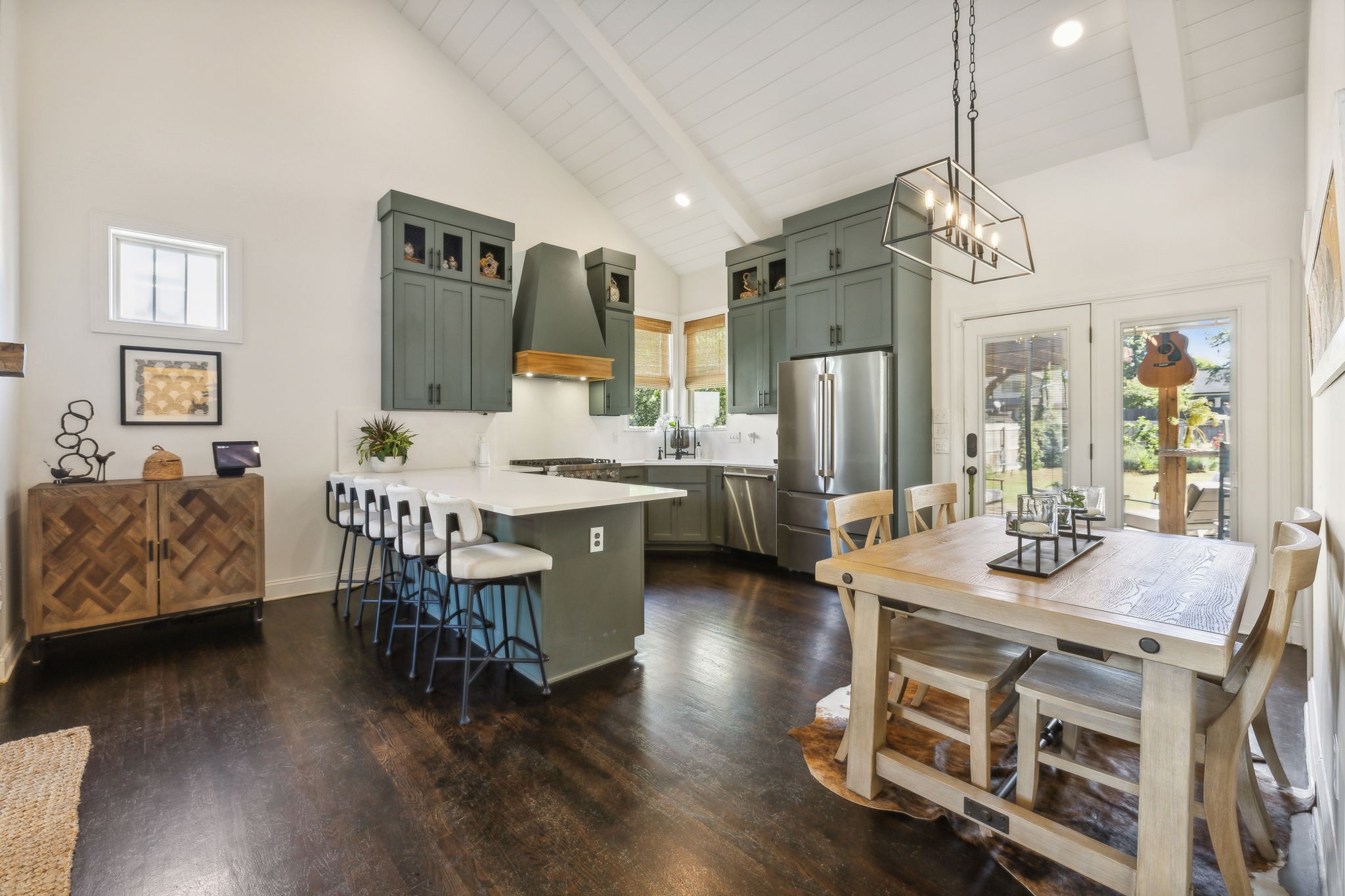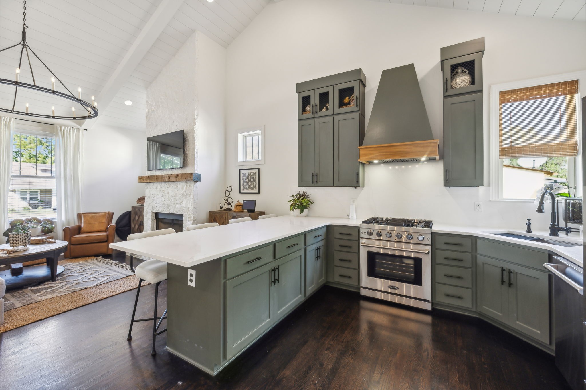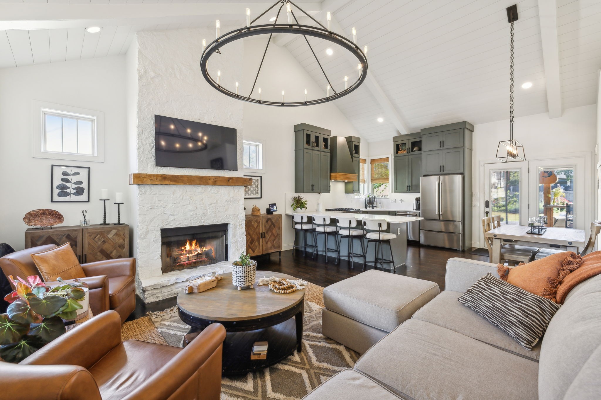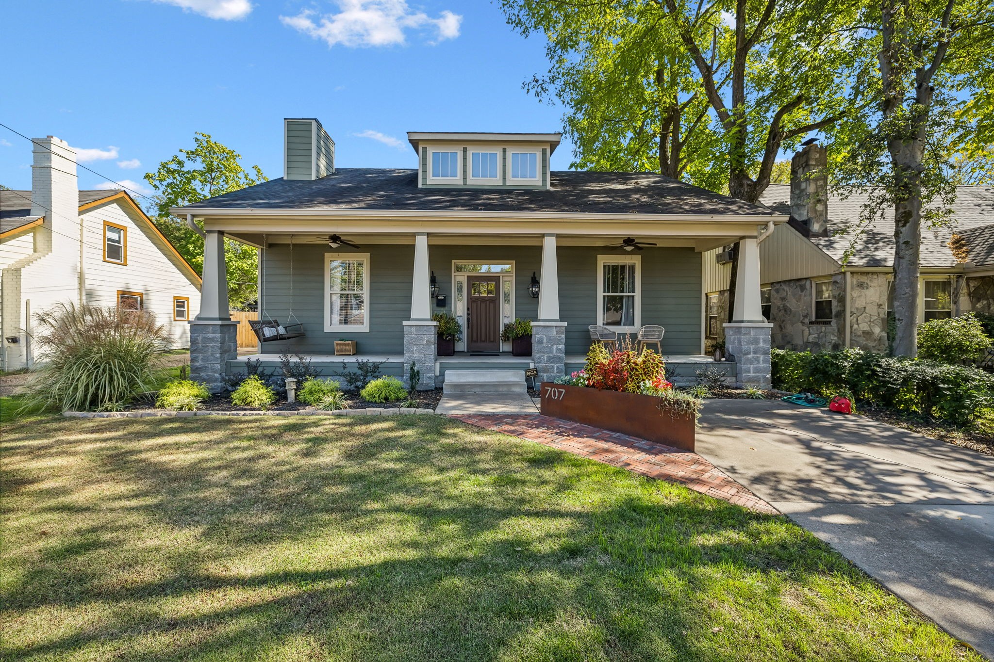 In the heart of East Nashville, this one-level Craftsman-style home offers the perfect blend of modern luxury & sustainable living. Convenience with charm, walk to top dining destinations like The Pharmacy, Mas Tacos & more!. The bright, open interior features wide plank hardwood floors & abundant natural light flows through large windows. The heart of the home, the updated chef's kitchen, boasts high-end appliances, sleek countertops, & custom cabinetry; Perfect for entertaining! The open layout connects the kitchen to the dining & living areas, where a cozy fireplace & custom built-ins create a warm, inviting atmosphere. The primary suite is a true retreat with a backyard picturesque view! The backyard is an outdoor oasis, complete with a covered porch, a pergola-topped deck, & over 700 square feet of garden space. Enjoy the Argentinean grill, wood-fired oven, fire pit, water harvester, a treehouse chicken coop & a climate-controlled storage shed. This is urban living at its finest!