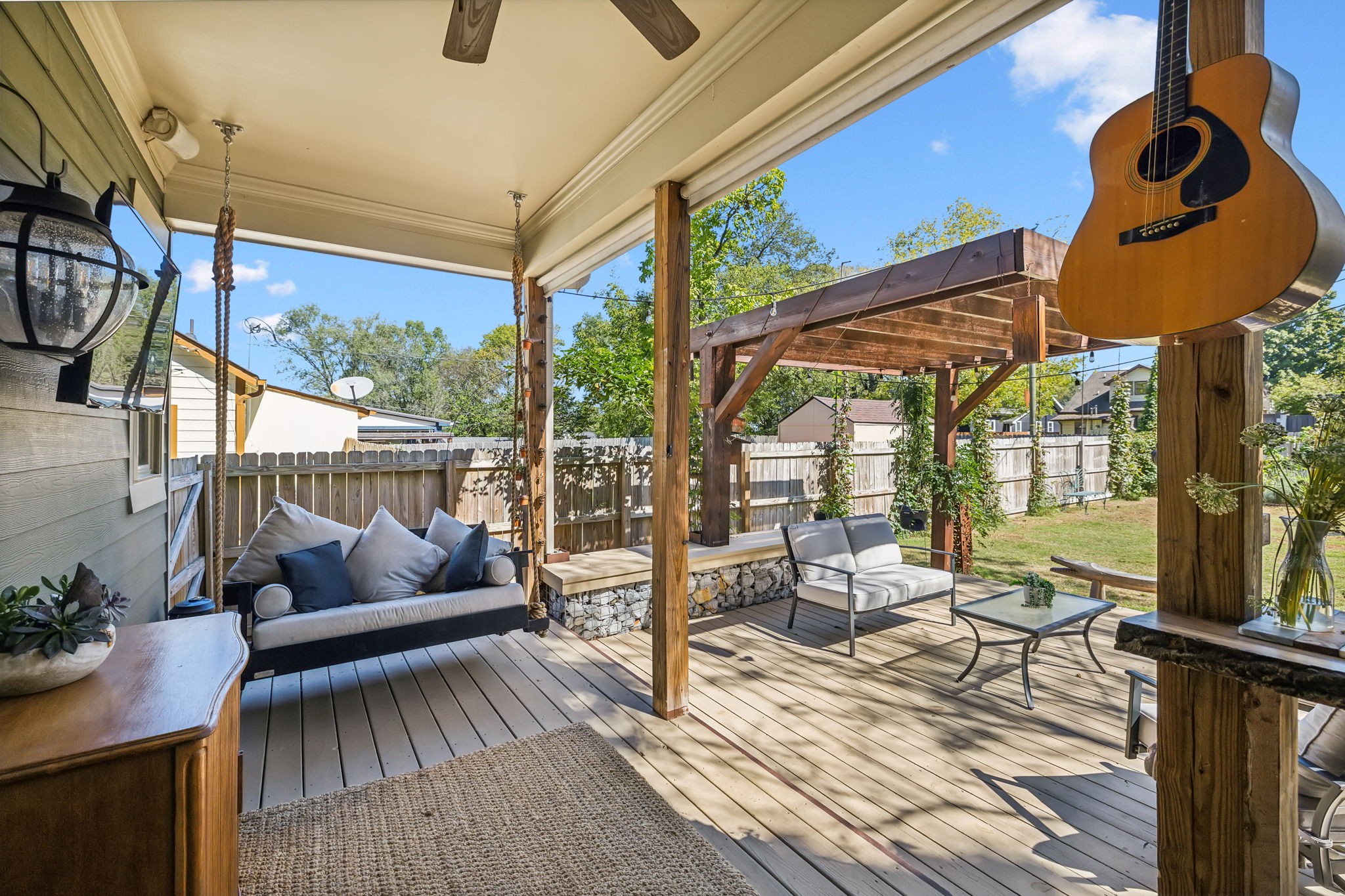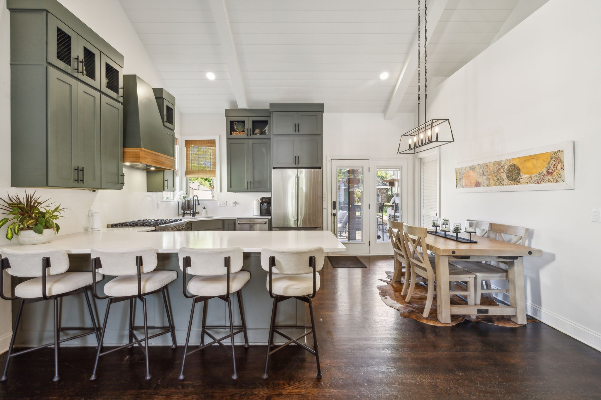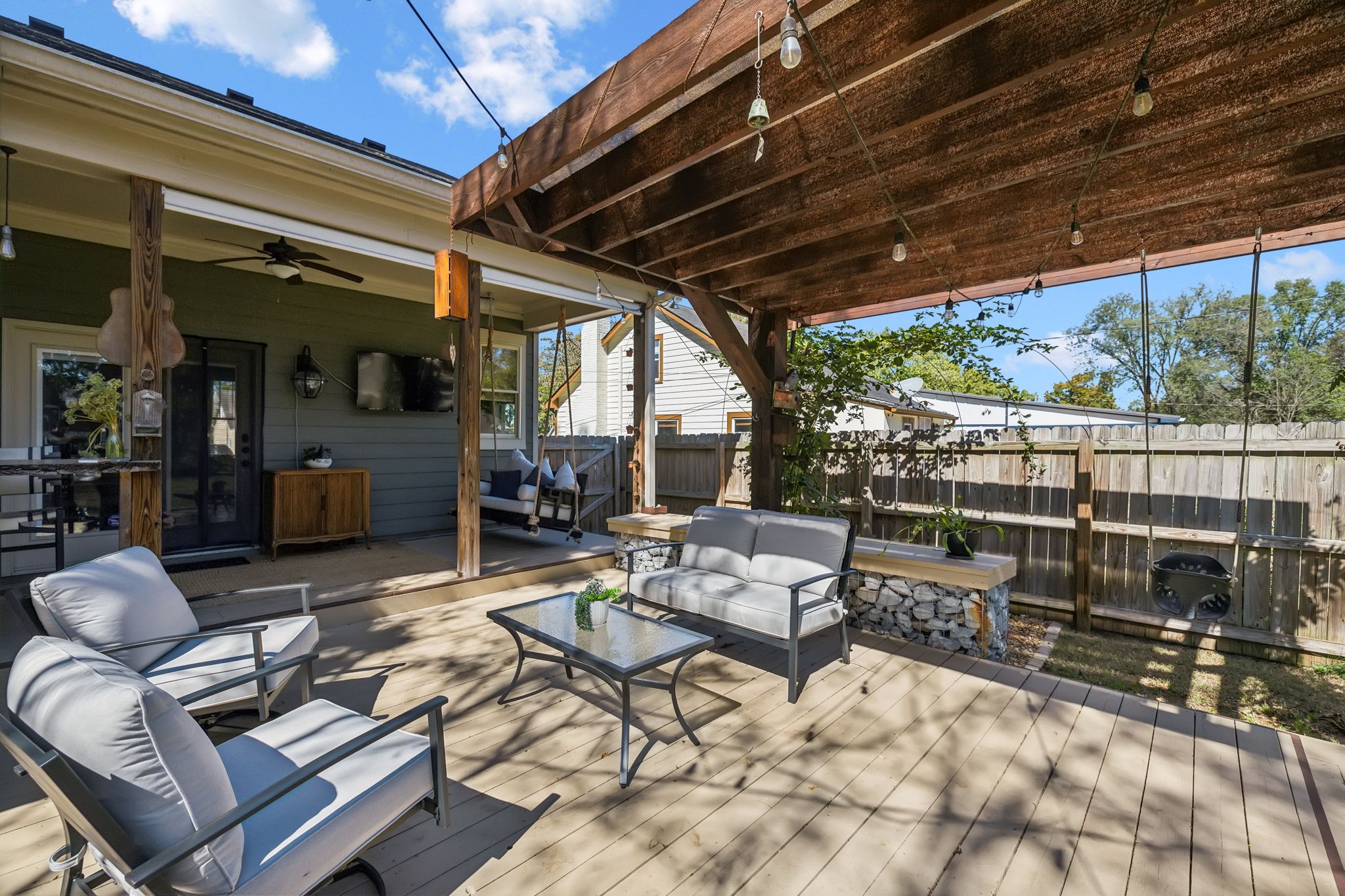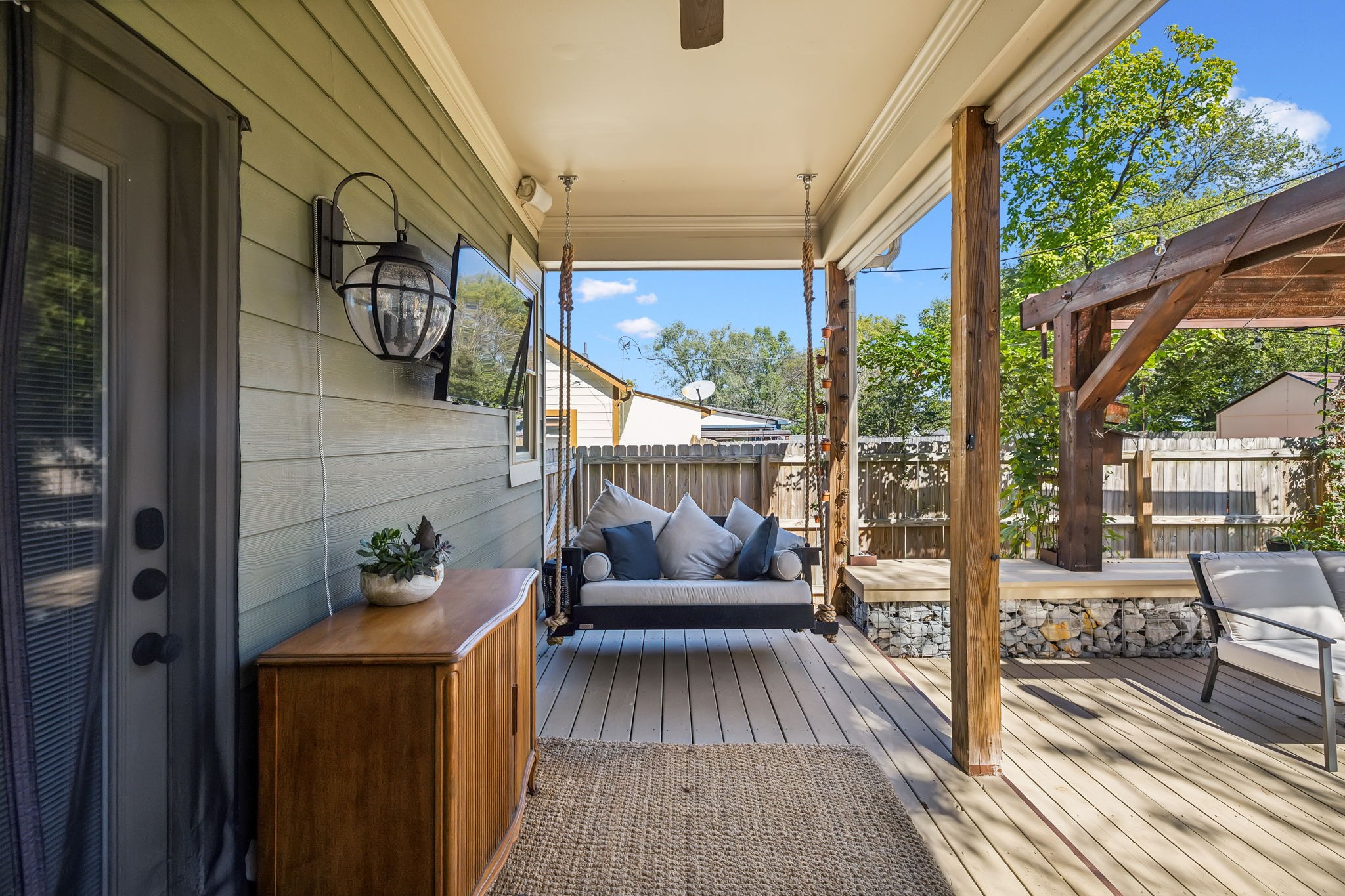 In the heart of East Nashville, this one-level Craftsman-style home offers the perfect blend of modern luxury & sustainable living. Convenience with charm, walk to top dining destinations like The Pharmacy, Mas Tacos & more!. The bright, open interior features wide plank hardwood floors & abundant natural light flows through large windows. The heart of the home, the updated chef's kitchen, boasts high-end appliances, sleek countertops, & custom cabinetry; Perfect for entertaining! The open layout connects the kitchen to the dining & living areas, where a cozy fireplace & custom built-ins create a warm, inviting atmosphere. The primary suite is a true retreat with a backyard picturesque view! The backyard is an outdoor oasis, complete with a covered porch, a pergola-topped deck, & over 700 square feet of garden space. Enjoy the Argentinean grill, wood-fired oven, fire pit, water harvester, a treehouse chicken coop & a climate-controlled storage shed. This is urban living at its finest!