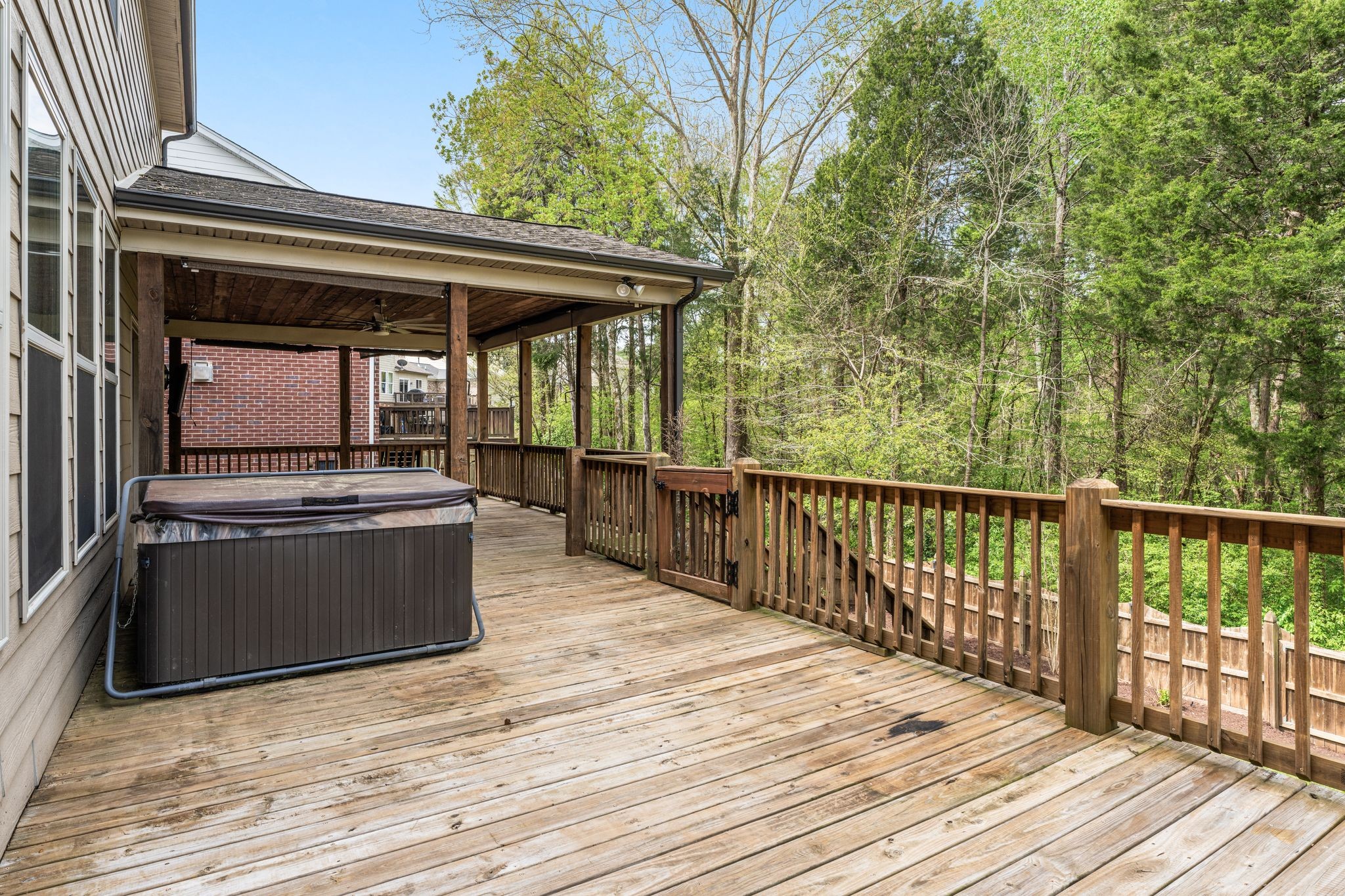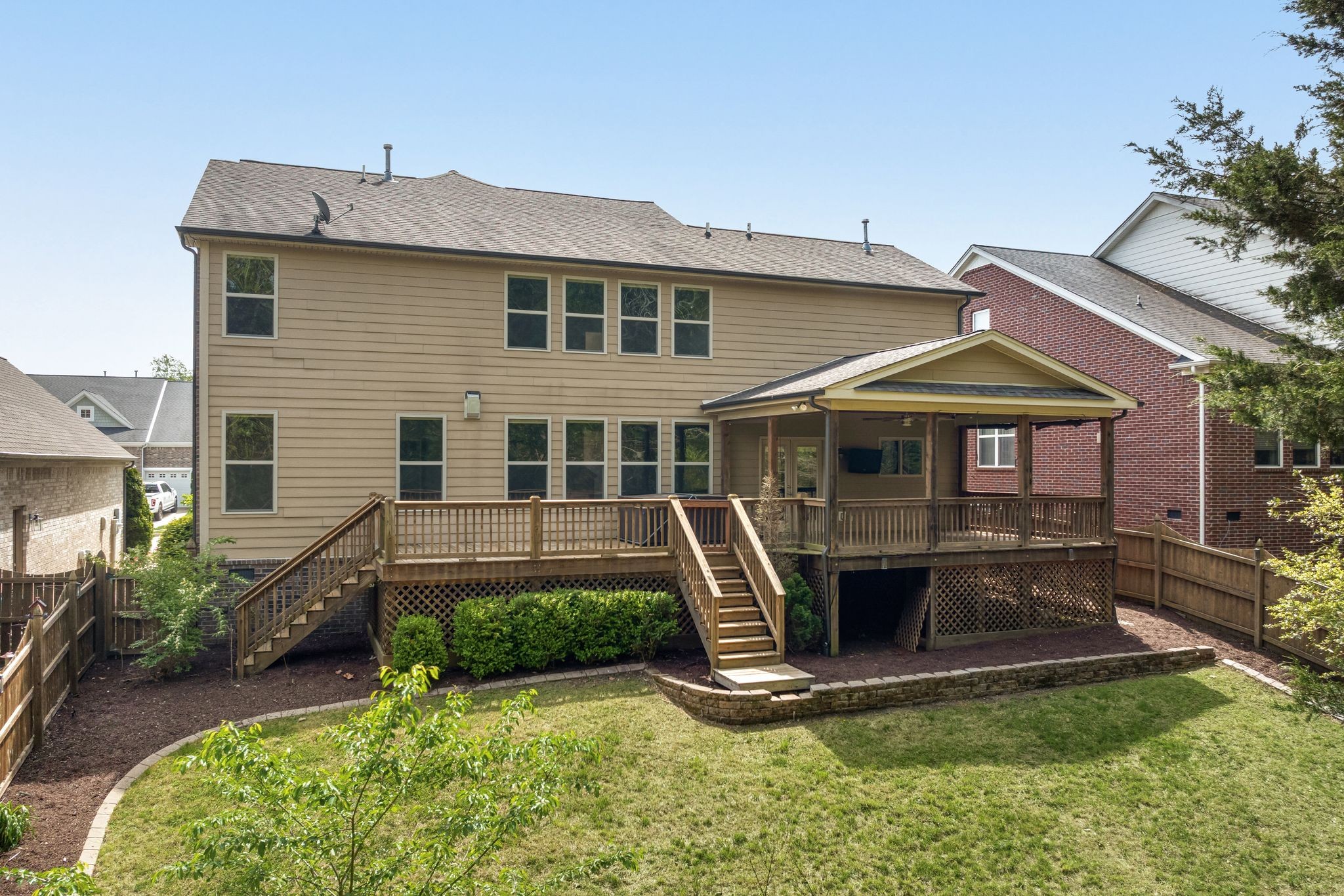 Welcome to one of the most private and largest lots in Travis Trace- the most sought-after neighborhood in Bellevue, perfect for you and your family. Nestled just 20 minutes from downtown Nashville and minutes from I40 West with close access to retail, dining, Bellevue One Place, Hidden Lake Park, and even the Harpeth River. Complete with an updated kitchen including countertops and cabinetry, fresh paint throughout, brand new carpet in the primary suite and walk-in closet, and upgraded walk-in shower, vanity countertop, and plumbing fixtures in primary ensuite bathroom. The downstairs primary suite is a retreat in itself boasting an ensuite bathroom with double vanity, separate bathtub and shower. Upstairs offers a flex space, three guest bedrooms each featuring spacious walk-in closets, and two full bathrooms. Outdoor entertainers dream with an expansive covered deck complete with a spacious fenced-in backyard backing up to the woods for complete privacy.