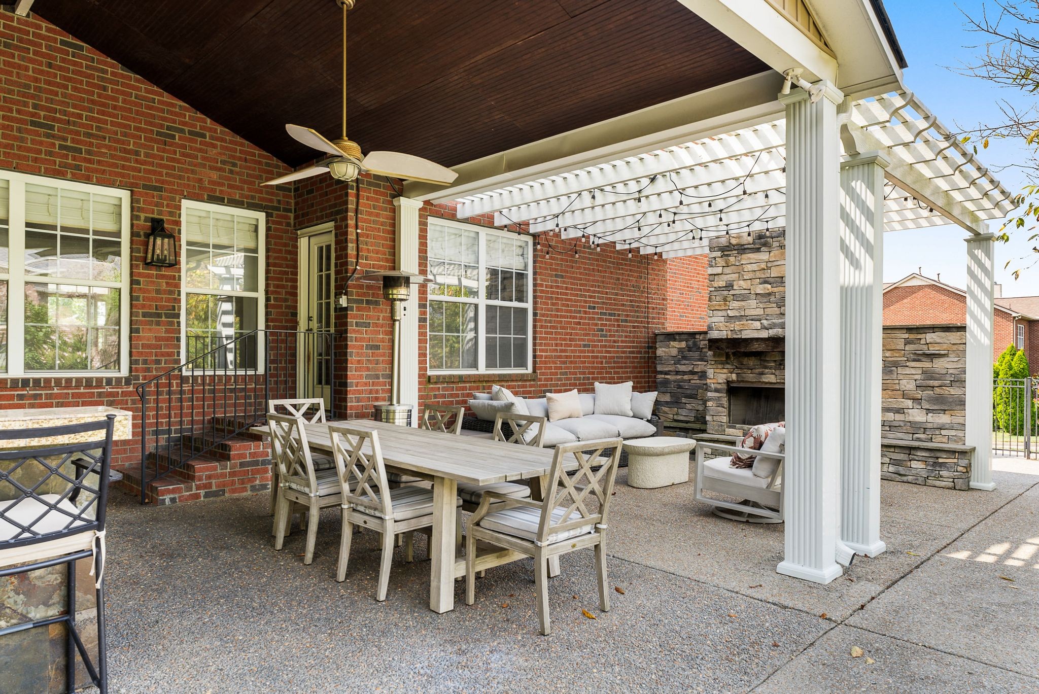 Nestled in the highly desirable Brookfield neighborhood, this elegant 5-bedroom, 4-bathroom home is a showcase of thoughtful design and meticulous renovation by interior designer Olivia DeMontbreun. The completely updated primary suite features a stunning spa like bath, while the swoon worthy laundry room boasts custom cabinetry and Taj Mahal quartzite countertops. A former playroom has been transformed with bespoke built-ins, a custom dry bar, and a subtly wallpapered ceiling that adds a layer of drama. Designer touches continue throughout with custom drapery and lighting from Visual Comfort and Serena & Lily. Step outside to the sellers' favorite feature - a private backyard retreat designed for year-round enjoyment. A built-in outdoor kitchen, stone gas fireplace, and inviting patio make this the perfect space for entertaining on cozy fall evenings. With its custom finishes, thoughtful updates, and exceptional outdoor living, this Brookfield home offers a rare opportunity to enjoy elevated living in one of Brentwood's most sought-after neighborhoods.